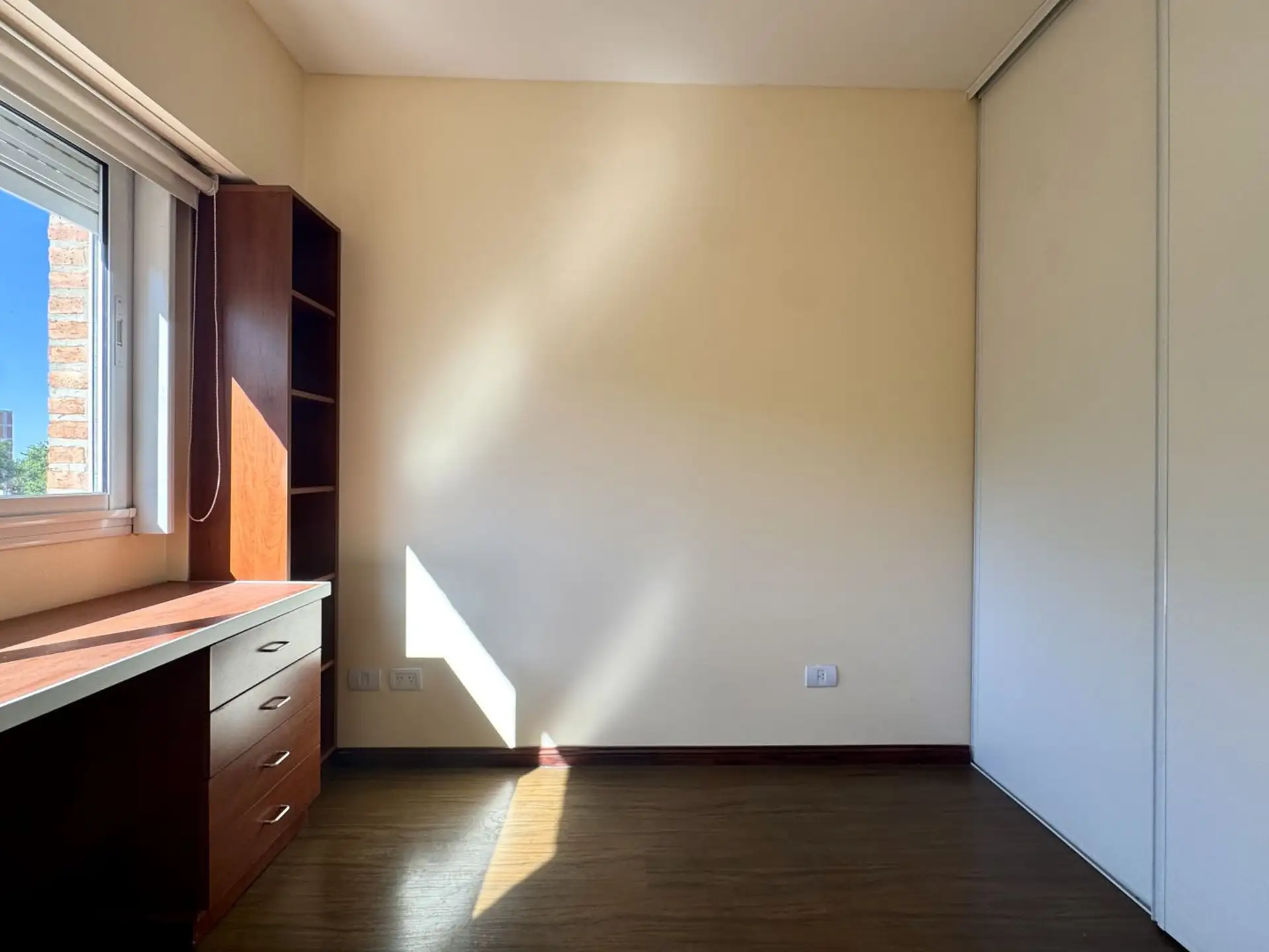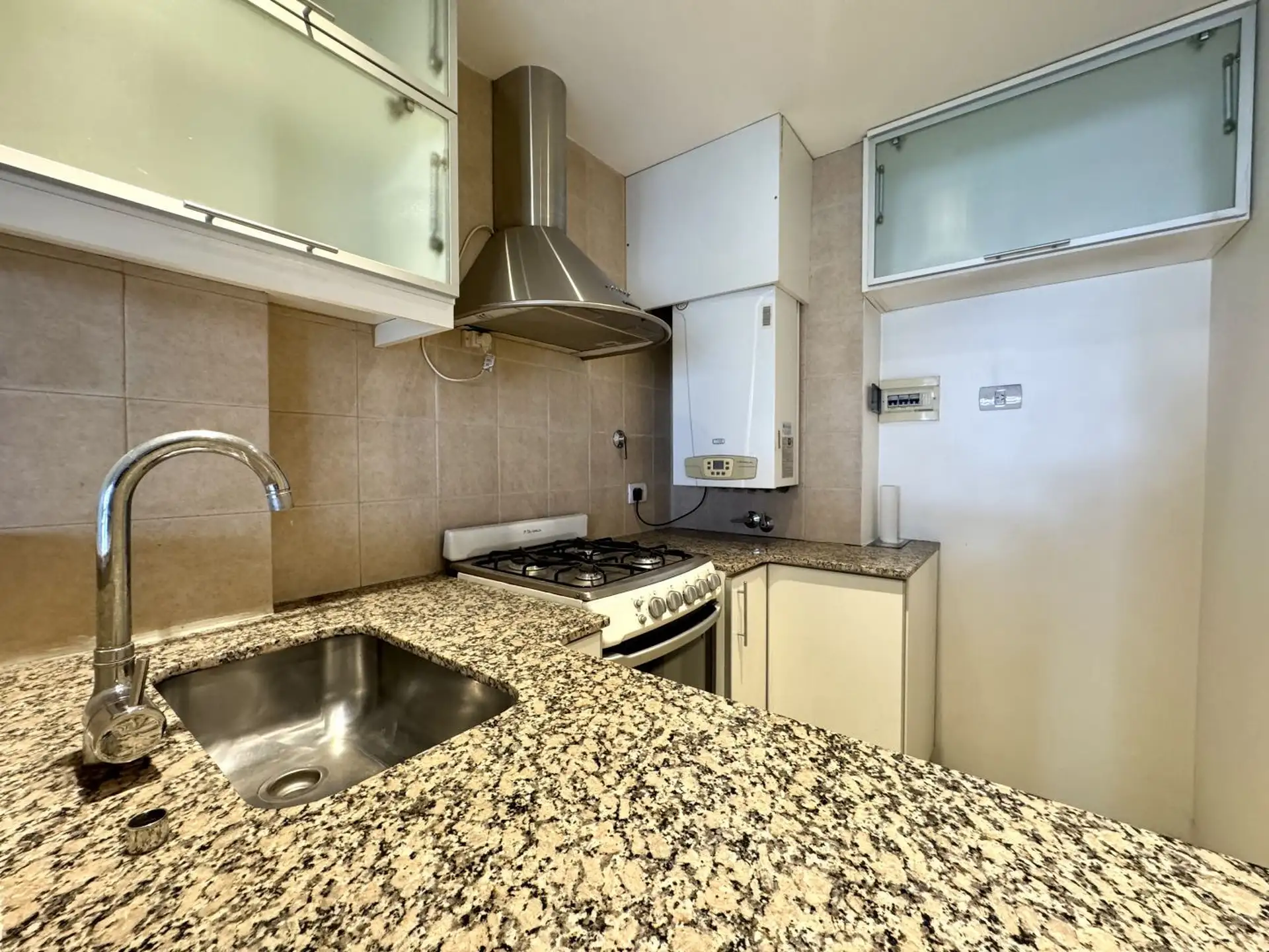 Apartamento para locação em Villa Sáenz Peña, Tres de Febrero. A unidade tem living com área de jantar, ar-condicionado, aquecimento e acesso à varanda. Possui cozinha com armários superiores e inferiores, conexão para lavadora e fogão, banheiro com vanity e espelho, e dois quartos com armários e piso flutuante. O contrato tem duração de 24 meses. O aluguel é de $850.000 mais condomínio, serviços, ABL e seguro do imóvel, com reajuste trimestral pelo IPC. As expensas são estimativas e podem mudar