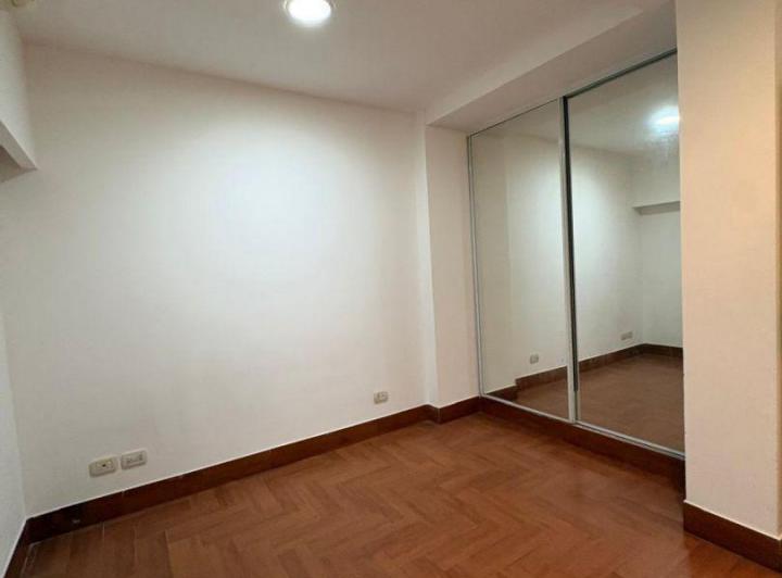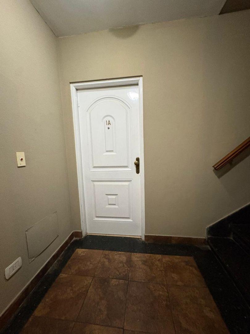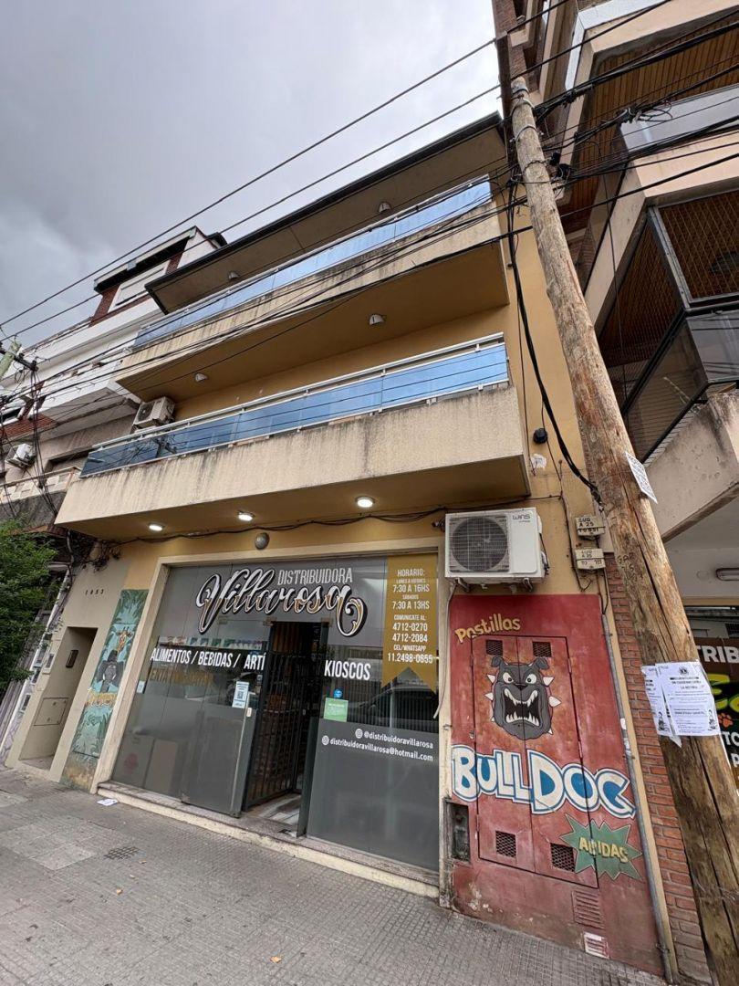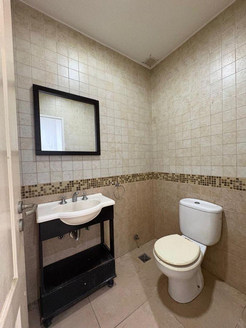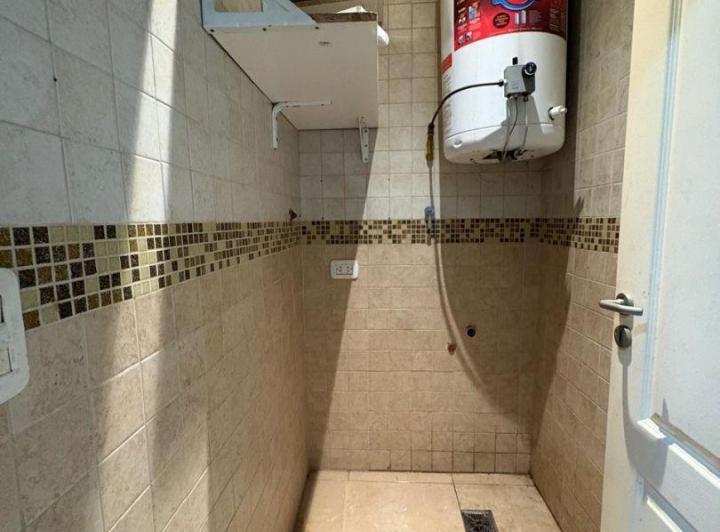 Apartamento de 3 ambientes em Santos Lugares, Tres de Febrero, no piso superior por escada. Possui living e sala de jantar com piso cerâmico, estufa e ar-condicionado, cozinha com barra, móveis aéreos e inferiores, fogão, termotanque e conexão para lavadora. Inclui lavabo, banheiro completo, varanda de frente e 2 dormitórios com armários embutidos, sendo 1 deles com ar-condicionado. Aluguel de ARS 950.000 + condomínio + ABL + serviços + seguro do imóvel, com ajuste trimestral pelo IPC e contrato