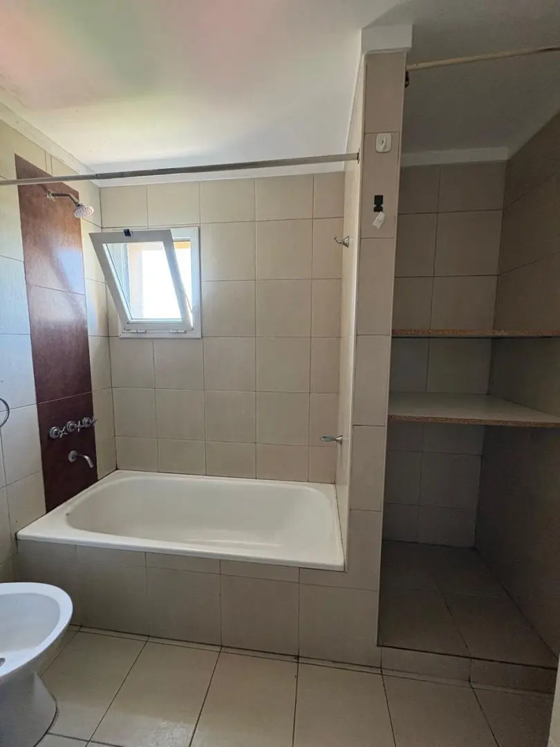 Apartamento para aluguel em Villa Raffo, Tres de Febrero, com 3 ambientes e 2 quartos com armários embutidos. Sala de estar e jantar com aquecimento, iluminação e acesso à varanda. Cozinha separada com bancada, móveis planejados superiores e inferiores, fogão, aquecedor de água (termotanque) e conexão para máquina de lavar. Banheiro com banheira. O aluguel é de $850.000 + condomínio + ABL + serviços + seguro do imóvel, com ajuste trimestral pelo IPC e contrato de 24 meses.