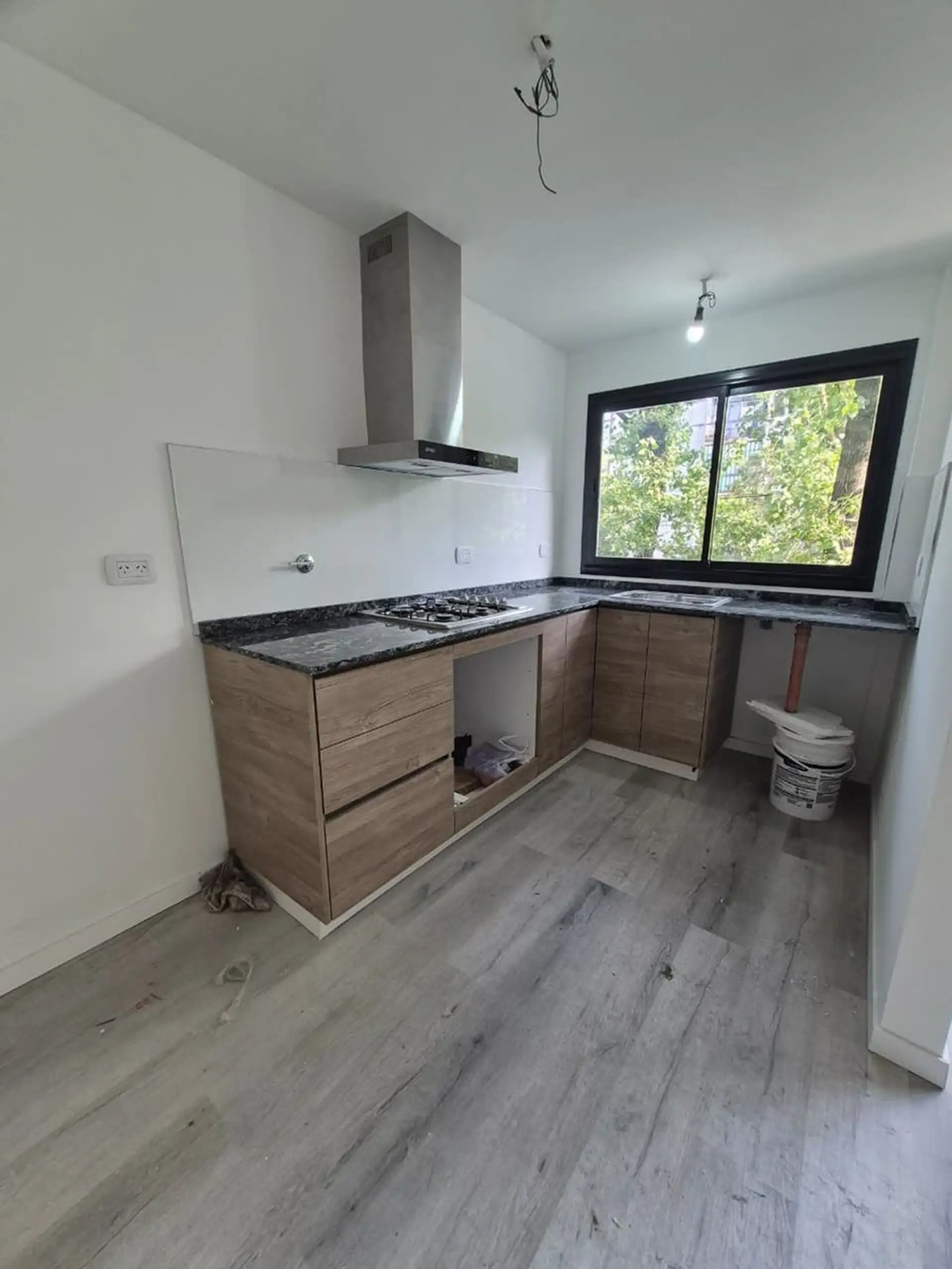 Apartamento de 3 ambientes em Ciudad Jardín, novo (nunca habitado), com living-comedor e saída para varanda. Conta com 2 quartos com placares completos, banheiro completo novo e cozinha recém-instalada com móveis planejados, conexões prontas para máquina de lavar. Sem uso.