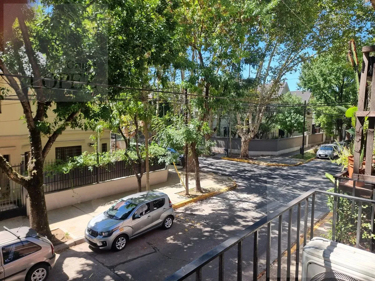 Apartamento de 3 ambientes em Vicente López, no 1º andar por escadas, com varanda de frente e vista para a rua. Possui living e área de jantar com piso de parquet, ar-condicionado frio/calor e saída para a varanda. Cozinha independente com móveis planejados e despensa, além de lavadero independente com espaço para máquina de lavar. Tem banheiro completo com banheira e 2 dormitórios com piso de parquet e armários embutidos. Aceita uso profissional.