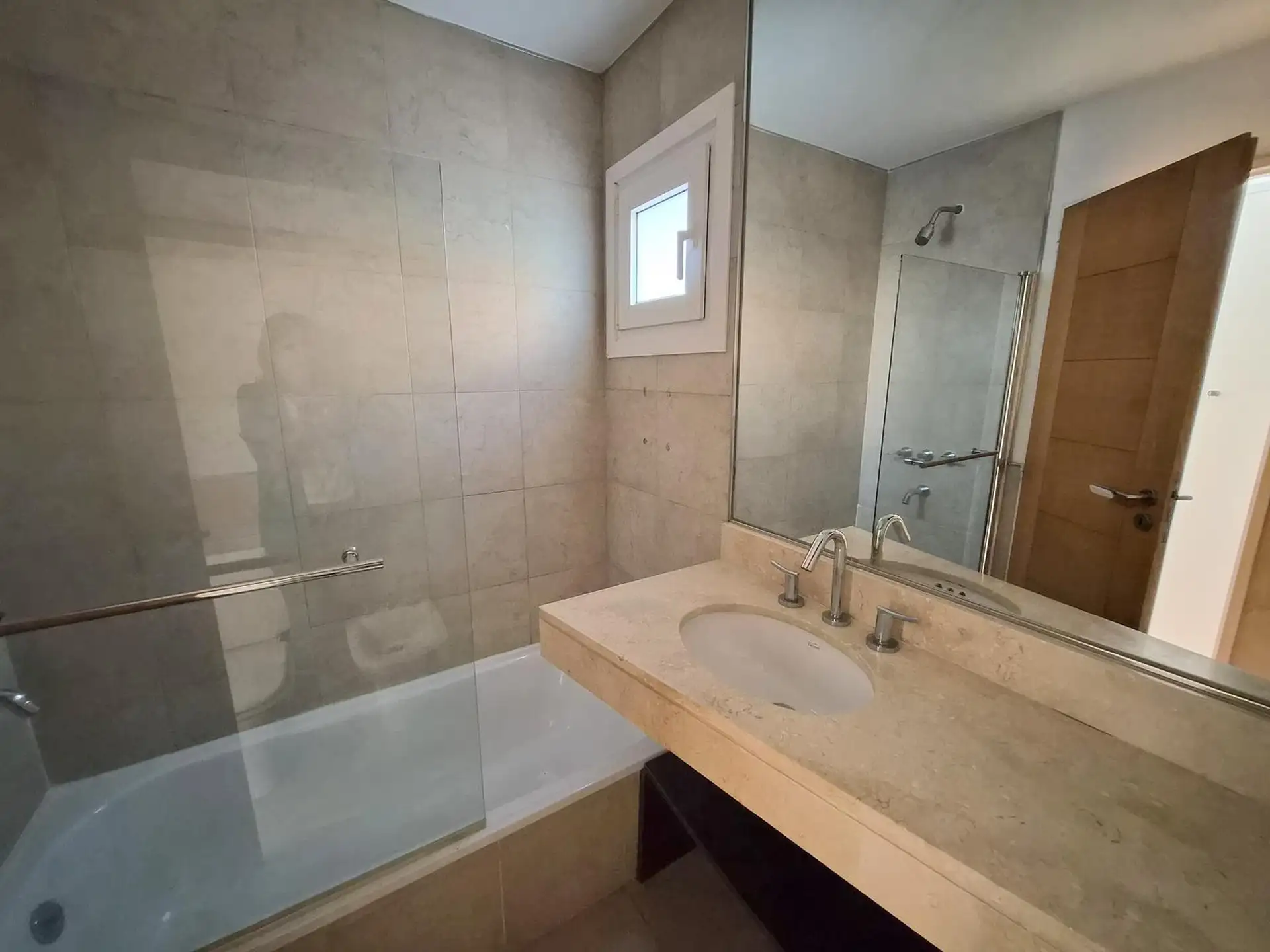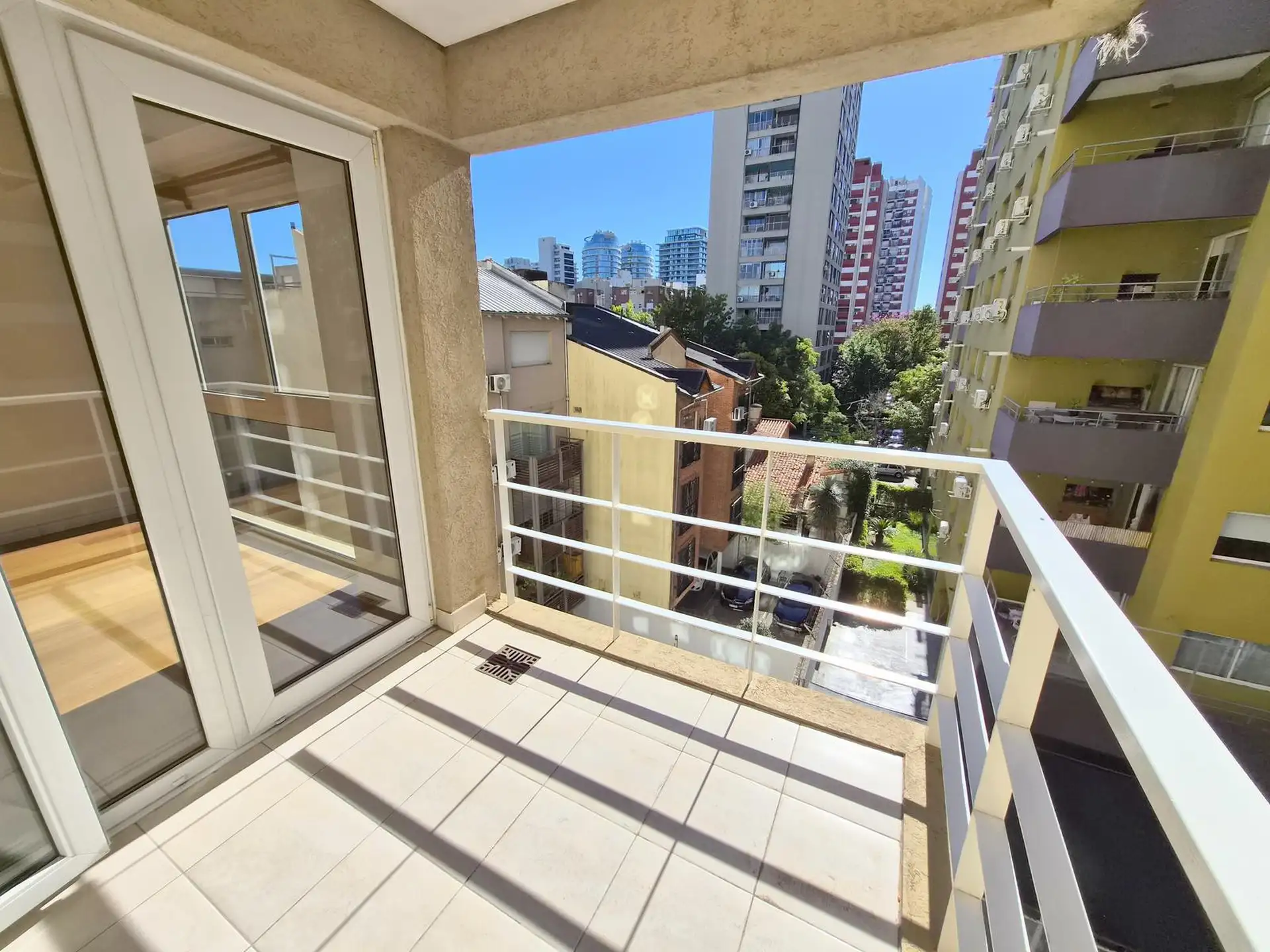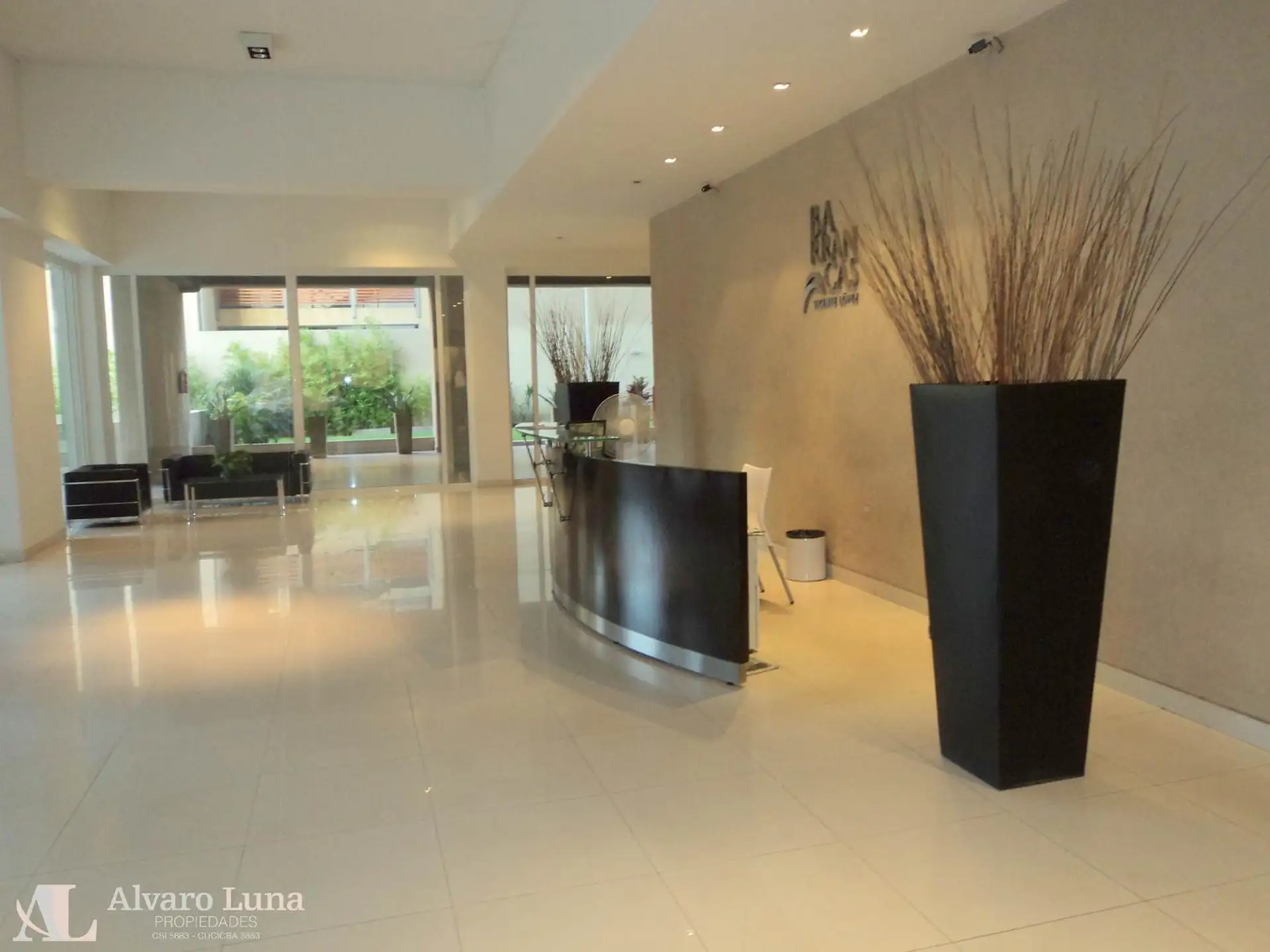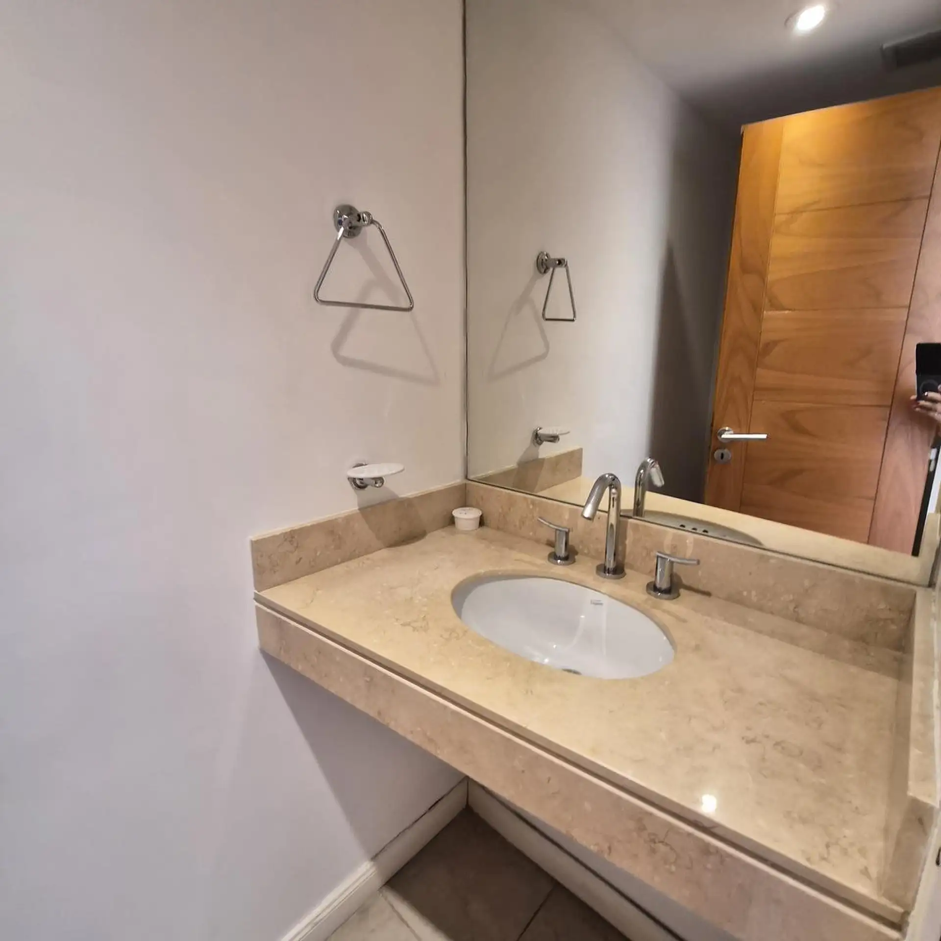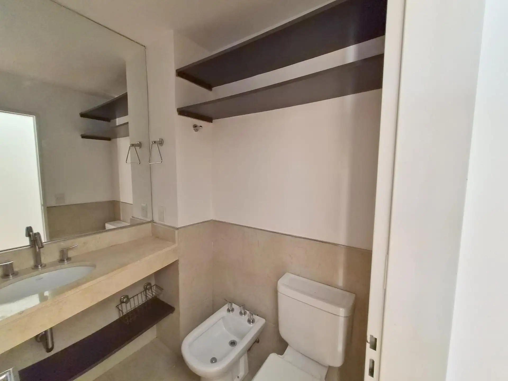 Apartamento de 2 ambientes com 2 dormitórios em 3º andar, com vista aberta e vaga de garagem descoberta. Possui lavabo de recepção, sala de estar e jantar com saída para um balcão tipo terraço, cozinha com área de lavandeira integrada e balcão em barra. O dormitório tem ar-condicionado, saída para balcão tipo terraço, ampla fileira de armários e banheiro completo em suíte. O apartamento tem aquecimento por piso radiante; o condomínio oferece segurança 24 horas, piscina, academia, área de churras
