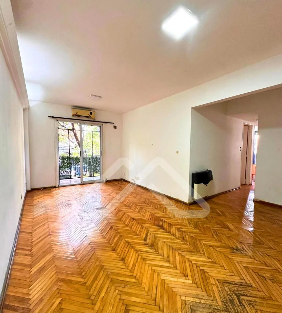 Apartamento de três ambientes em Villa Crespo com 2 dormitórios. O living tem varanda e recebe luz natural. A cozinha é separada, com microcimento no piso e nas paredes e móveis de cozinha modernos; há banheiro completo com banheira. A unidade fica em esquina, com a varanda voltada para Vera e vista para Juan B Justo a partir de um dos dormitórios; conta com ar-condicionado em todos os ambientes.