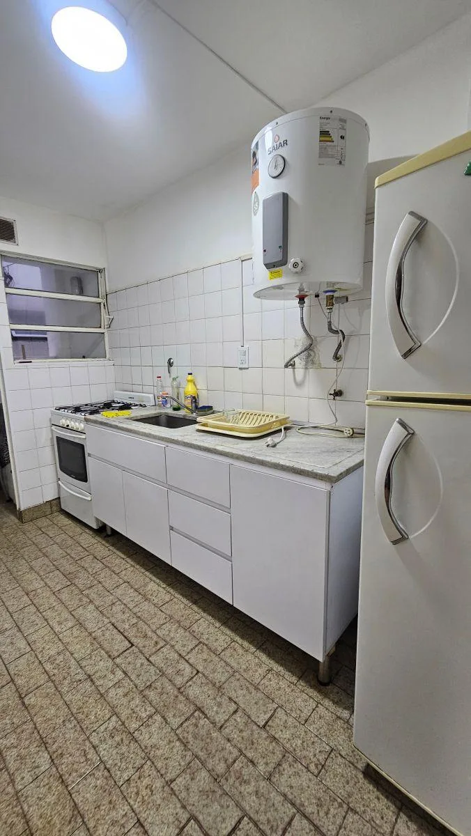 Apartamento de 3 ambientes em Villa Devoto, sem fiança de aluguel e sem seguro-caução. Contém 2 dormitórios, sala de estar e jantar, cozinha separada a gás, geladeira com freezer e área de serviço integrada com máquina de lavar. Há ar-condicionado (frio), ventiladores de teto em todos os ambientes e banheiro completo. Aluguel de $950.000, com pagamento de eletricidade, gás e WiFi-cable à parte; contrato semestral ou anual e reajuste trimestral segundo o IPC.