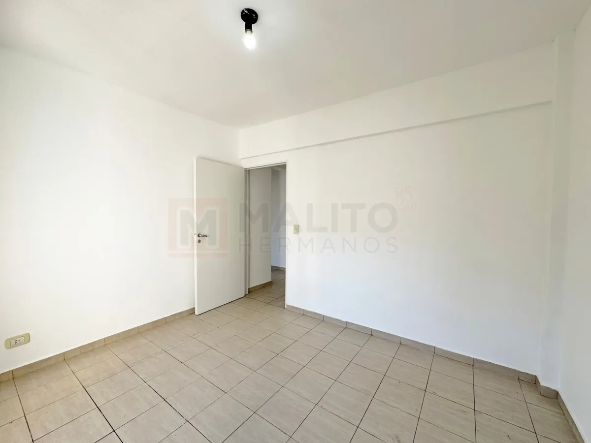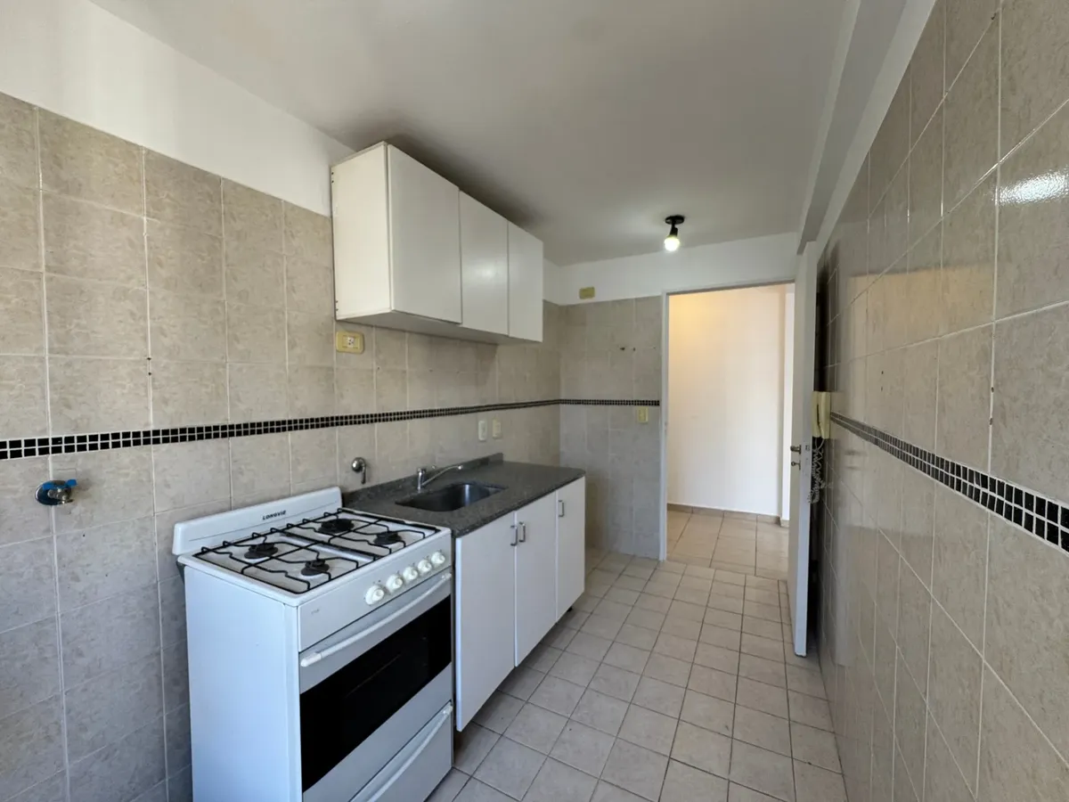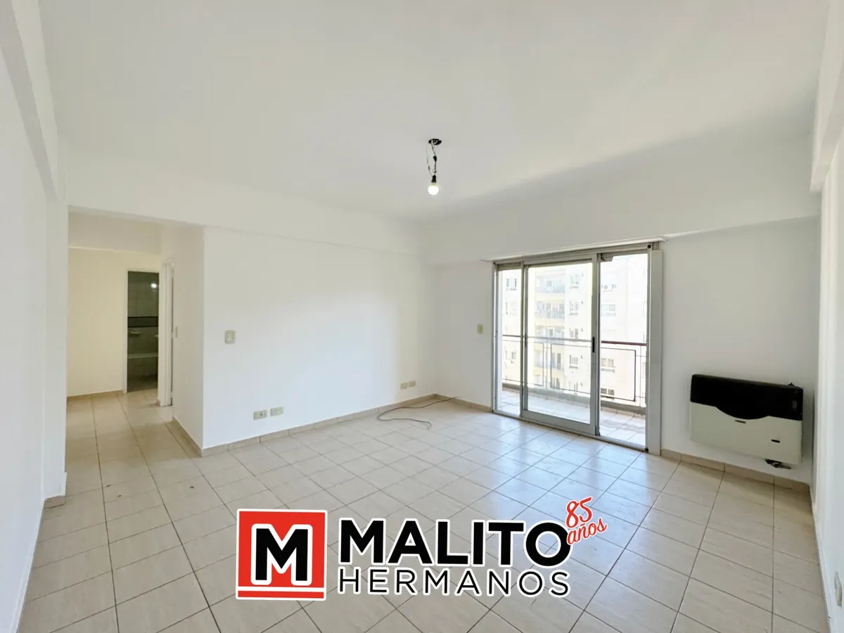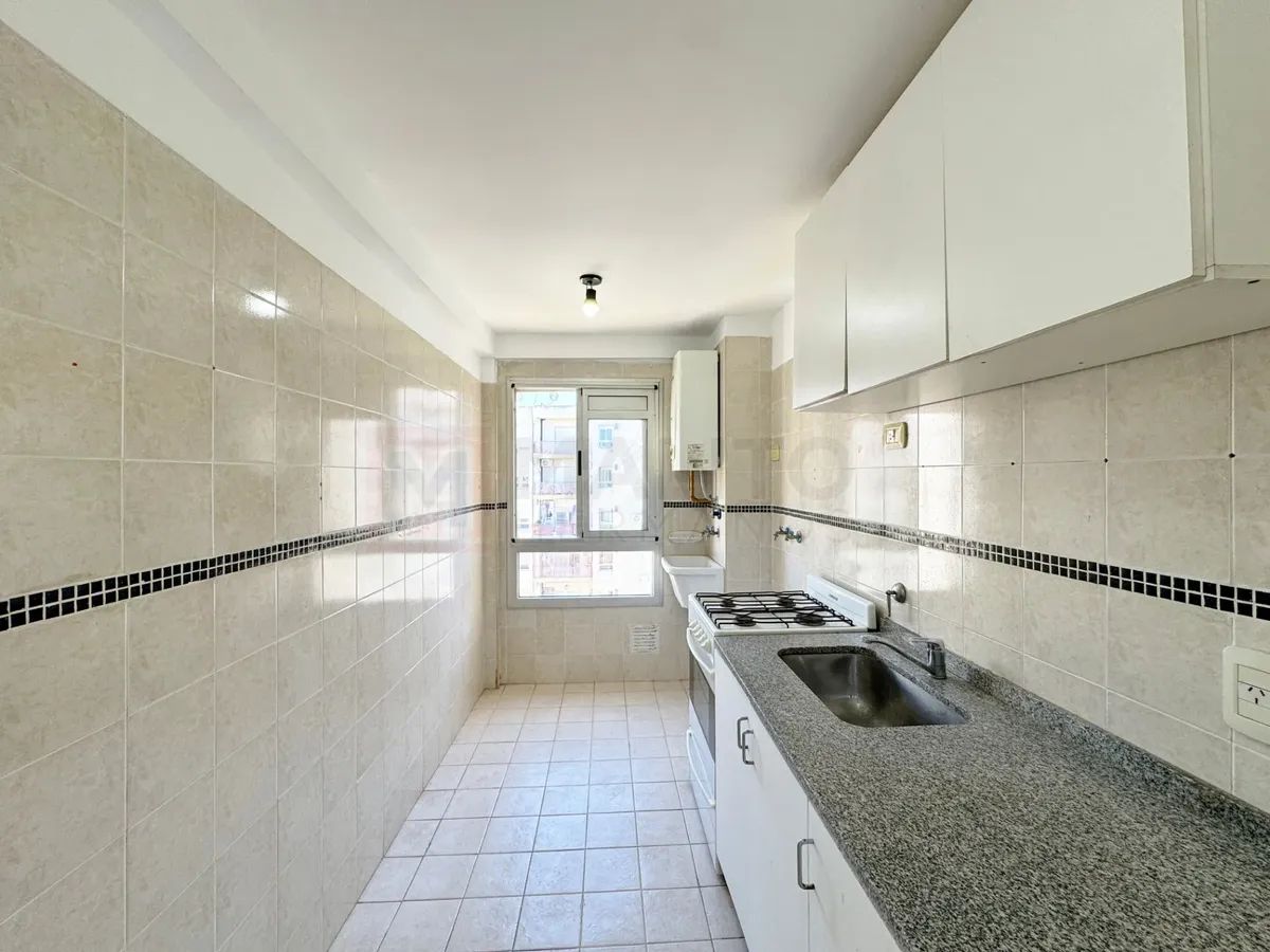 Apartamento de três ambientes com 2 dormitórios em Villa Lugano. O living e a área de jantar têm saída para a varanda. Cozinha independente e 1 banheiro completo, com circulação organizada por um corredor. Condomínio de $52.000 e aceitam-se animais.