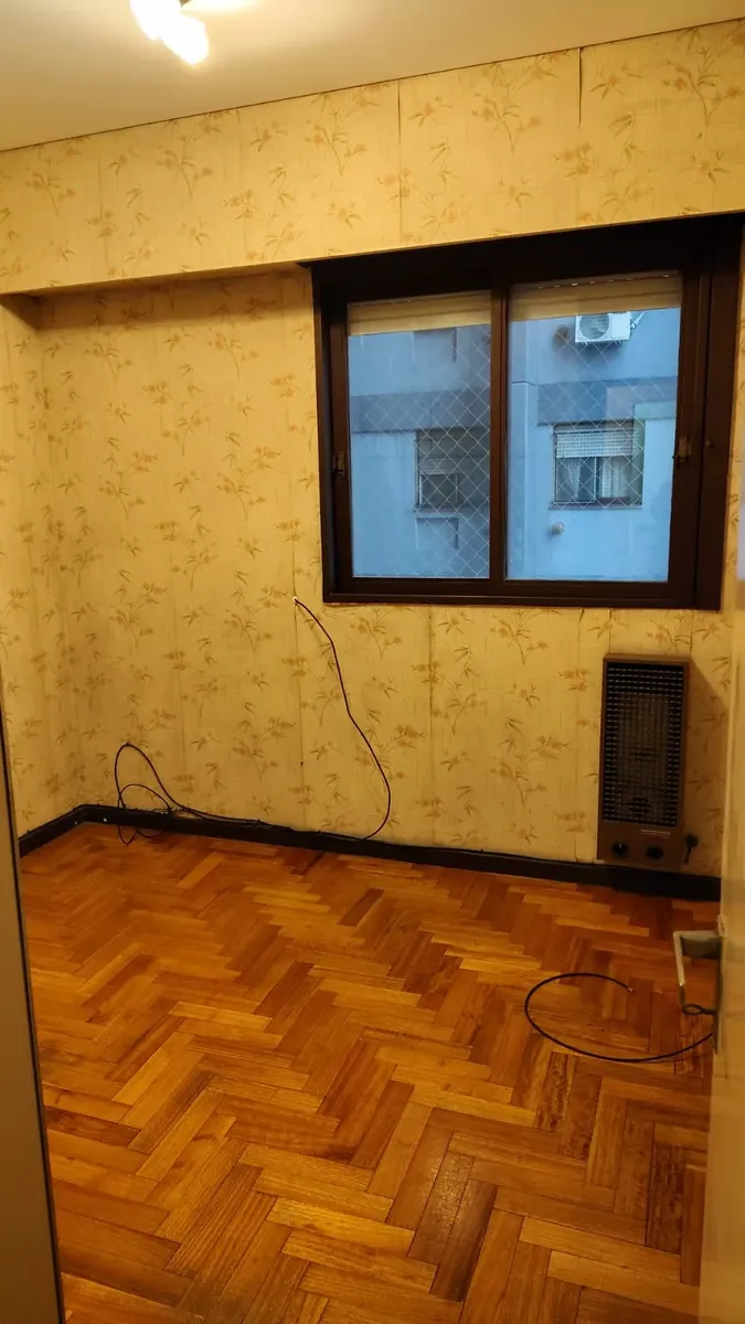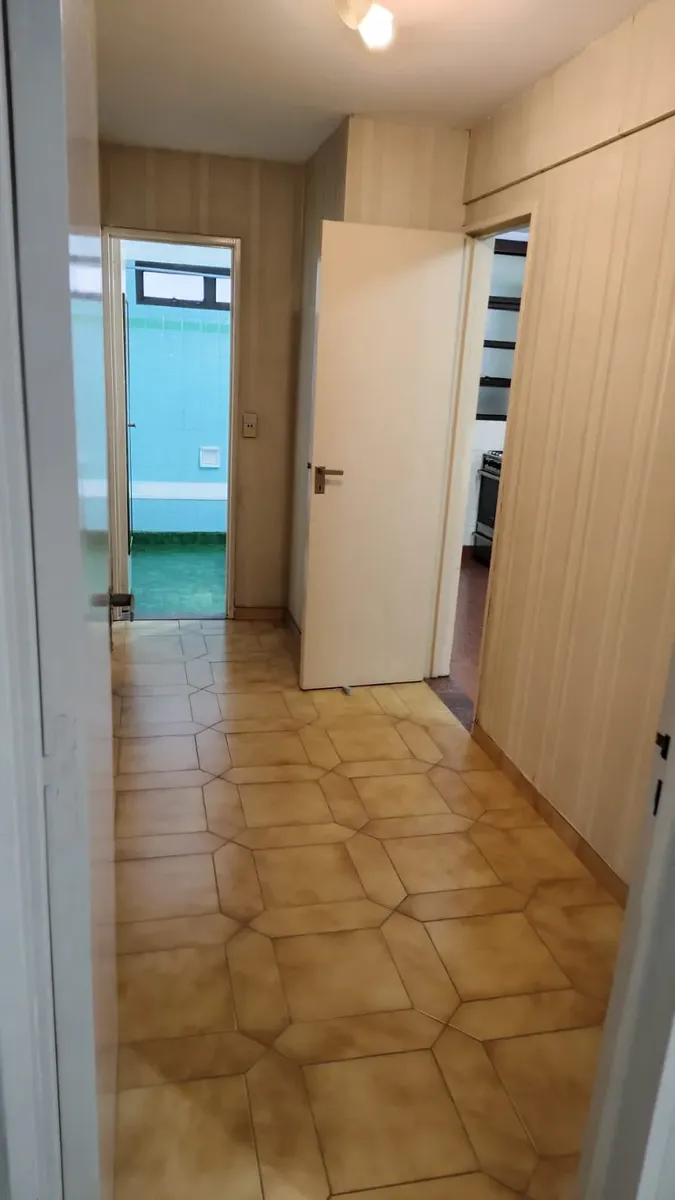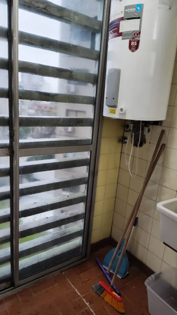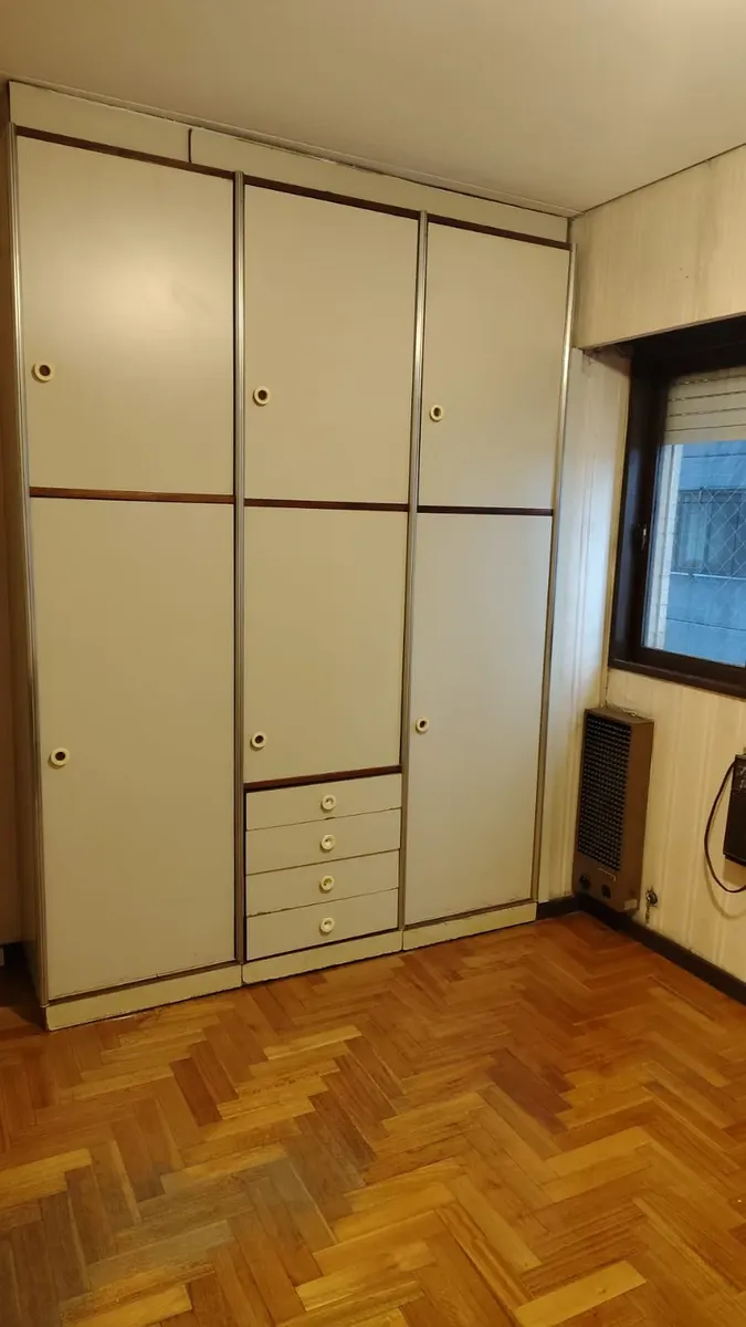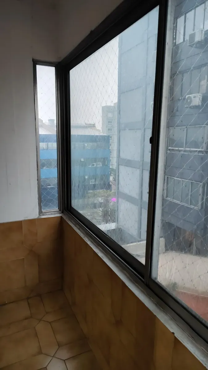 Apartamento em edifício de vários andares, com acesso principal protegido e hall de entrada; há rampa e elevadores. O imóvel tem hall, living com acesso a varanda fechada com janelas, 2 dormitórios com piso de parquet e armários embutidos. A cozinha tem formato alongado, com móveis sob a bancada e saída para área de serviço independente, com conexão para lavadora e aquecedor (calefón) instalado; o banheiro principal tem banheira, bidê e janela para ventilação natural.