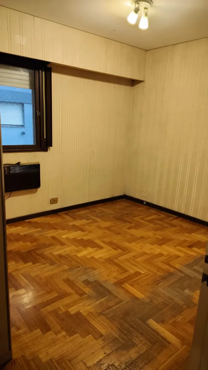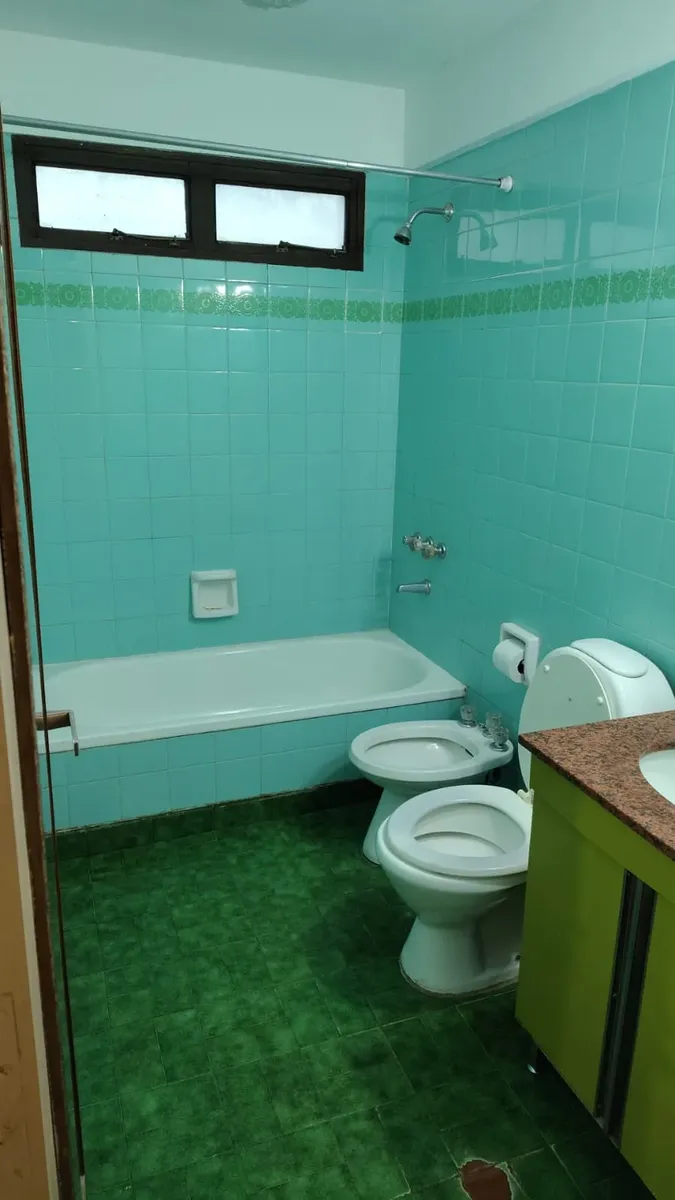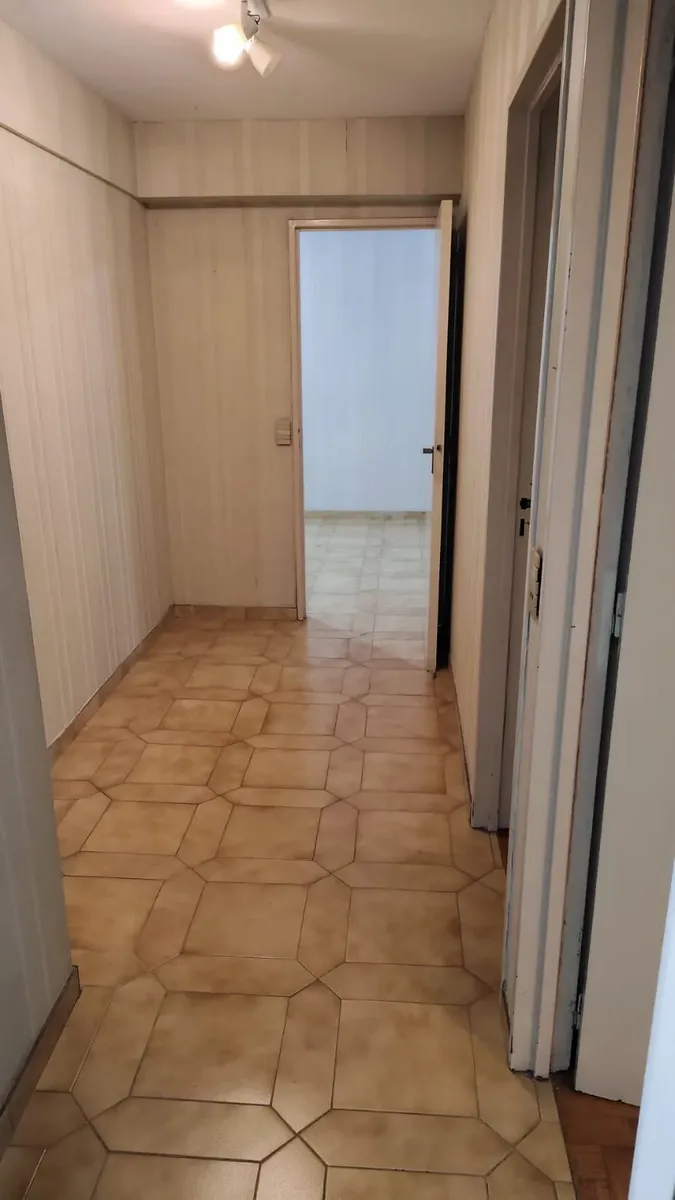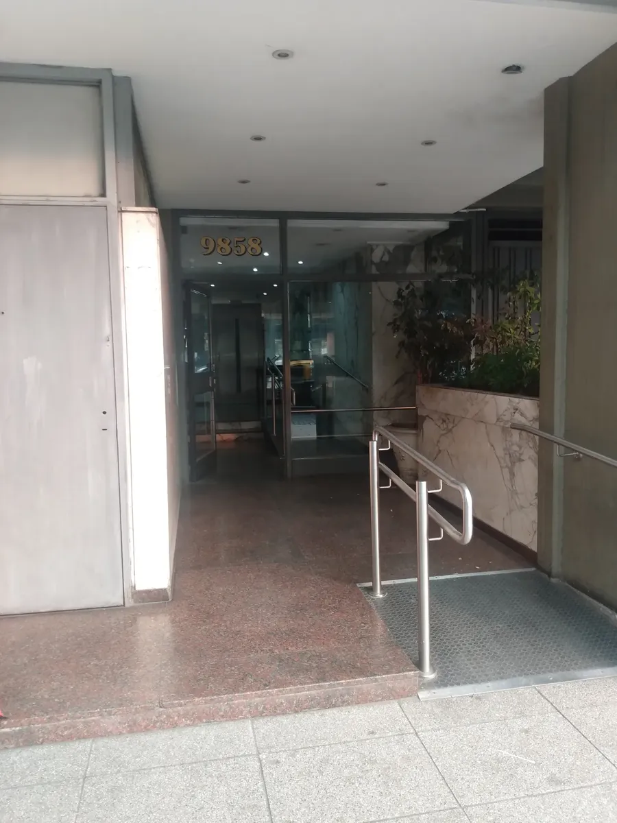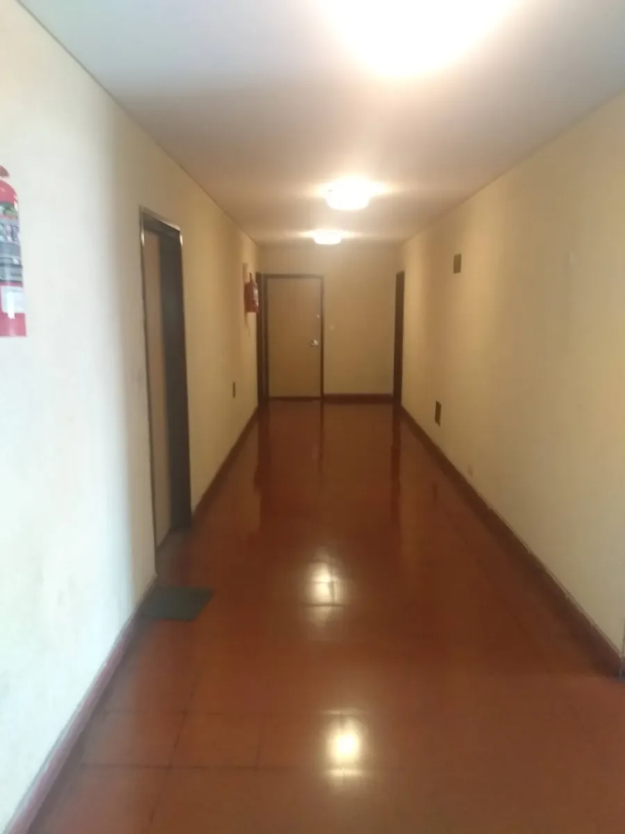 Apartamento em edifício de vários andares, com acesso principal protegido e hall de entrada; há rampa e elevadores. O imóvel tem hall, living com acesso a varanda fechada com janelas, 2 dormitórios com piso de parquet e armários embutidos. A cozinha tem formato alongado, com móveis sob a bancada e saída para área de serviço independente, com conexão para lavadora e aquecedor (calefón) instalado; o banheiro principal tem banheira, bidê e janela para ventilação natural.