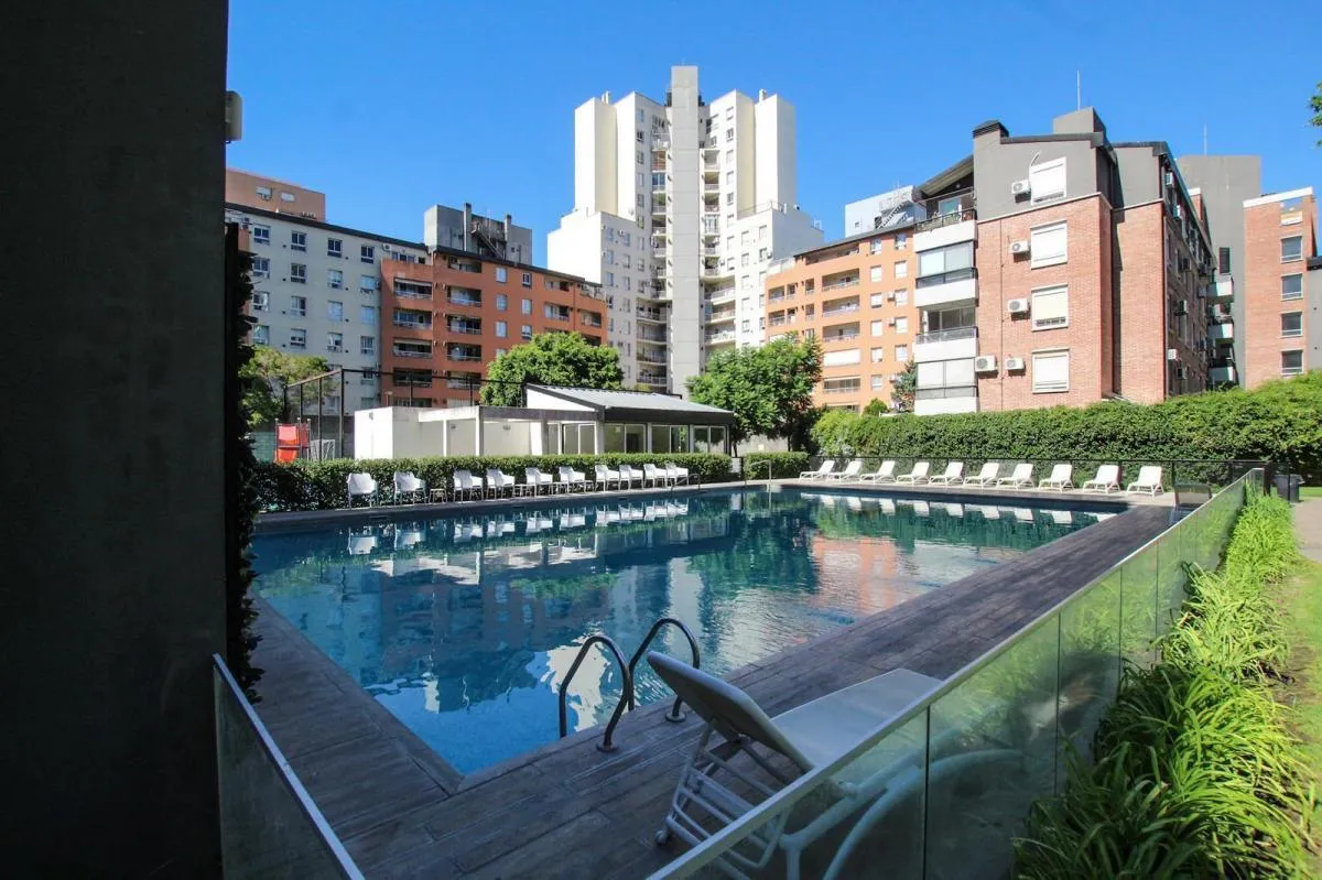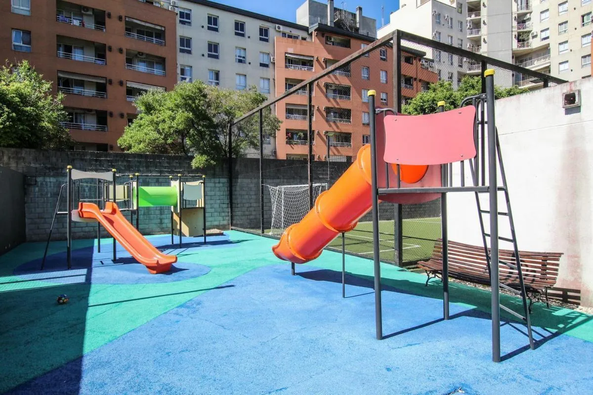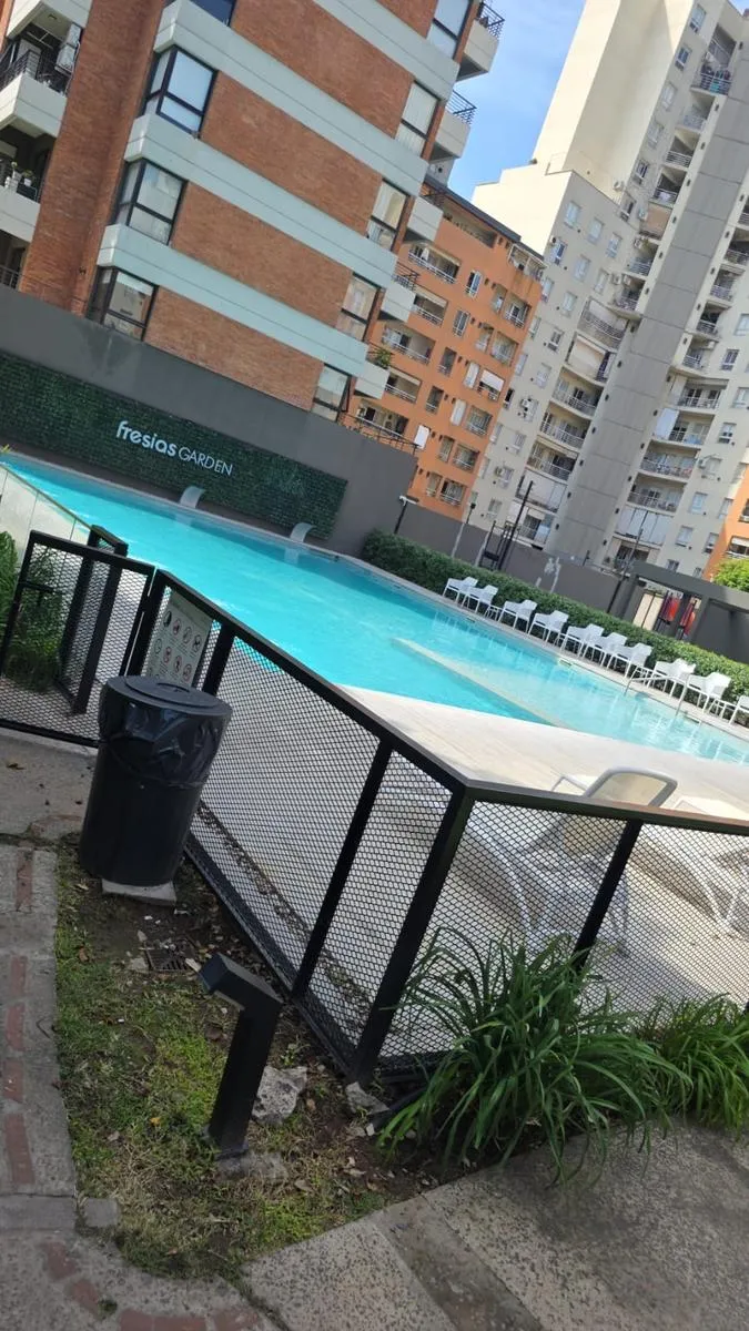 Apartamento de 3 ambientes para alugar no complexo Las Fresias Garden, em Villa Santa Rita, com 63,57 m² totais (58,80 m² cobertos e 5,07 m² descobertos). Unidade no 2º andar lateral, em torre de 5 pisos, com living e sala de jantar, 2 dormitórios (1 suíte com closet), 1 banheiro completo e varanda com churrasqueira. Conta com ar-condicionado e tem piso com área descoberta. O complexo oferece segurança 24 horas, piscina, campo de futebol, salão de festas (SUM), lavanderia e dois elevadores; as d