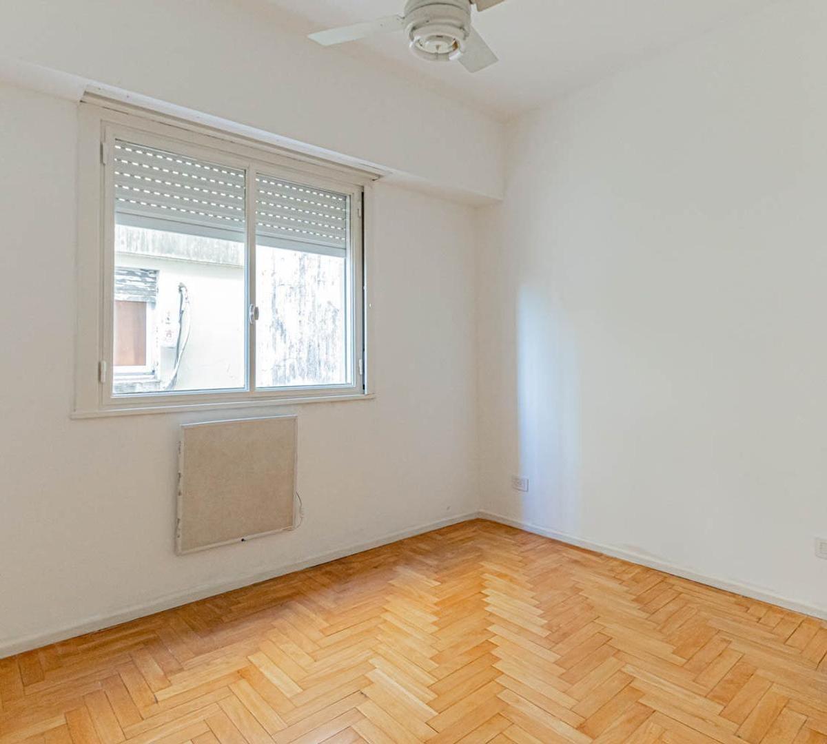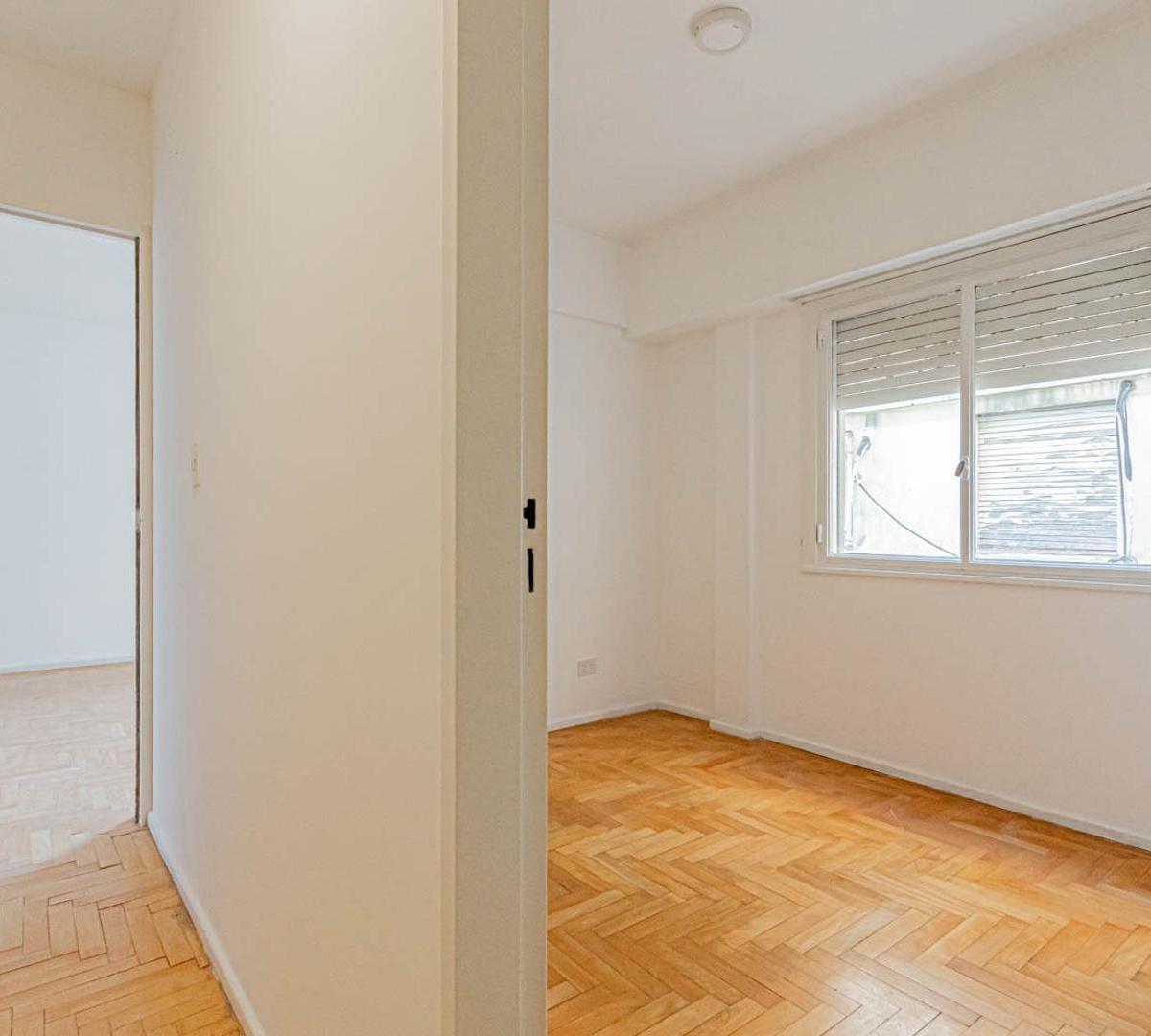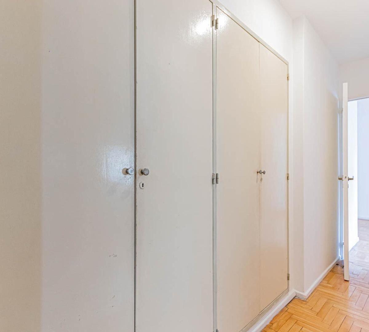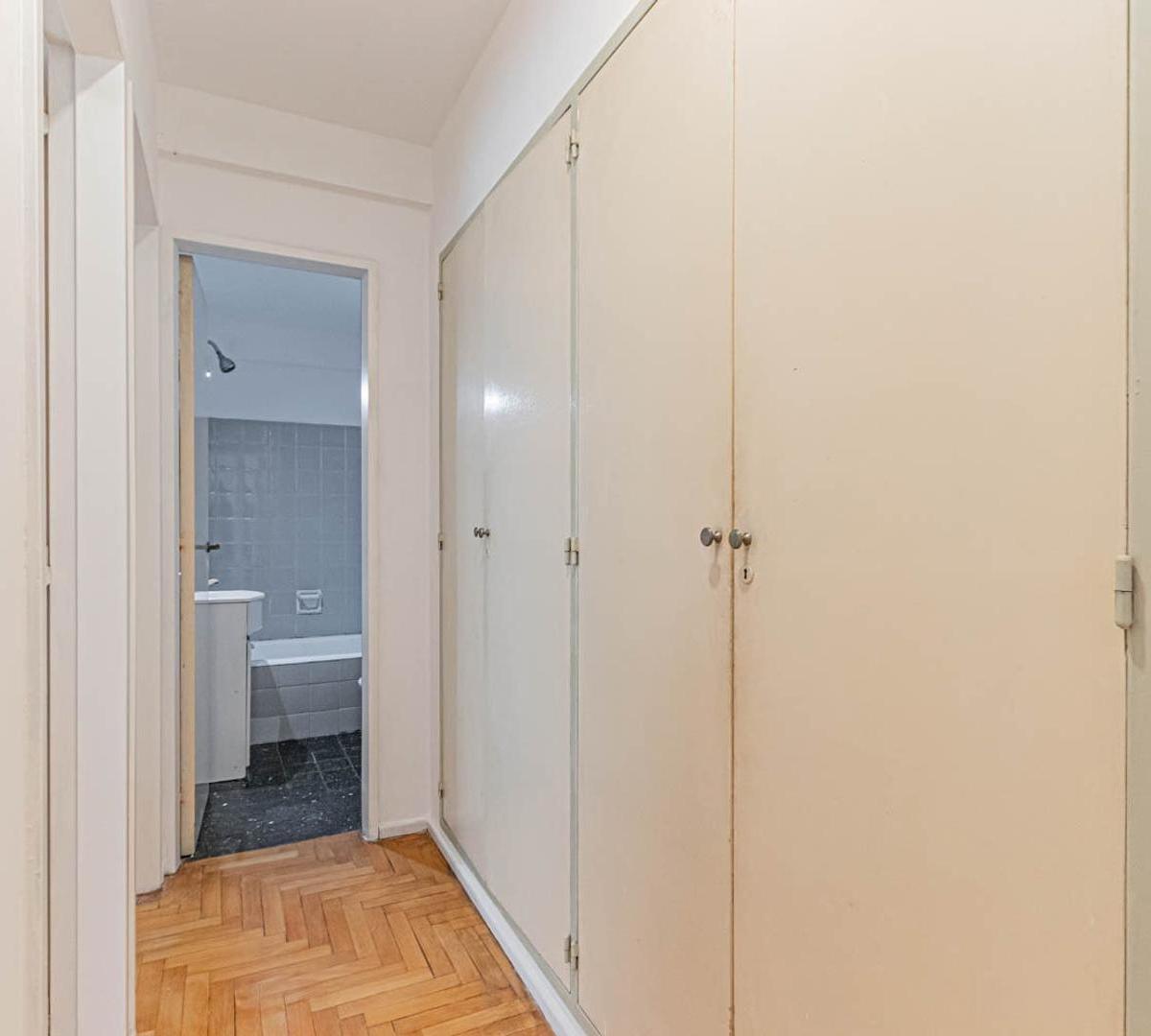 Apartamento de 3 ambientes em Villa Urquiza. Conta com 2 dormitórios, banheiro completo e cozinha independente. O imóvel tem área de serviço integrada e armários nos corredores dos dormitórios.