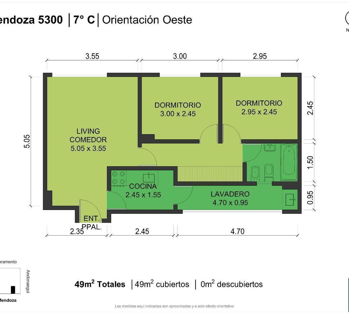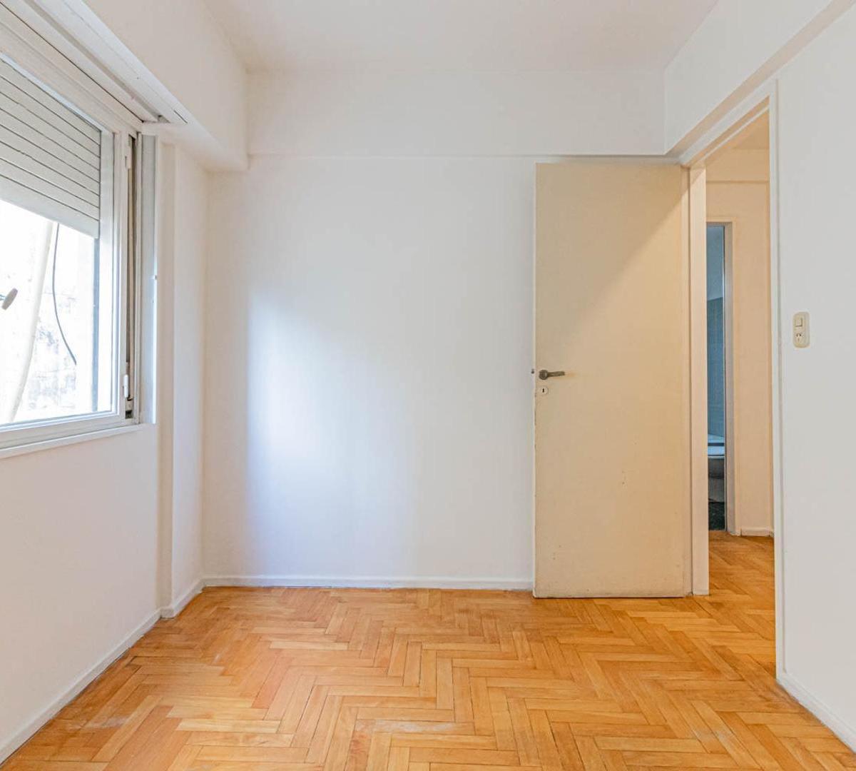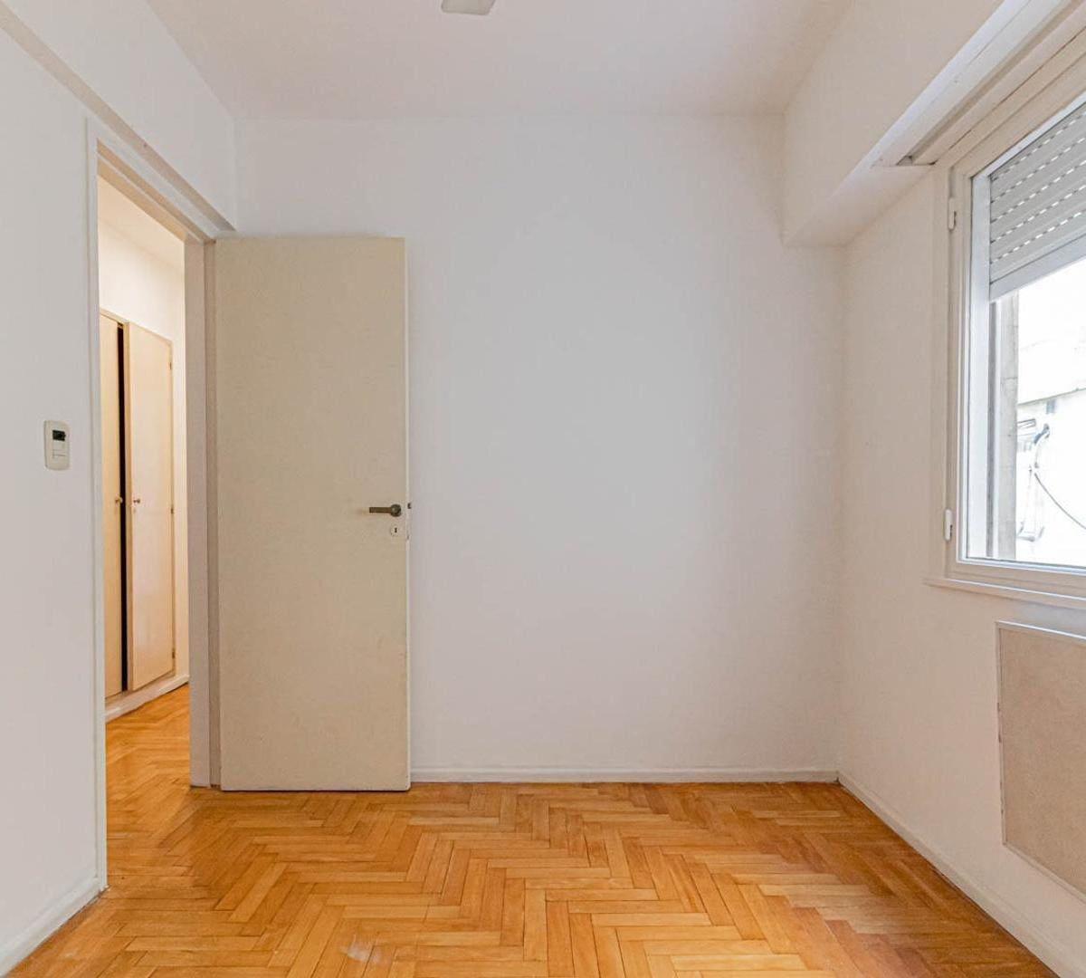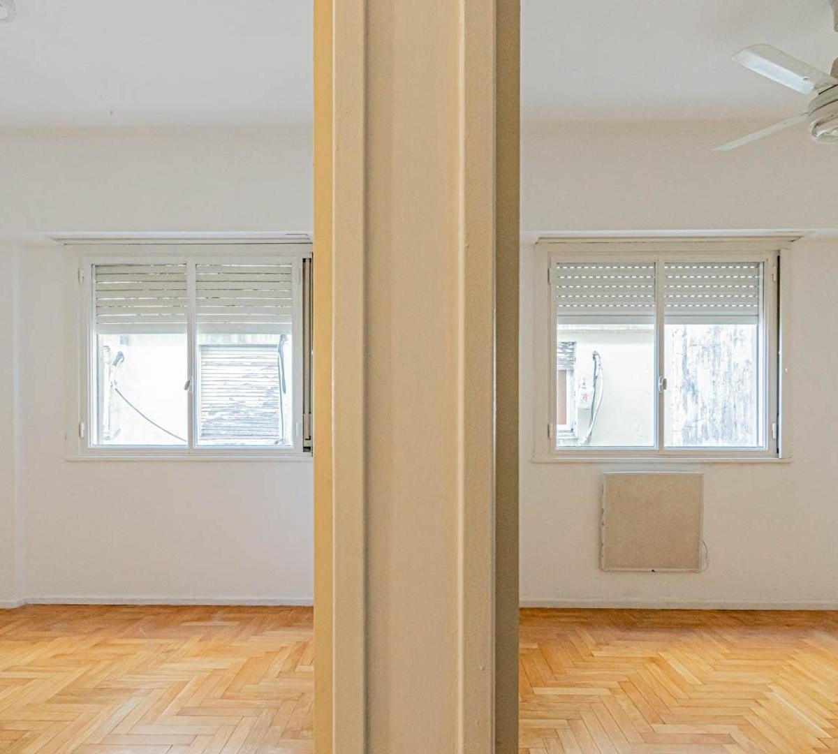 Apartamento de 3 ambientes em Villa Urquiza. Conta com 2 dormitórios, banheiro completo e cozinha independente. O imóvel tem área de serviço integrada e armários nos corredores dos dormitórios.