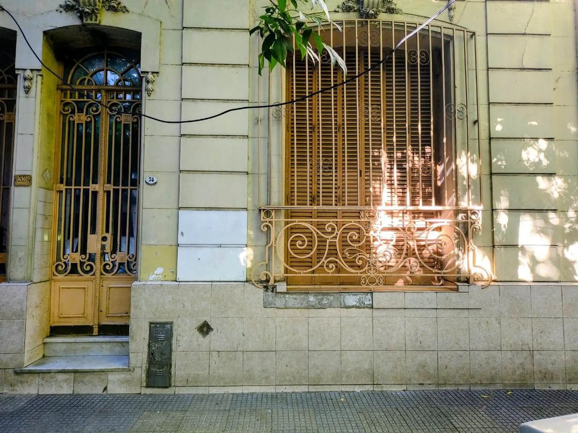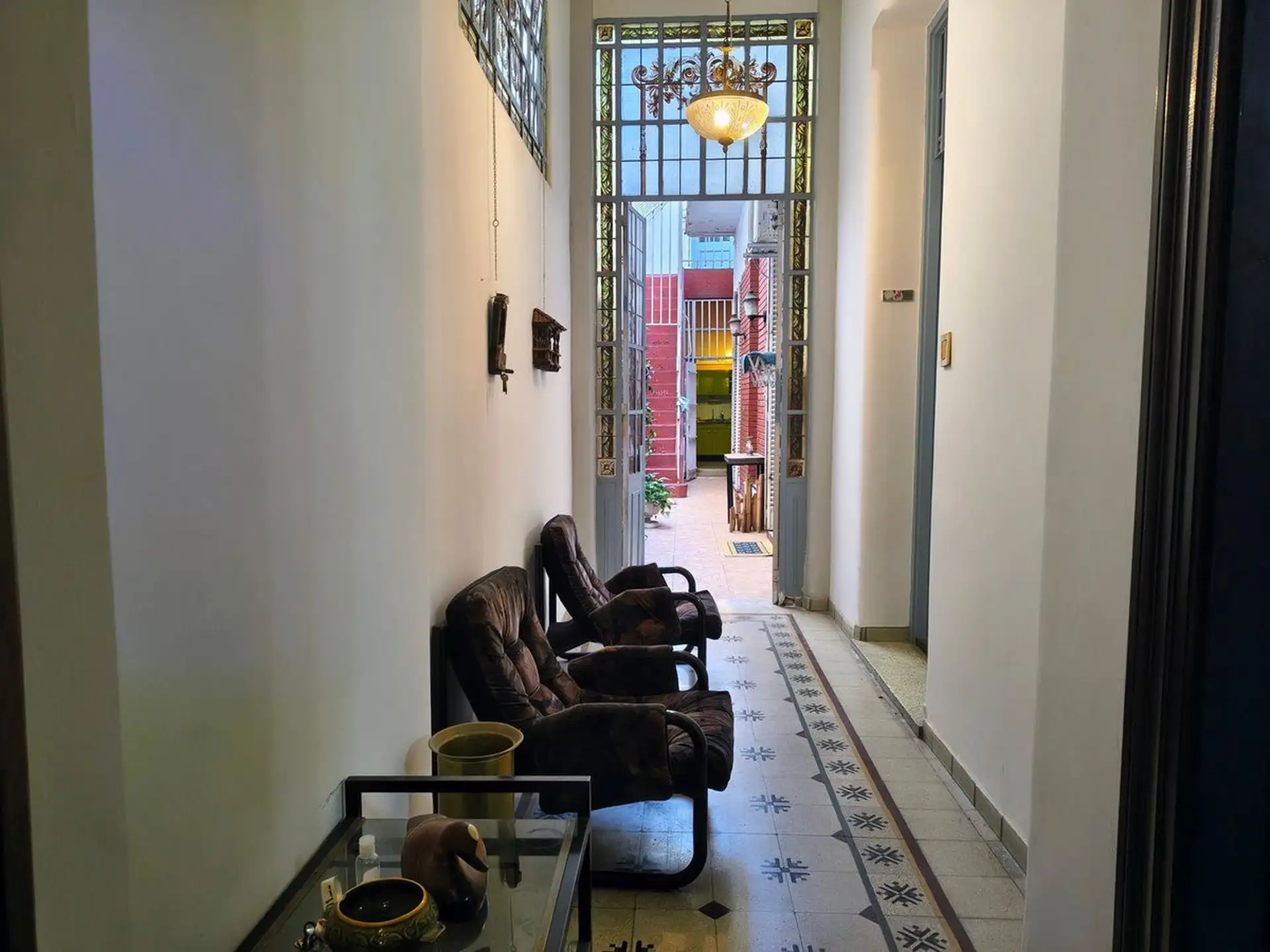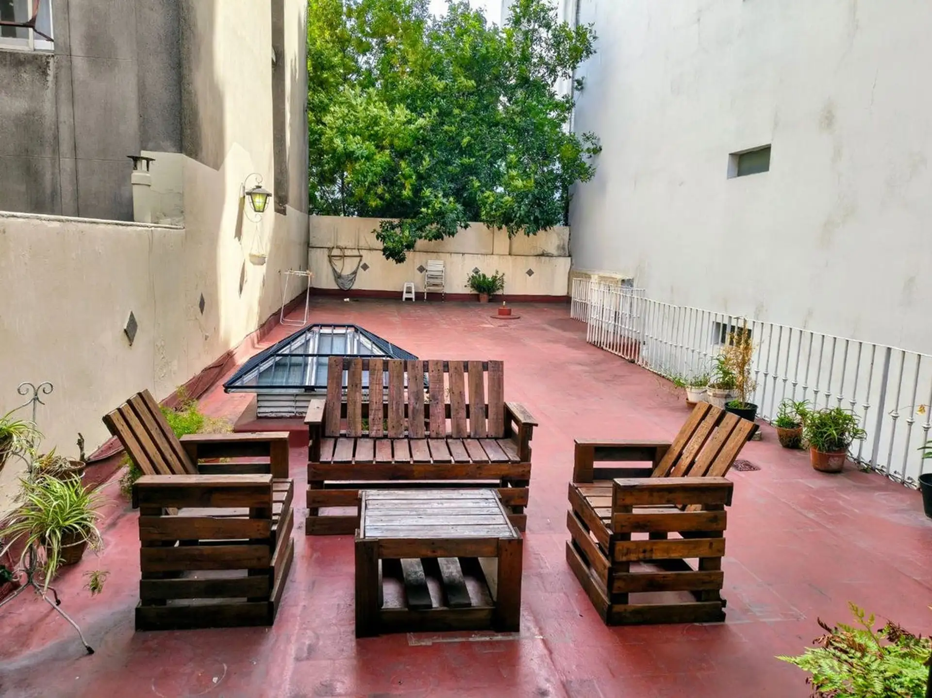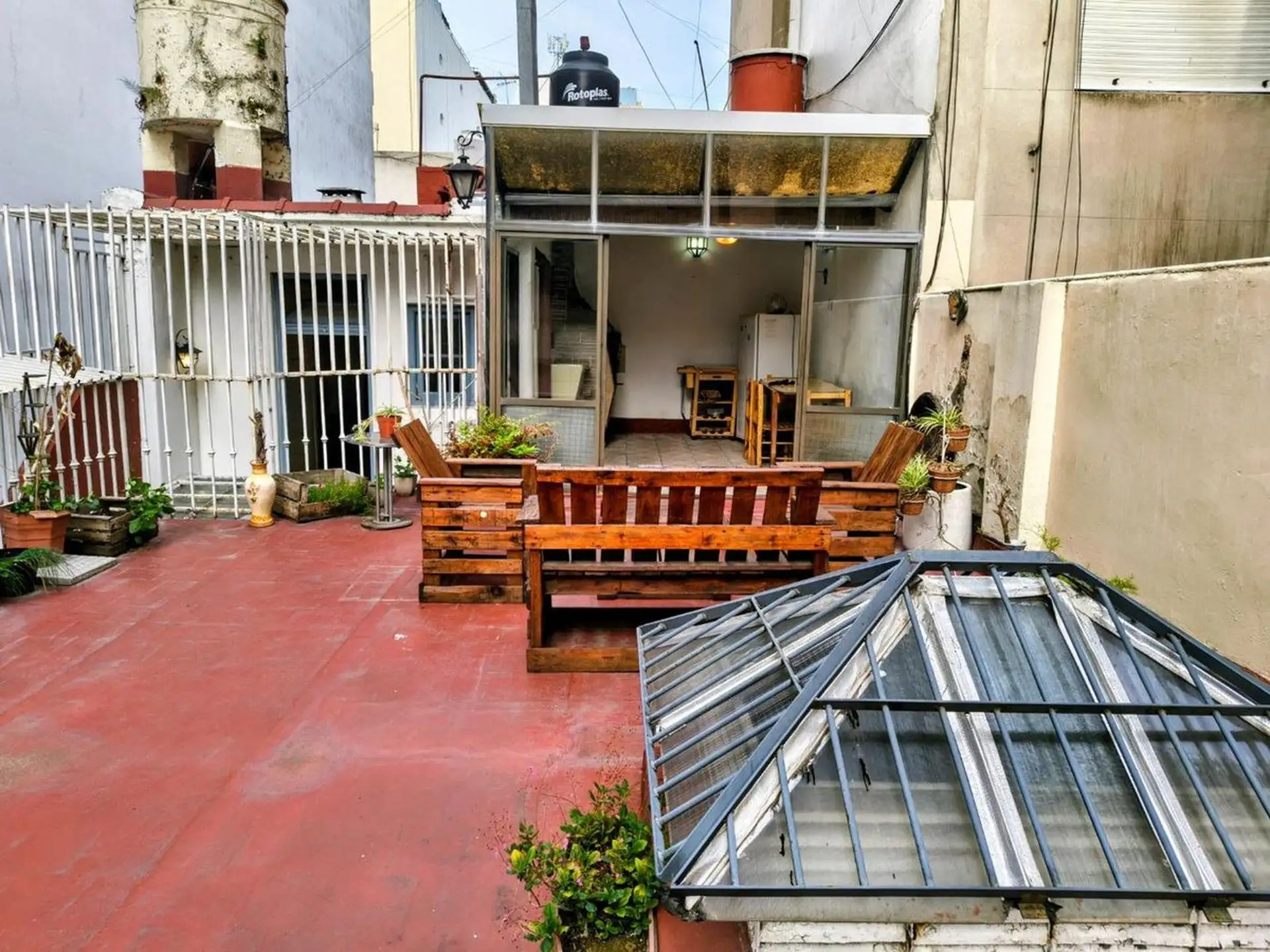 Unidade tipo PH para aluguel em Buenos Aires, entre Almagro e Balvanera, mobiliada. Com 277 m² totais, 5 ambientes e 3 dormitórios (1 montado como escritório ou espaço de trabalho). Possui sala, sala de jantar, banheiro, lavabo, galeria, área de serviço e depósito. Inclui camas, guarda-roupas (placards), mesas, cadeiras, escrivaninhas, ar-condicionado, 2 geladeiras, TV, lavadora (lavarropas) e ventiladores de teto. O imóvel tem pátio-terraço descoberto de 116 m², além de quiosque/fechamento com