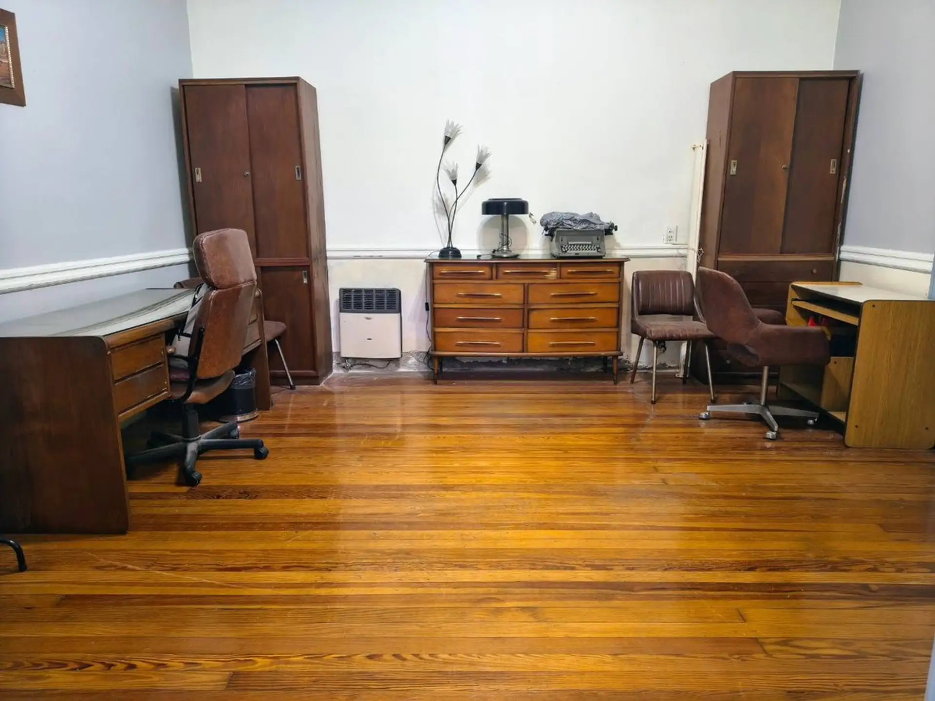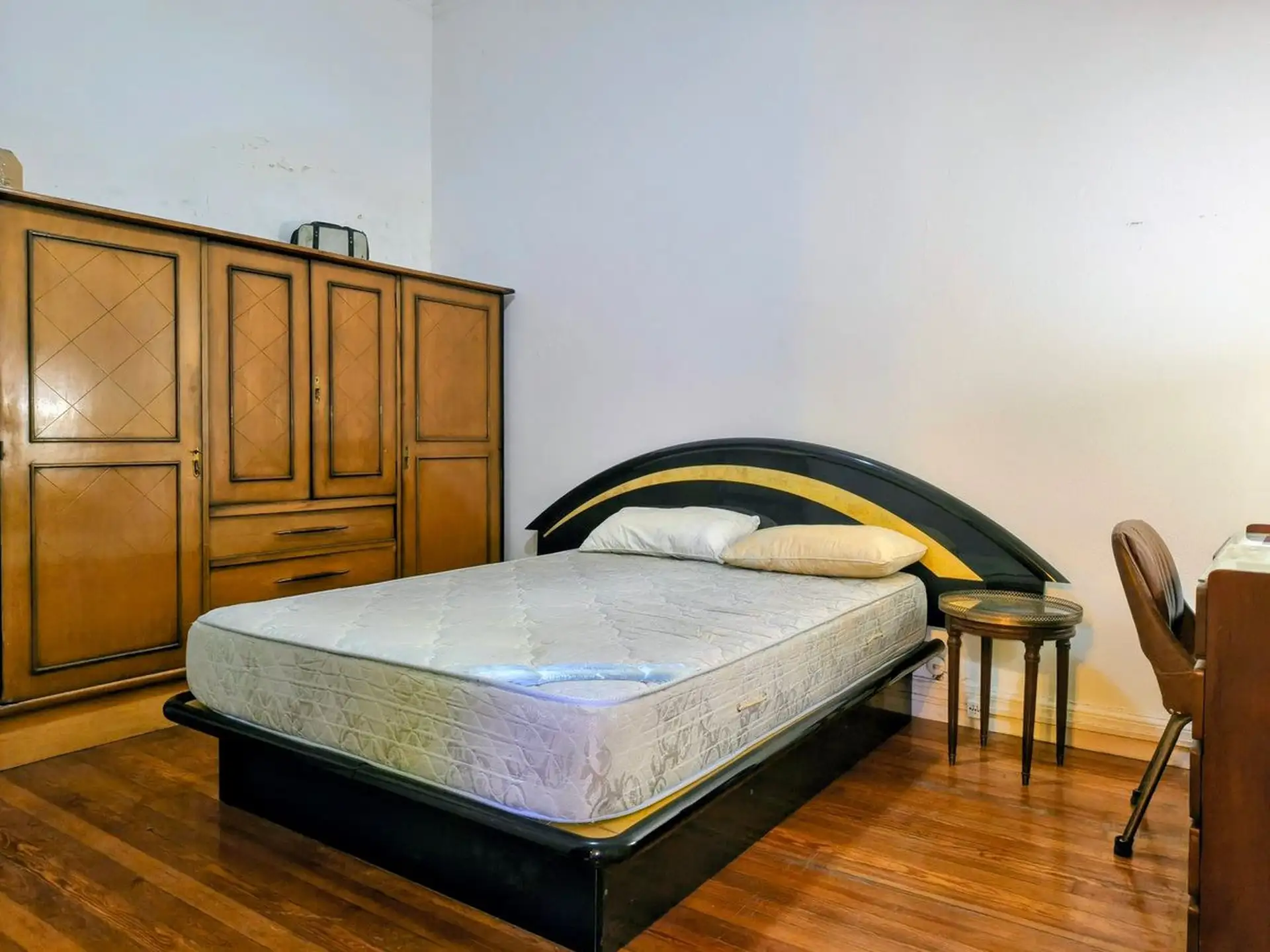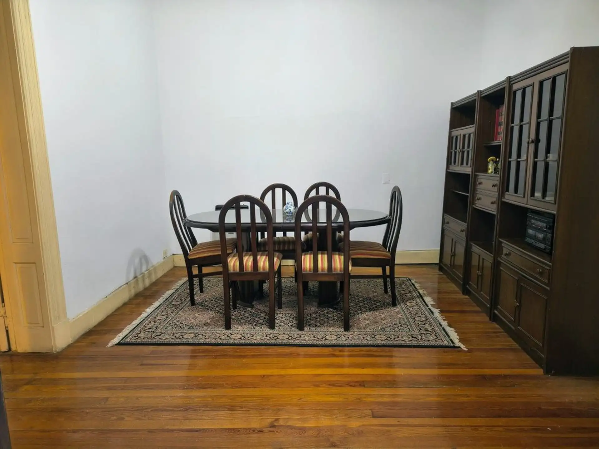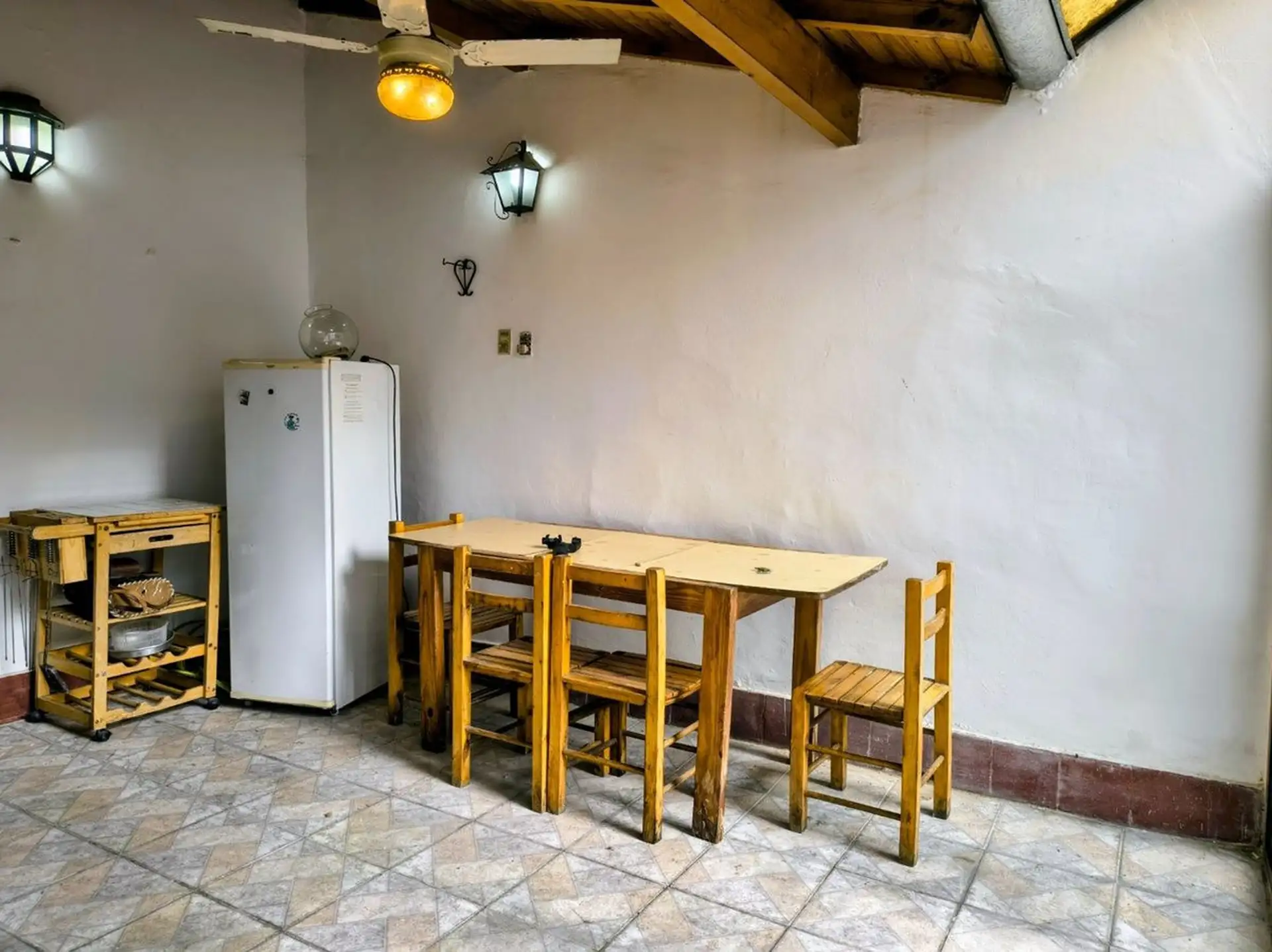 Unidade tipo PH para aluguel em Buenos Aires, entre Almagro e Balvanera, mobiliada. Com 277 m² totais, 5 ambientes e 3 dormitórios (1 montado como escritório ou espaço de trabalho). Possui sala, sala de jantar, banheiro, lavabo, galeria, área de serviço e depósito. Inclui camas, guarda-roupas (placards), mesas, cadeiras, escrivaninhas, ar-condicionado, 2 geladeiras, TV, lavadora (lavarropas) e ventiladores de teto. O imóvel tem pátio-terraço descoberto de 116 m², além de quiosque/fechamento com