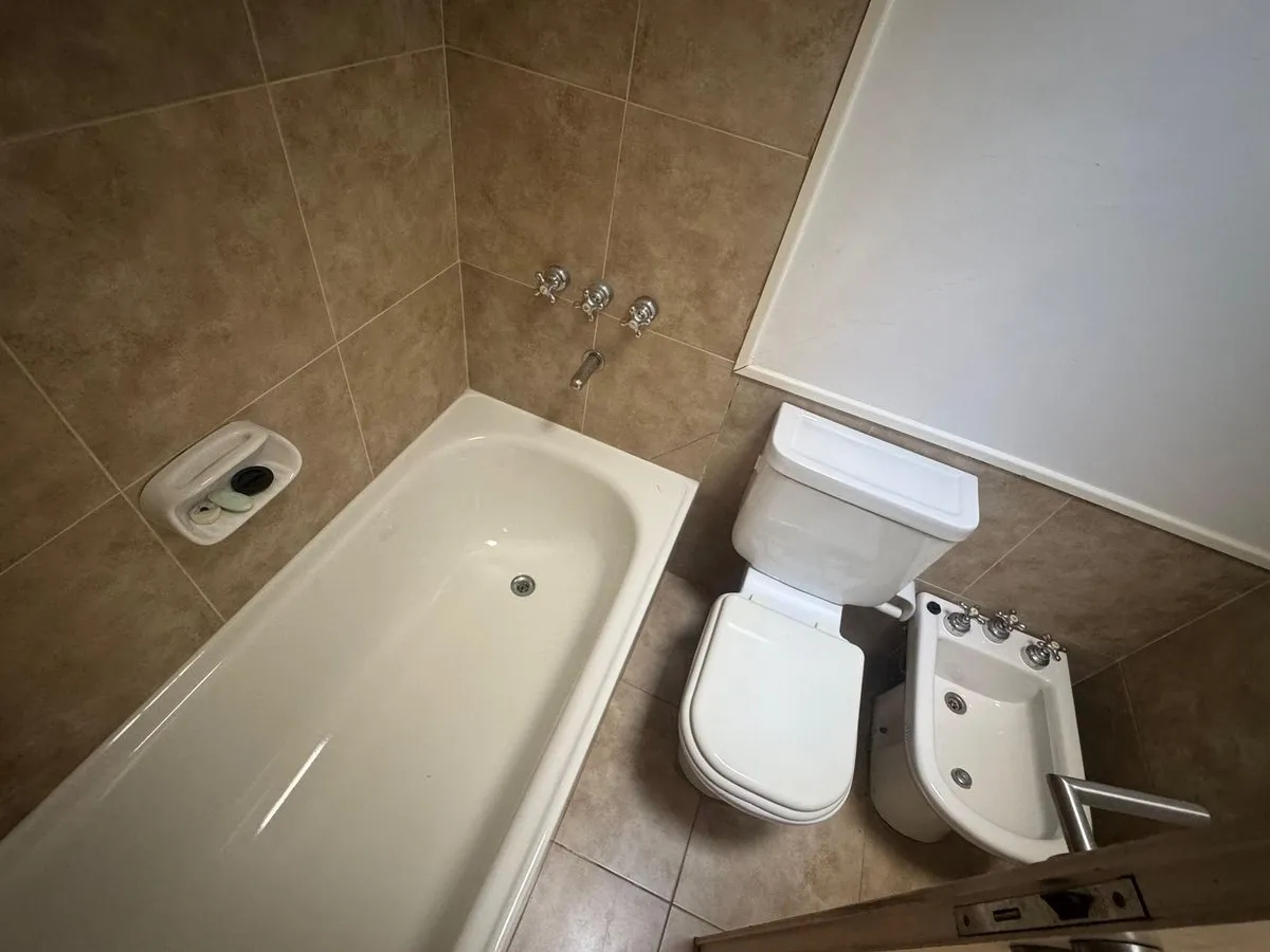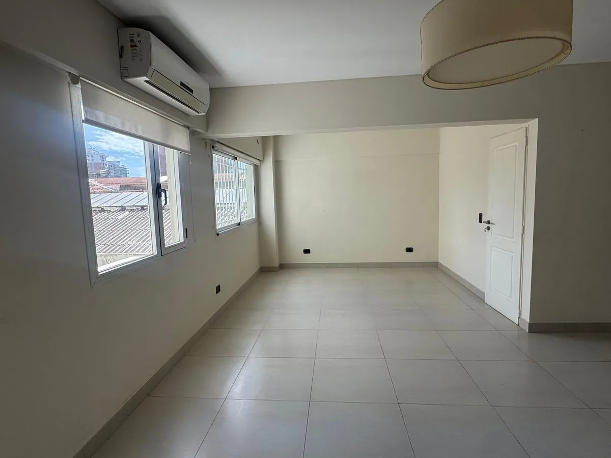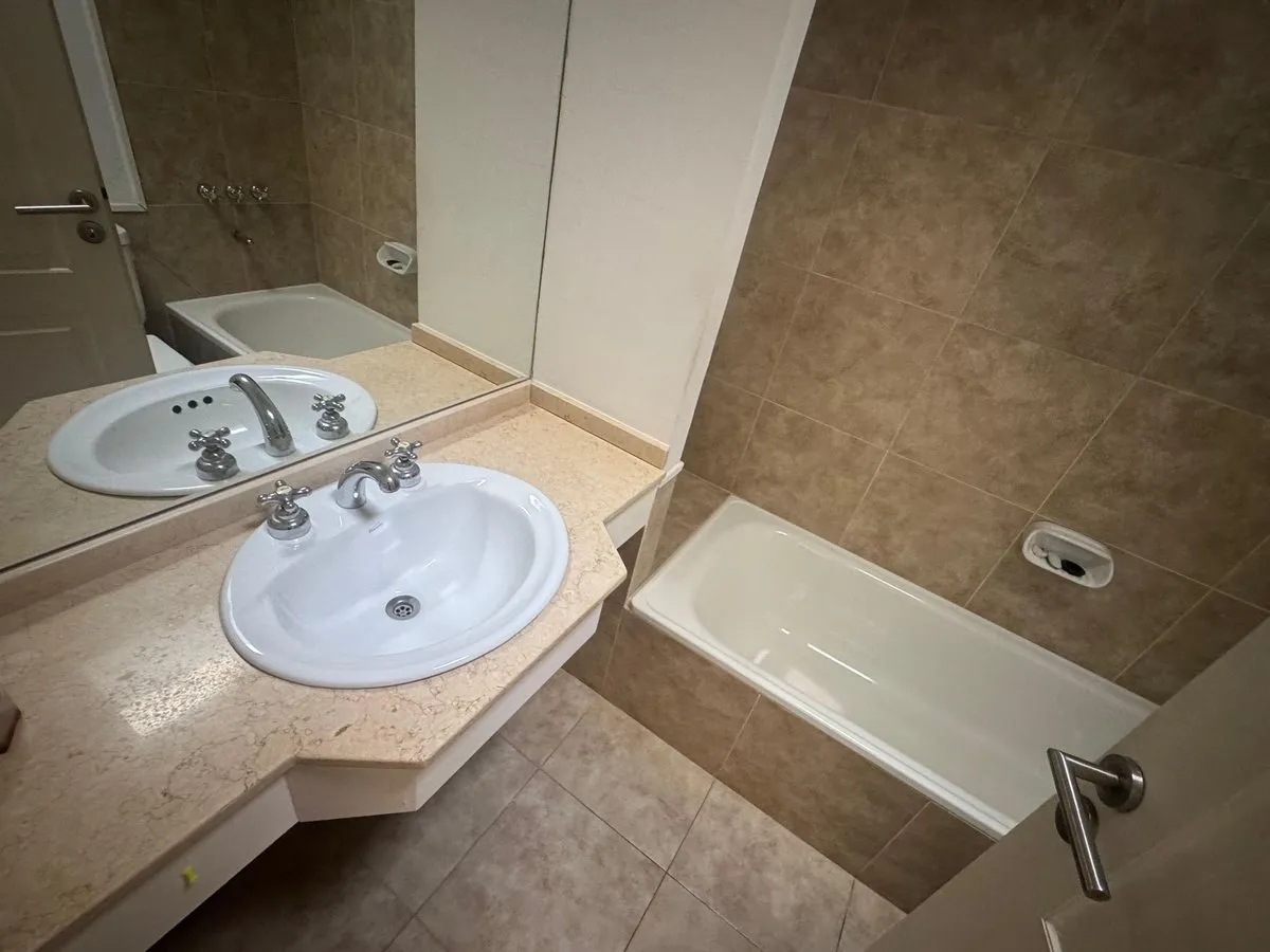 Apartamento de 5 ambientes em Beccar, com 138 m² no 2º andar de um edifício de 9 andares, orientação norte. São 2 apartamentos de 3 ambientes unidos, com 126 m² cobertos e varanda de 12 m² nos fundos. Há 2 salas (uma em formato “L”), 3 quartos, 2 banheiros completos com banheira e 2 lavabos. Possui 2 cozinhas com acesso à varanda e área de lavanderia integrada. O piso é de porcelanato, com vista para os fundos e ventilação leste-nordeste (NE). Banheiros com aquecimento por piso elétrico e os dem