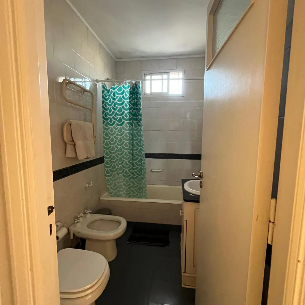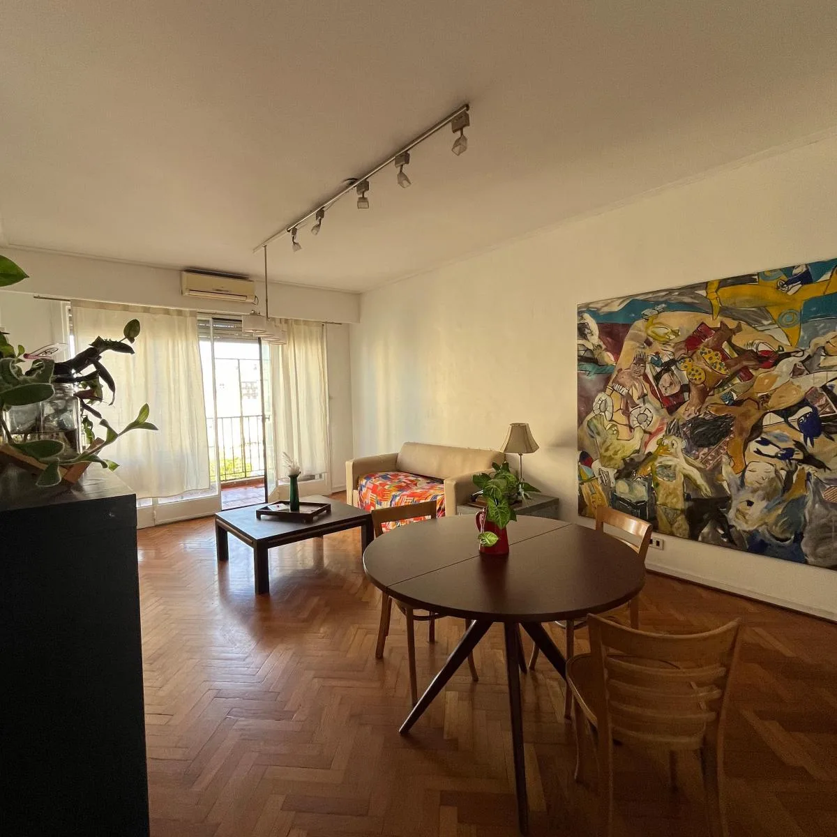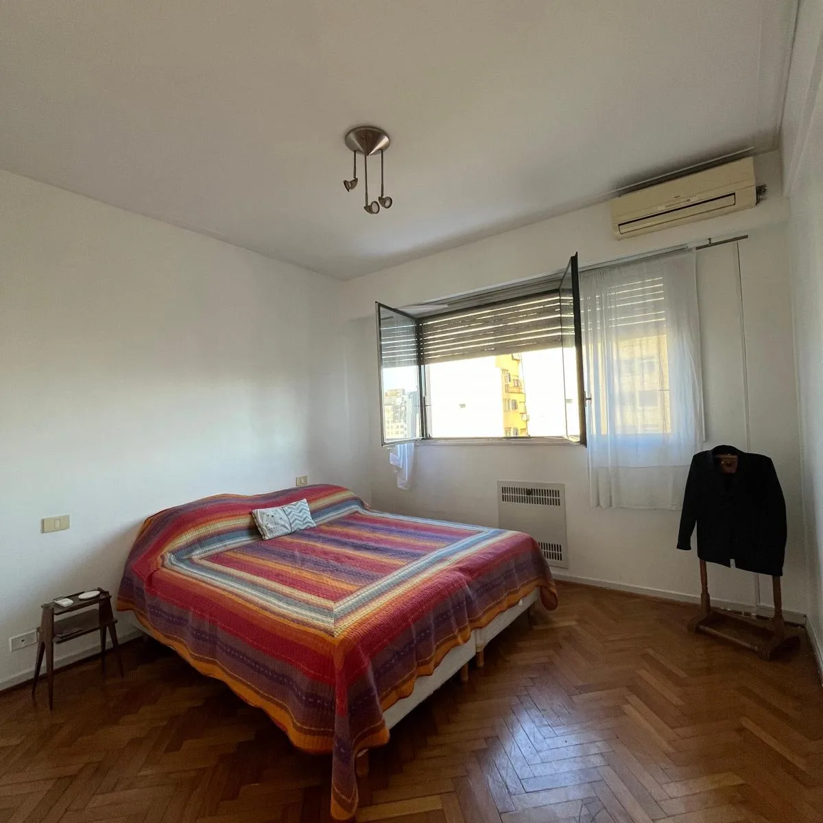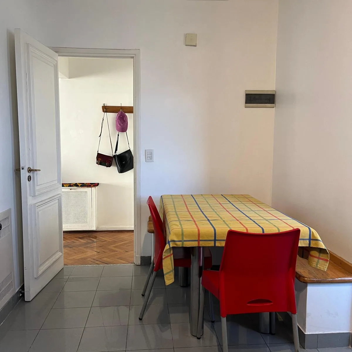 Apartamento mobiliado de 110 m² em Constitución, com 3 dormitórios e varanda aberta. Conta com sala de estar e sala de jantar, dois dormitórios com armários e um terceiro ambiente usado como escritório ou quarto adicional, além de banheiro completo com banheira e lavabo com ducha. A cozinha tem espaço para refeições e lavanderia independente ampla; inclui máquina de lavar, lava-louças, secador de toalhas, cafeteira Nespresso, torradeira e utensílios, além de roupas de cama e toalhas. O imóvel te