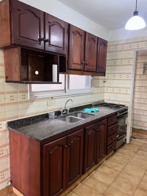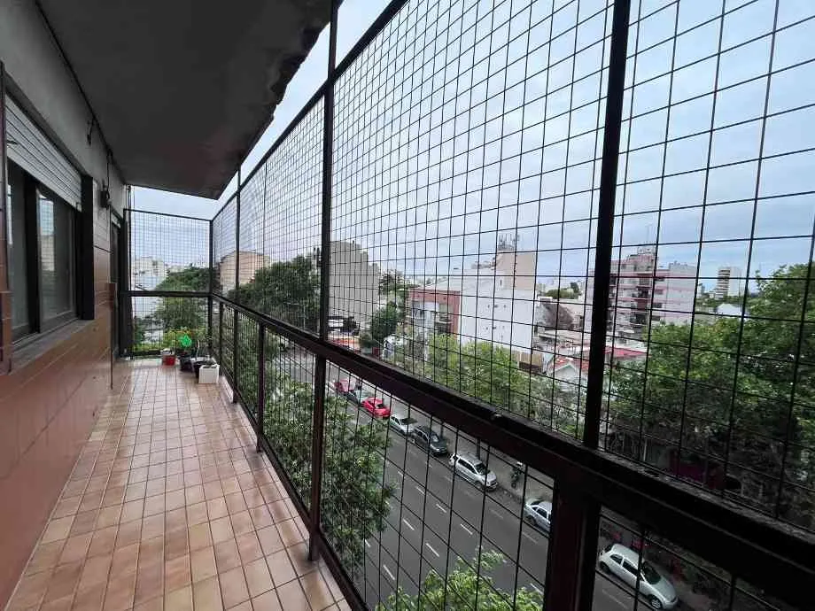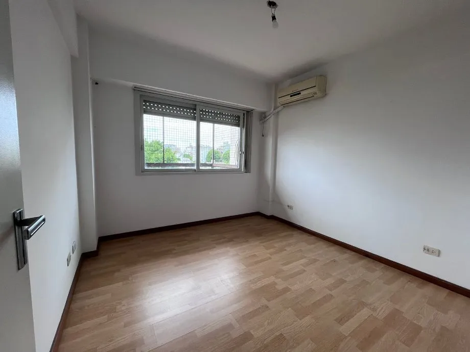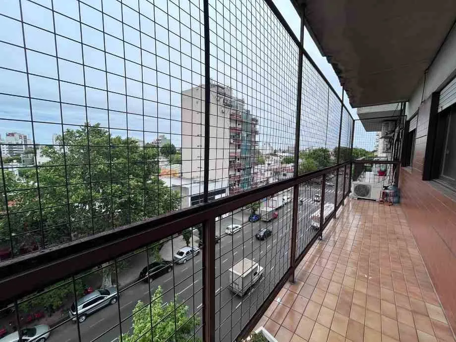Apartamento de 4 ambientes de frente, com amplo balcão corrido, em Floresta. O imóvel tem 3 quartos com armários embutidos, sala de estar e jantar com acesso ao balcão, cozinha independente com área de lavanderia incorporada e 2 banheiros completos. Inclui vaga de garagem coberta no edifício. O condomínio (abril de 2026) é de $325.850. Exigências de entrada: garantia familiar direta e comprovação de renda.
