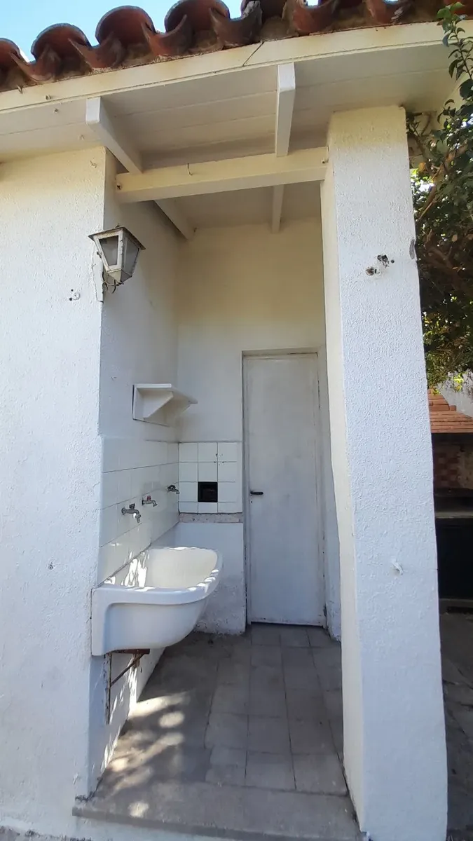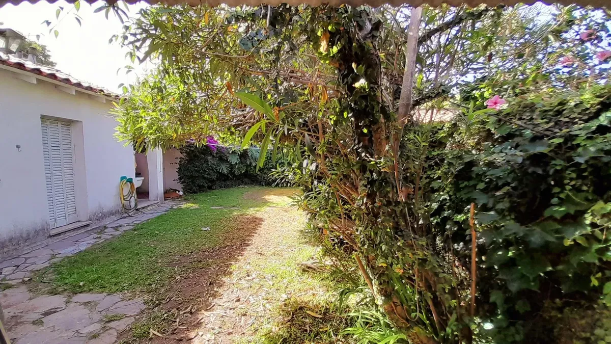 Chalet térreo com 3 dormitórios, hall de entrada, living com piso de parquet e sala de jantar com acesso a uma galeria. Cozinha, banheiro completo reformado, segundo dormitório com armário, escritório e um pequeno dormitório com saída para o jardim. Possui jardim na frente e nos fundos, galeria e área de churrasco, banheiro de serviço, depósito/ quarto de ferramentas e vaga de garagem descoberta para vários carros com portão automatizado e acesso lateral. Aceita animais e permite uso profissiona