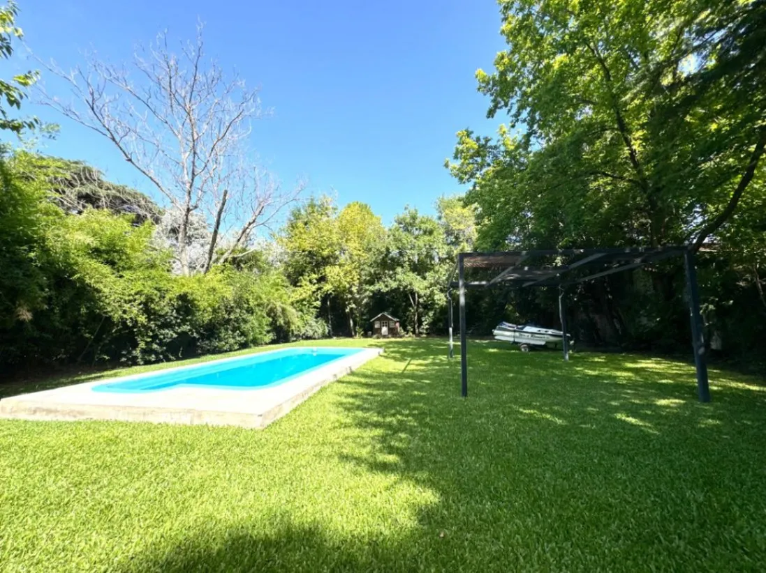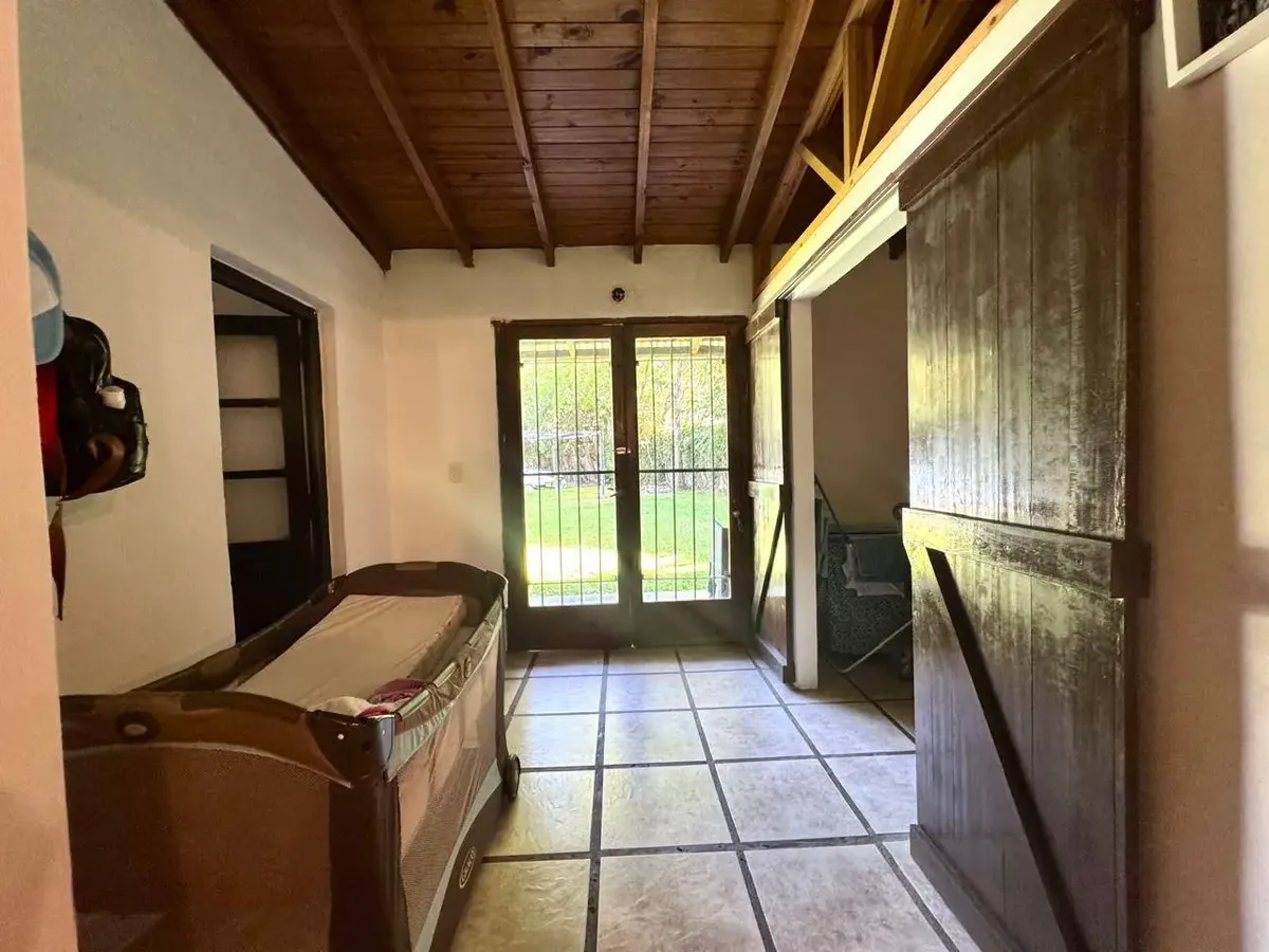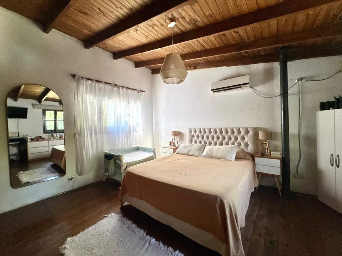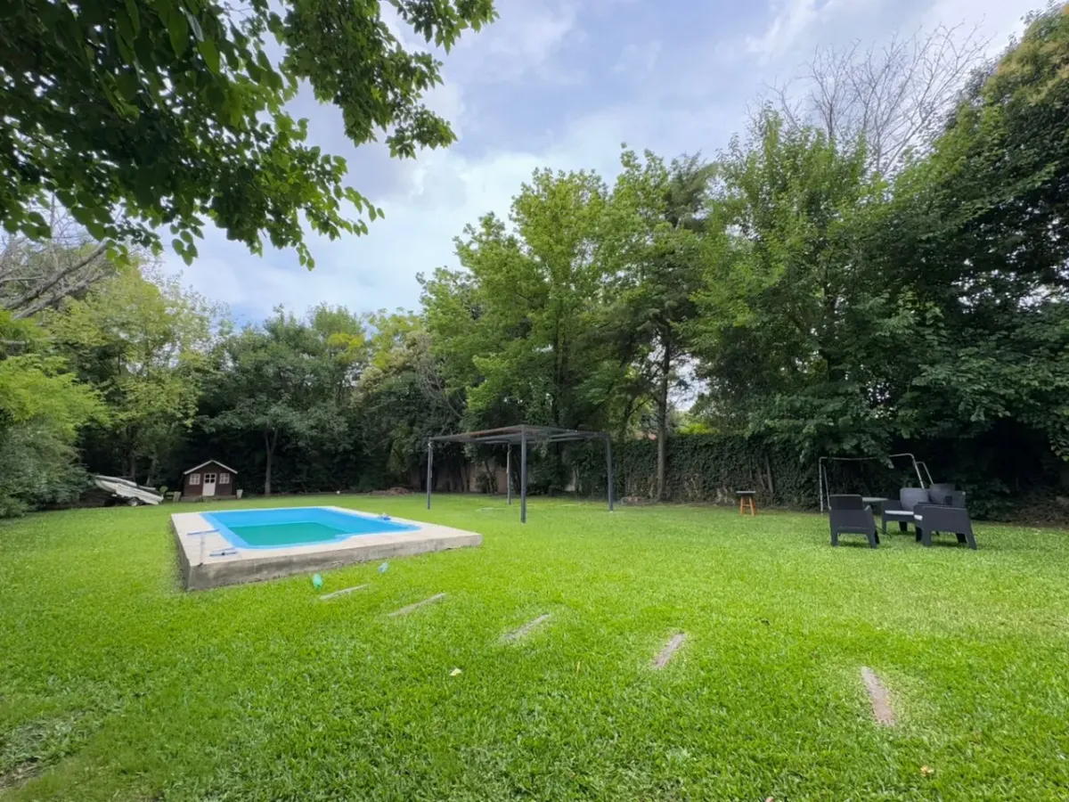 Casa em condomínio em Parque Leloir, Ituzaingó, com 3 dormitórios, 4 ambientes e 13 anos. Possui 2 dormitórios no térreo, 1 banheiro completo, cozinha com área de refeições e living; no piso superior, escritório, 1 banheiro e um terceiro dormitório. O terreno tem 1086 m², com jardim, piscina e área de churrasco, além de várias vagas de garagem descobertas. Inclui lavanderia coberta, gás natural e WiFi; exige garantia por propriedade ou seguro de fiança.