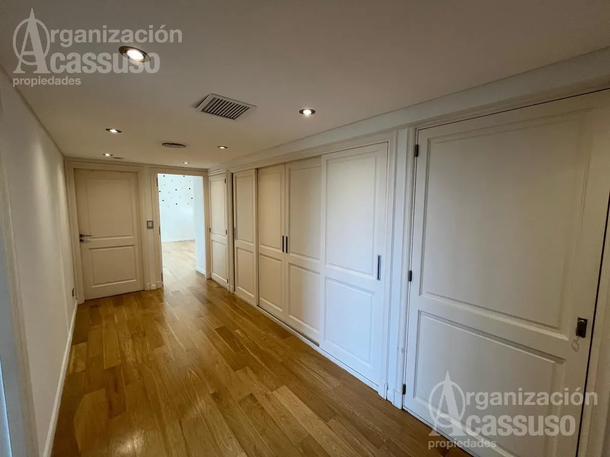 Apartamento no Torre Amalfi, em La Lucila, com vista para o rio e para a cidade. O imóvel dispõe de hall de recepção com palier privativo, toilette, amplo living e sala de jantar setorizados, 3 suítes (master suite com closet e mais 2 suítes junior), hidromassagem e varandas em todos os ambientes. Cozinha com área de refeições diária com geladeira e lava-louças; área de serviço independente com máquina de lavar. Inclui dependência de serviço, pisos de madeira, ar-condicionado central frio/calor,