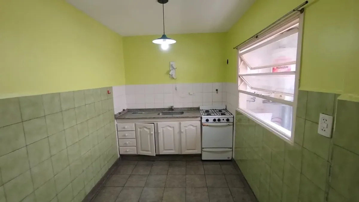 Apartamento de 4 ambientes em Barrio Alas, Ciudad Evita, em rua principal. Possui sala de estar e jantar com varanda, 3 dormitórios com armários embutidos e banheiro completo. Cozinha com área para refeições, com armário de base e fogão, além de área de serviço com tanque e termoaquecedor. Não é permitido animais de estimação.