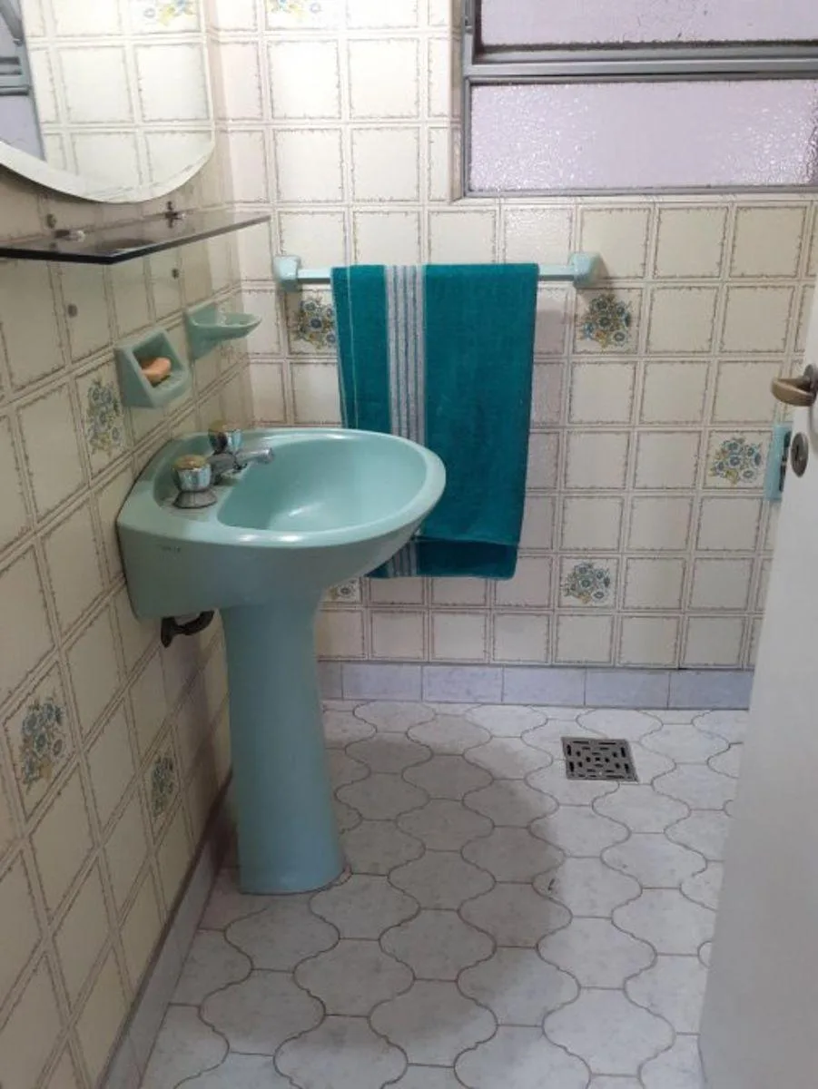 Unidade em PH no 1º andar acessada por escada, com jardim de inverno coberto e pátio coberto, além de área com piscina para lavar. Possui cozinha com armários sob a bancada, nicho/dispensa, e fogão com forno embutido, com piso em mosaico. A área social inclui living e sala de jantar (4 x 3,5 m) com piso em mosaico e corredor de distribuição. Há 2 banheiros azulejados (2 x 2 m) com box de ducha, pia/vaso sanitário e bidê. O dormitório principal (4 x 4 m) tem piso em parquet, baú/depósito e armári