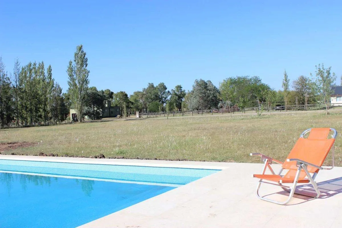Casa nova mobiliada em um bairro fechado de chacras (Estancia Las Lilas), a 15 km de Luján, com 142 m² em um terreno de 10.000 m². São 2 dormitórios, além de mezanino com 1 cama, e 2 banheiros (um deles em suíte). Cozinha aberta com ilha e sala de jantar; galeria coberta com área de churrasco. Piscina de 9 x 4 m com revestimento e solarium, aquecimento por radiadores e salamandra a lenha, ventiladores de teto e ar-condicionado frio/calor nos dormitórios; máquina de lavar, aquecedor de água (term