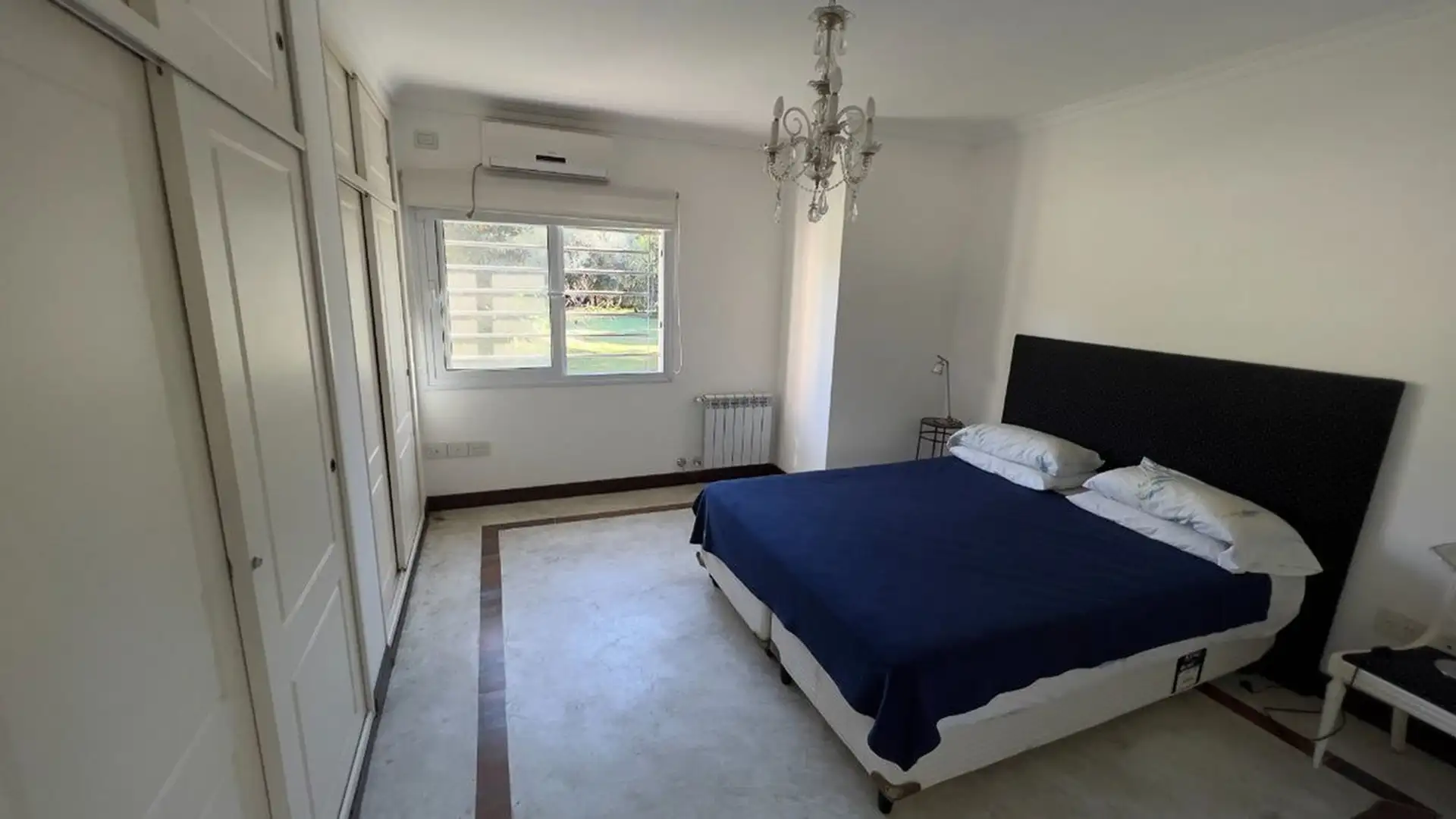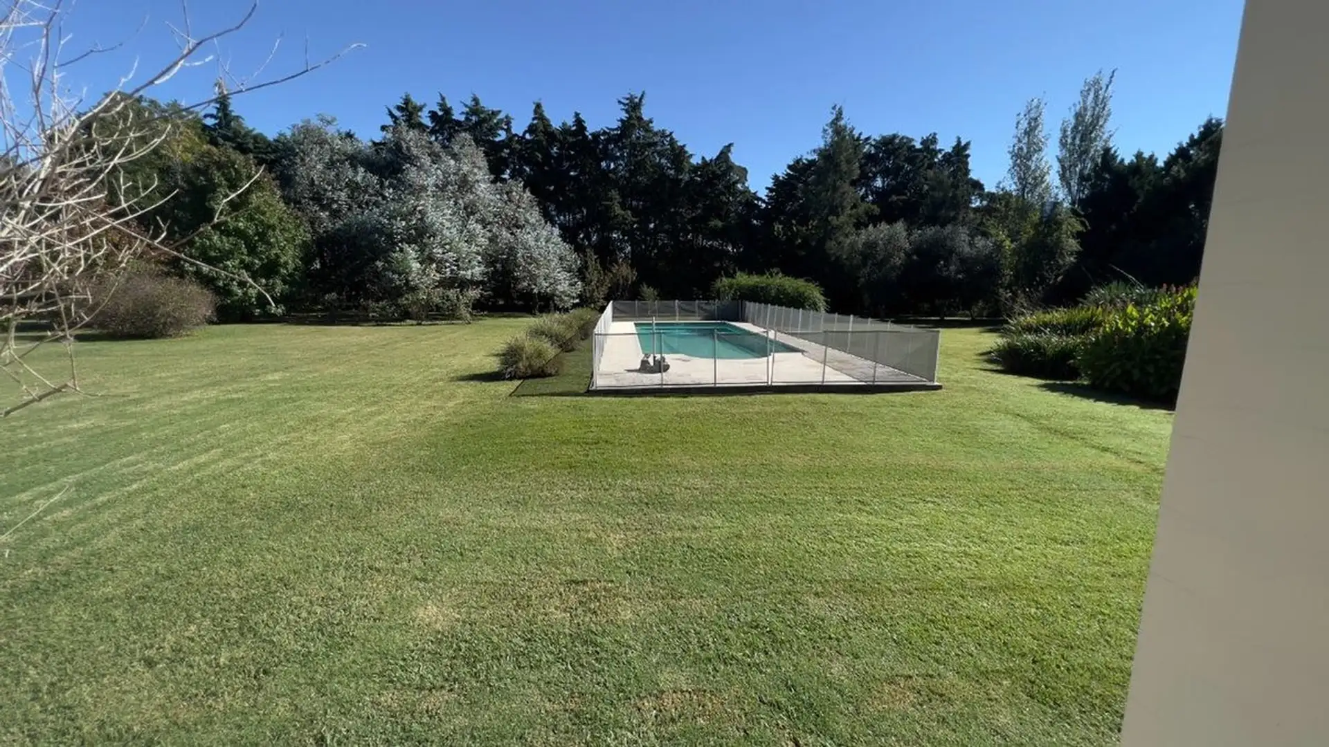 Casa mobiliada para alugar em Chacras de Open Door, Luján, com 4 ambientes em um lote de 4500 m². Desenvolvida em uma única planta, com living com lareira e cozinha com espaço para refeições diárias, além de lavabo de recepção. Na área íntima há 2 dormitórios com armários e 1 banheiro completo com hidromassagem, além de dependência de serviço com banheiro próprio. No exterior, há galeria semicoberta com área de churrasco, jardim com irrigação automatizada e piscina de grande porte, além de alarm