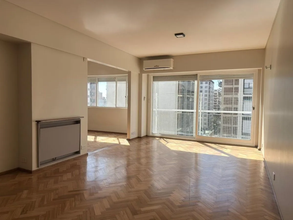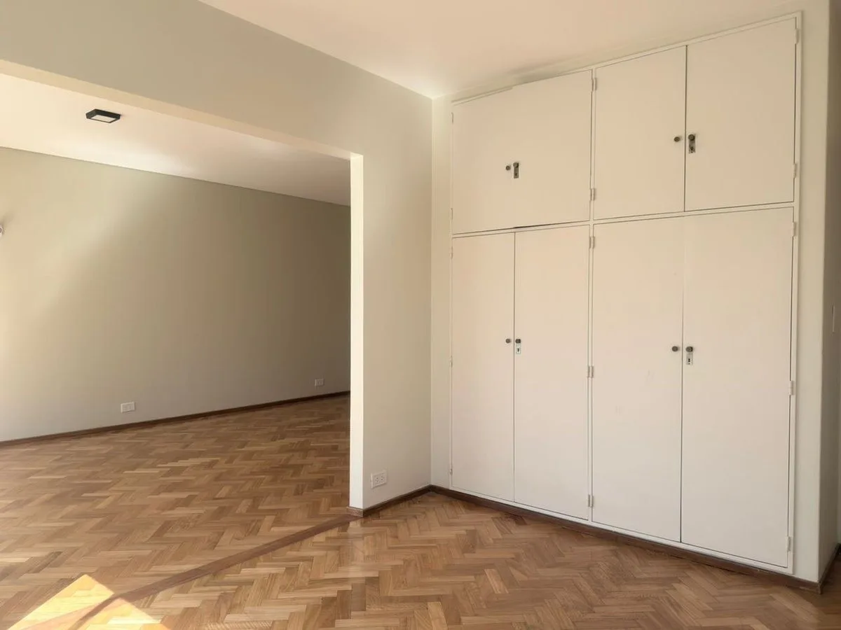 Apartamento de 5 ambientes para alugar em Martínez, sobre Av. Santa Fe, no centro. A unidade tem orientação nordeste e inclui sala de estar e jantar, cozinha independente, lavadero separado, quatro quartos com armários novos, banheiro completo, lavabo com ducha e banheiro de serviço. Há piso de parquet plastificado, persianas elétricas, três aparelhos de ar-condicionado frio/quente e varanda no nordeste. O prédio tem sistema de segurança com totem. Contrato de 24 meses com reajuste trimestral pe