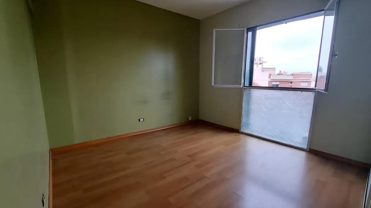 Apartamento de 4 ambientes com 85 m², no 3º andar de frente, orientação leste, em bom estado. Tem 3 dormitórios e 1 banheiro completo. Conta com living-comedor de 6,40 x 3,20 com aquecedor de 5.000 calorias e ar-condicionado, cozinha-comedor de 5,05 x 2,05 com janela grande e área de lavanderia coberta de 1,40 x 2,10 com aquecedor a gás, além de cômodo de lavadora e armário auxiliar. O prédio faz parte de um complexo com três edifícios de 12 andares, 4 unidades por andar, com 2 elevadores, acess
