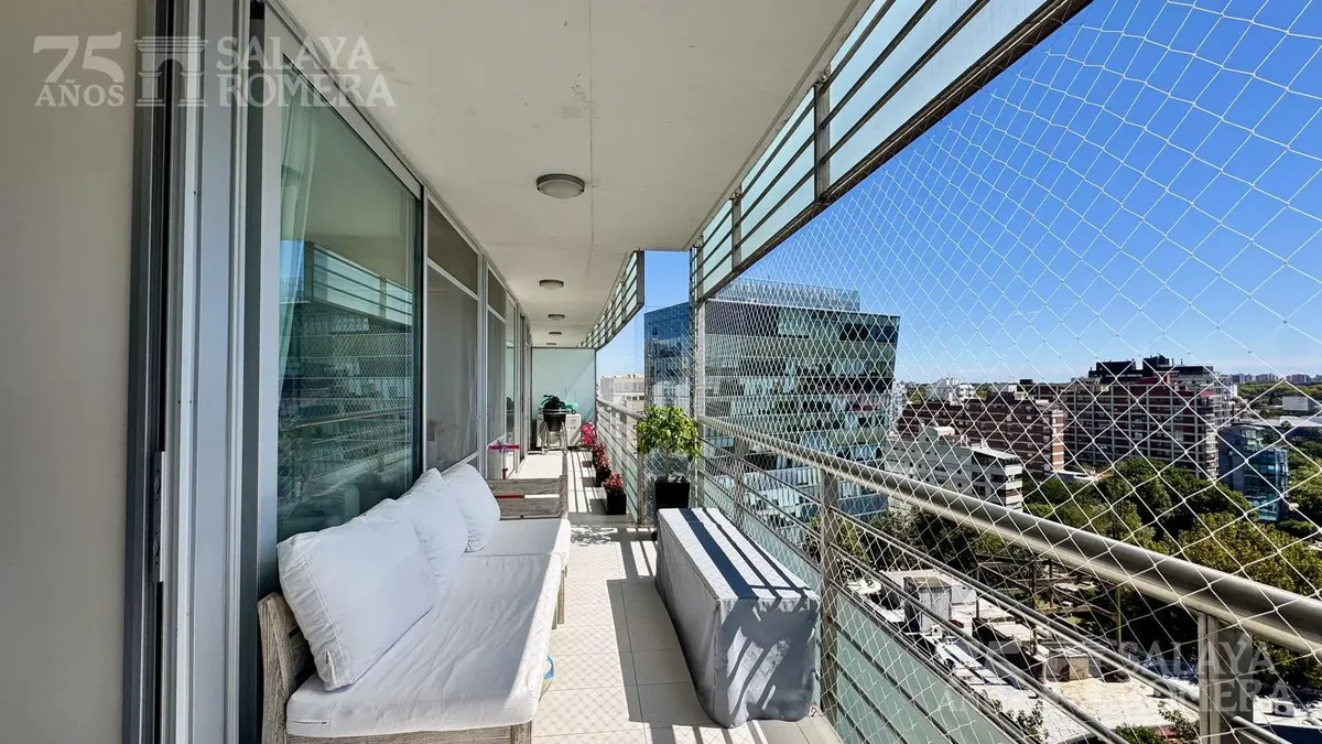 Apartamento de quatro ambientes no Regatta Olivos, dentro do Puerto de Olivos, em frente ao Yacht Club e a 100 metros de Av. del Libertador. Fica no 12º andar, com 125 m² totais, varanda tipo terraço voltada para o norte e vista para o rio; todos os ambientes têm acesso à varanda. Há sala de estar e jantar com saída para o exterior, cozinha integrada com bancada alongada e lavanderia independente. A unidade tem 3 dormitórios, sendo 1 suíte com closet, 2 banheiros completos e 1 lavabo. O aquecime