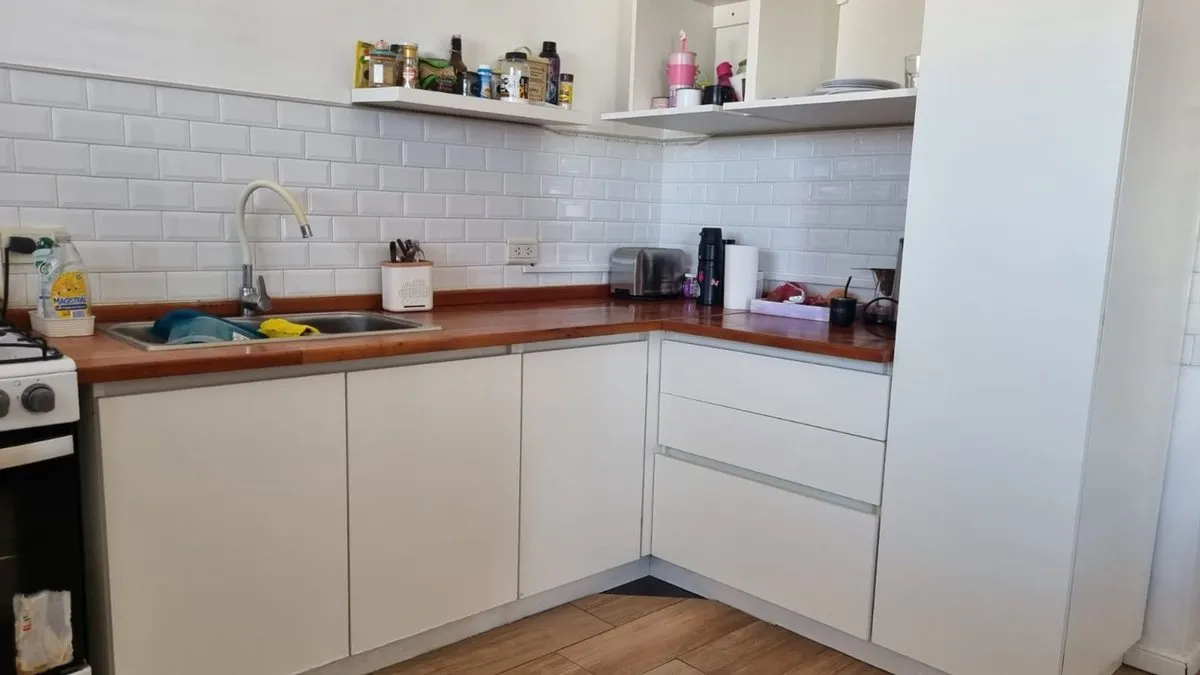 Apartamento de 4 ambientes em Quilmes Centro, com 3 dormitórios com armários e cozinha com área de refeições integrada. Tem sala e lavabo de recepção, além de 1 banheiro completo. O imóvel conta com varanda na sala e varanda em um dos quartos, e inclui vaga de garagem.