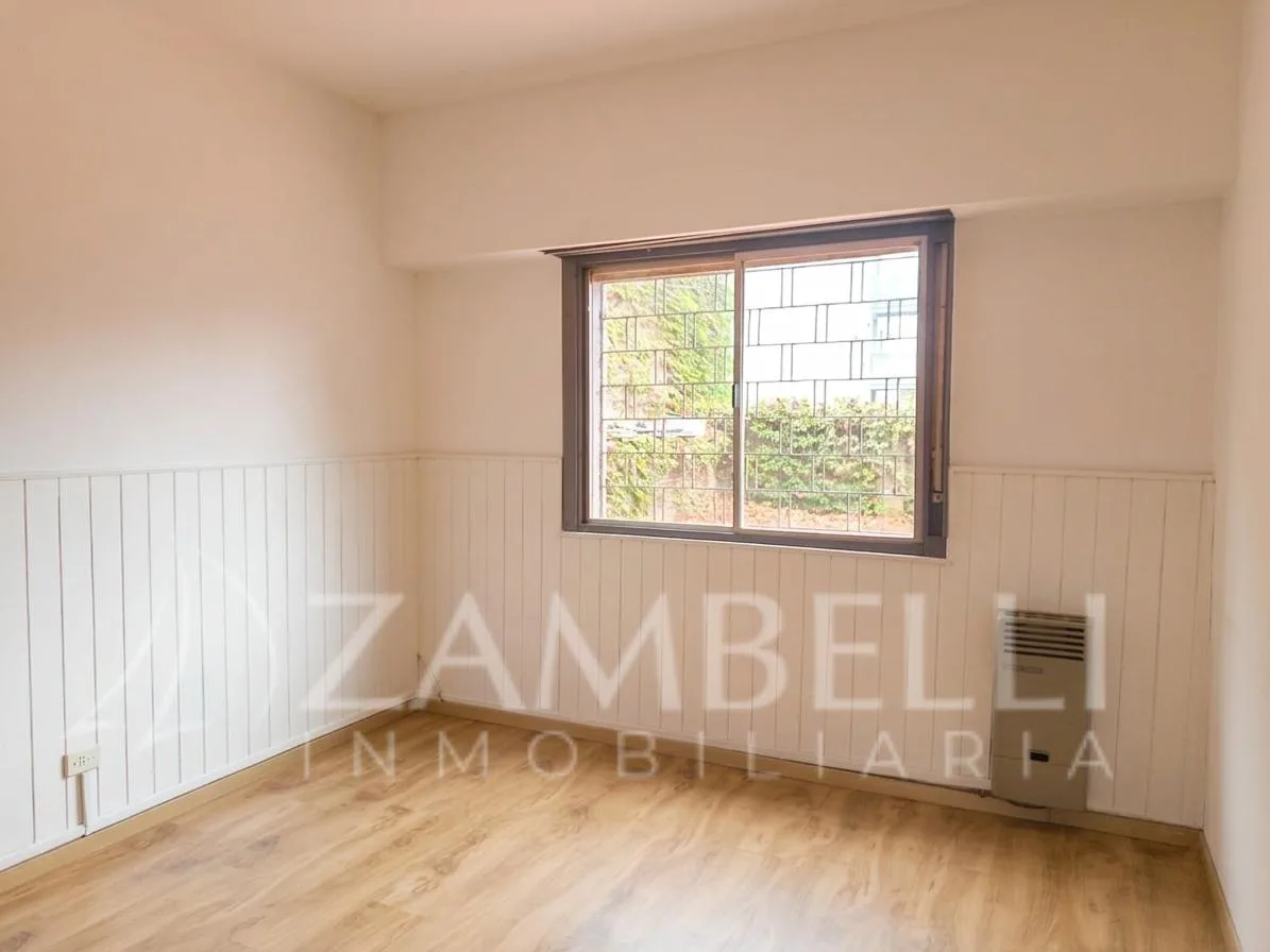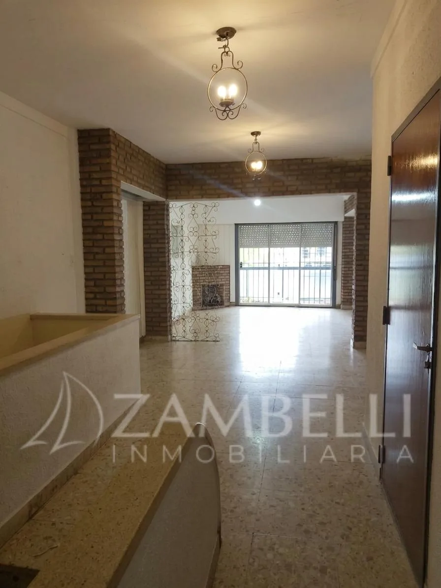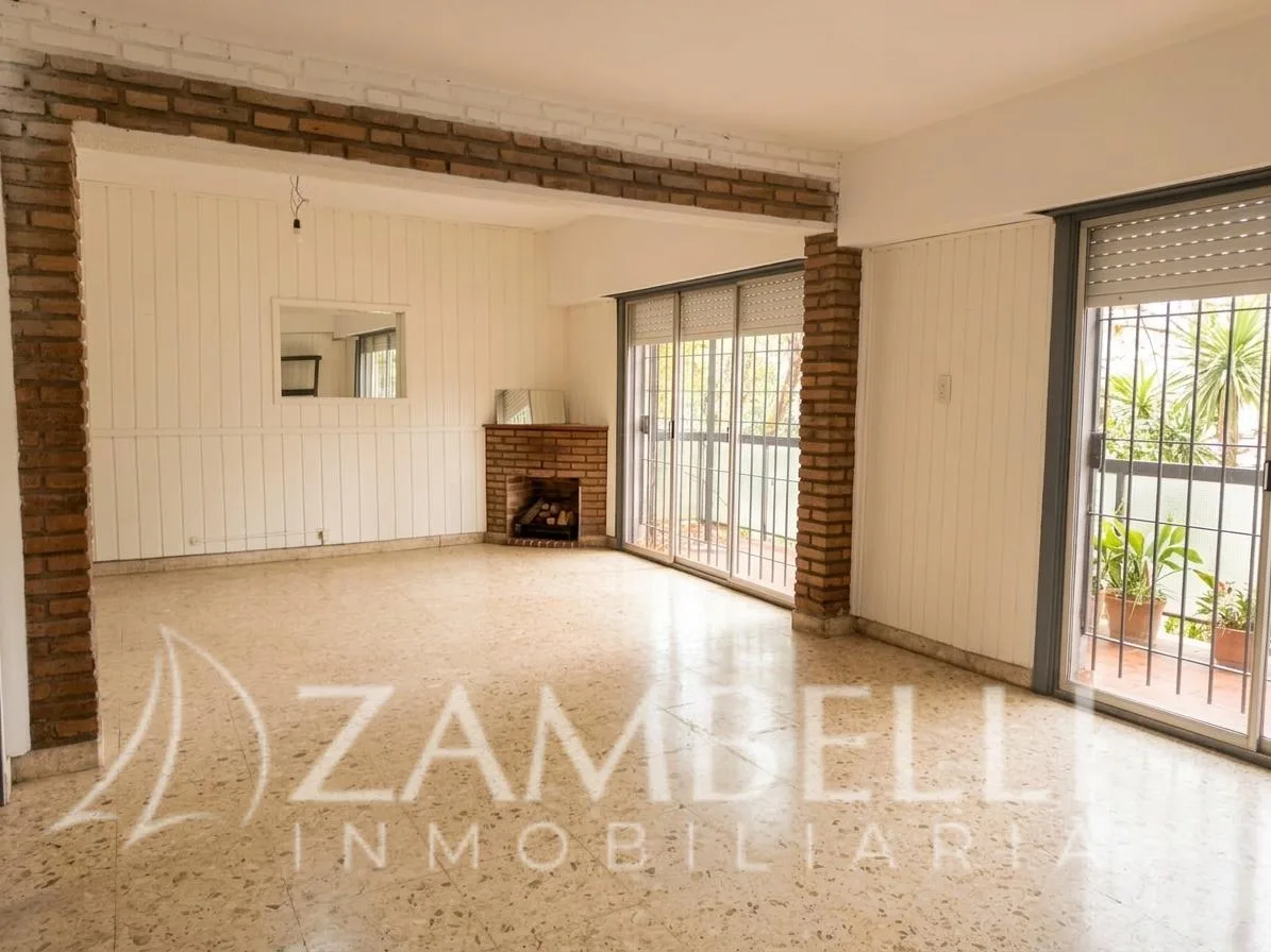 Apartamento de 4 ambientes no 1º andar, sem elevador, com acesso por escadas na rua Lavalle a 600, em San Fernando. Possui 3 dormitórios, banheiro completo e toilette, além de armários do piso ao teto nos quartos. Inclui pátio interno e uma grande terraço privativo. Há piso de madeira flutuante nos dormitórios e revestimento de madeira branca nas paredes, com divisória no living e na sala de jantar.