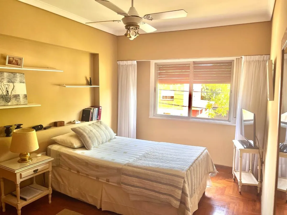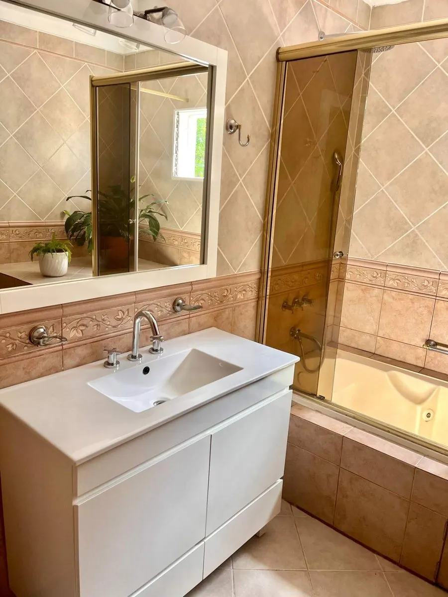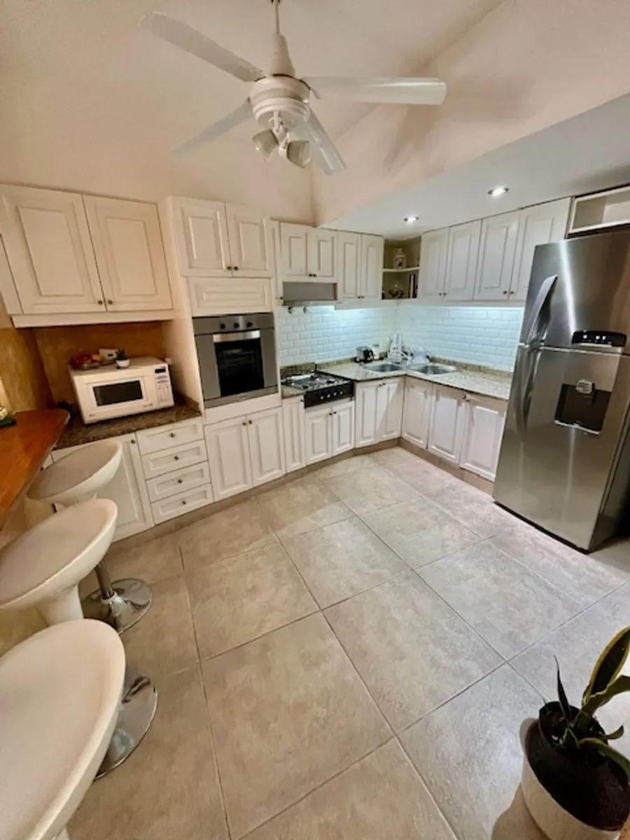 PH de 5 ambientes para aluguel em San Fernando, com 150 m² cobertos em 2 plantas e entrada independente, sem mobília. Possui terraço, garagem e área de churrasco (quincho). Inclui 70 m² de sótão (guardilla) ou possível playroom. No térreo há hall de recepção, living com janelão para a frente, cozinha integrada com barra, pátio pequeno coberto e banheiro completo remodelado, além de vaga com portão automatizado. No andar superior há 4 dormitórios (3 com armários embutidos grandes), banheiro compl
