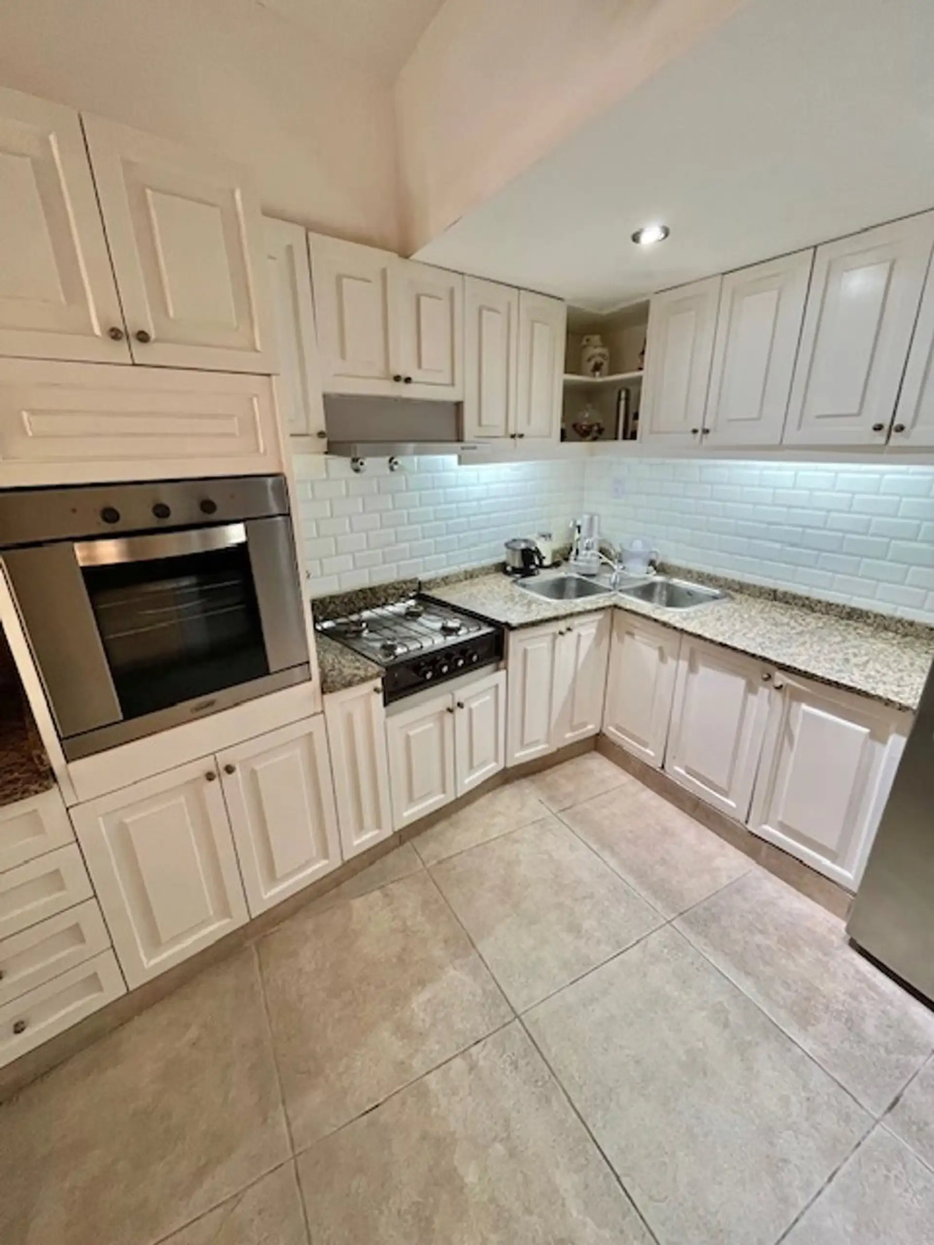 PH de 5 ambientes para locação em San Fernando, com entrada independente, 150 m² cobertos em 2 plantas e 70 m² de guardilla (possível playroom). Sem mobília. No térreo: hall, sala de jantar com janela para a frente, cozinha integrada com barra e banheiro completo reformado, além de pátio coberto. Inclui vaga de garagem com portão automatizado. No andar superior: 4 dormitórios com amplos armários em 3 deles, banheiro reformado com box e ventilação natural, área de churrasco com saída para o terra