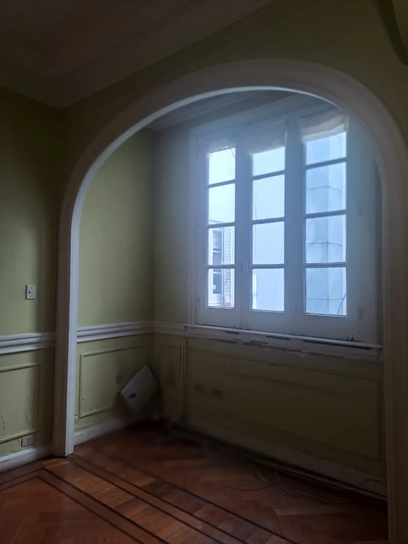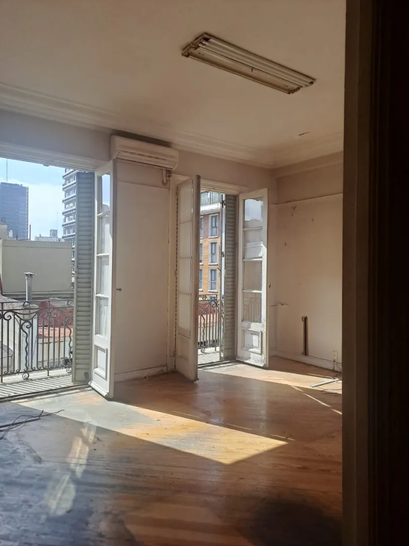 Apartamento com três dormitórios, voltado para uso profissional, na esquina das ruas Florida e Tucumán. Tem grandes áreas, pé-direito alto e pisos de parquet.