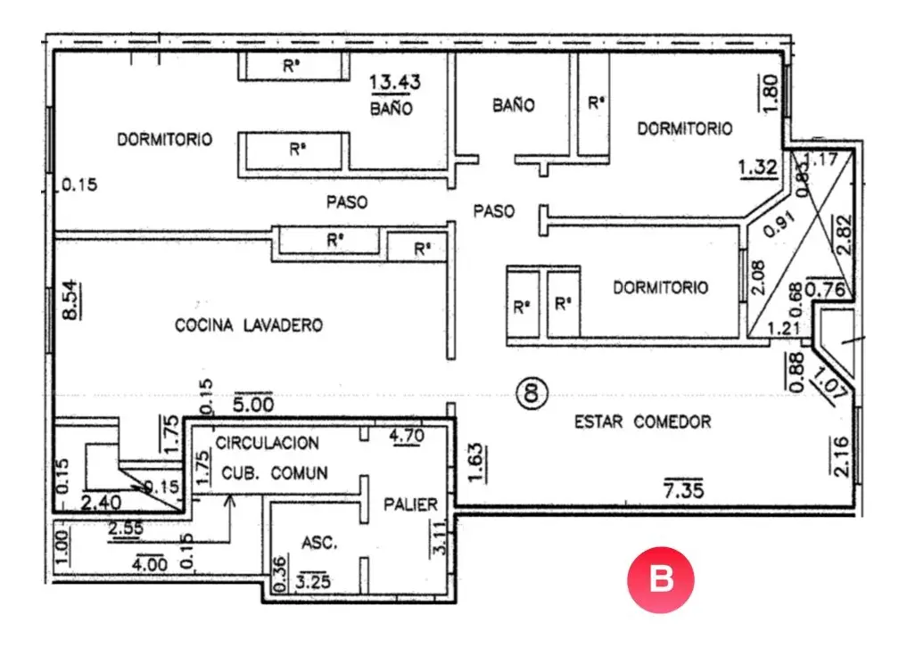 Meio andar de quatro ambientes em Villa Devoto, de frente para a rua, com 3 dormitórios e dupla entrada (principal e de serviço). Sala de estar e jantar 7,44 x 3,10 com saída para varanda frontal, piso em porcelanato; cozinha com área de jantar 5,60 x 2,94 com porcelanato. Suíte 3,50 x 3,50 com closet e banheiro completo com hidromassagem; dormitório 3,19 x 2,32 com piso em parquet plastificado, além de lavabo de recepção com box de ducha e lavanderia coberta 3,29 x 1,60. Conta com losa radiante