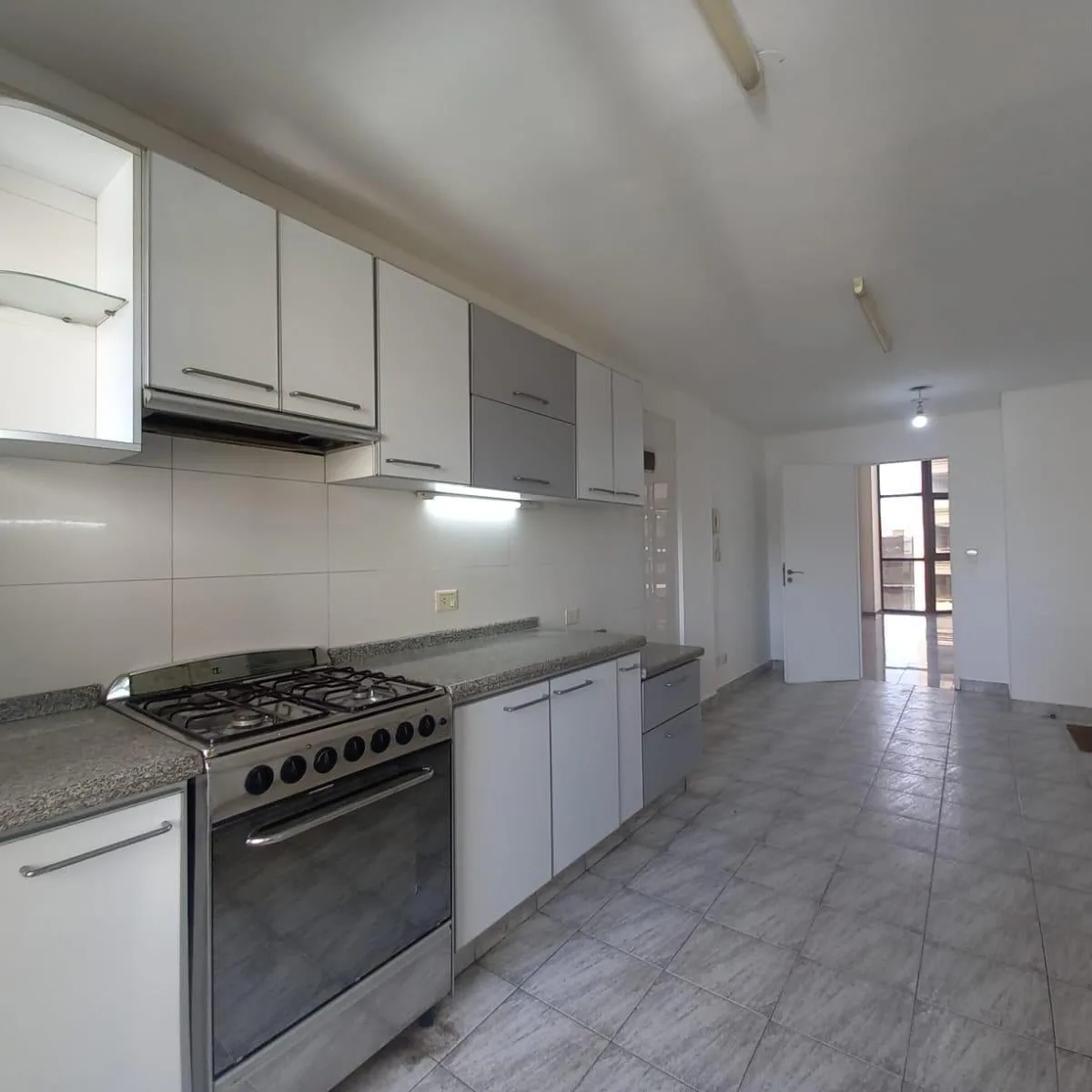 Apartamento duplex com 4 dormitórios no 5º e 6º andar, em Balvanera. O living com sala de jantar tem ar-condicionado e janelas; a cozinha tem espaço para geladeira grande, móveis de armário aéreo e dupla pia com bandeja debaixo. Há lavanderia independente com conexão para máquina de lavar e aquecedor de água com alta recuperação, além de lavabo de recepção. No 1º nível, o 1º dormitório em suíte fica de fundos (contrafrente), com ar-condicionado frio, armário embutido e piso flutuante. No piso su