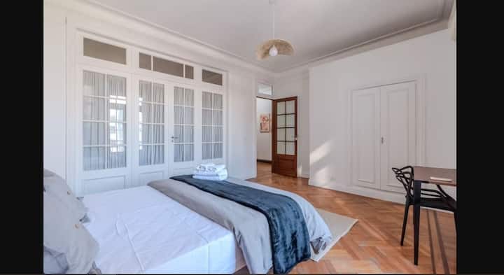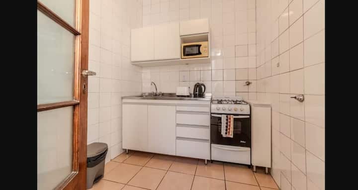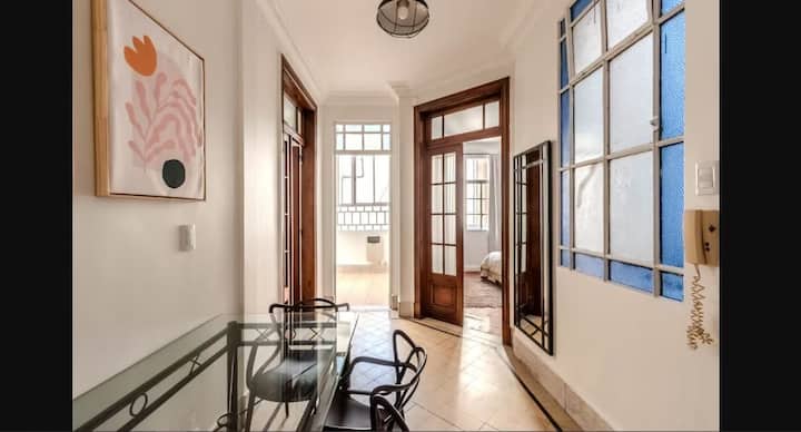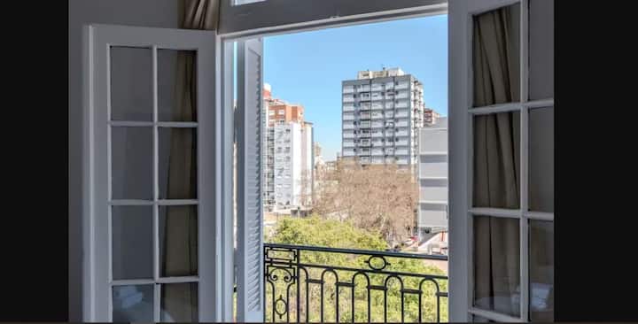 Dois apartamentos no mesmo andar, em Balvanera, com capacidade total para 8 hóspedes. Cada unidade tem cozinha e sala de jantar equipadas, 1 banheiro completo, Smart TV e opções de cama de casal e cama de solteiro, além de 1 quarto; um dos quartos tem uma pequena varanda. A entrada é exclusiva para os dois apartamentos, sem compartilhamento de espaços com outros inquilinos; a localização fica a 1 quadra da Plaza Miserere e da estação Plaza Miserere do metrô (Linha A).