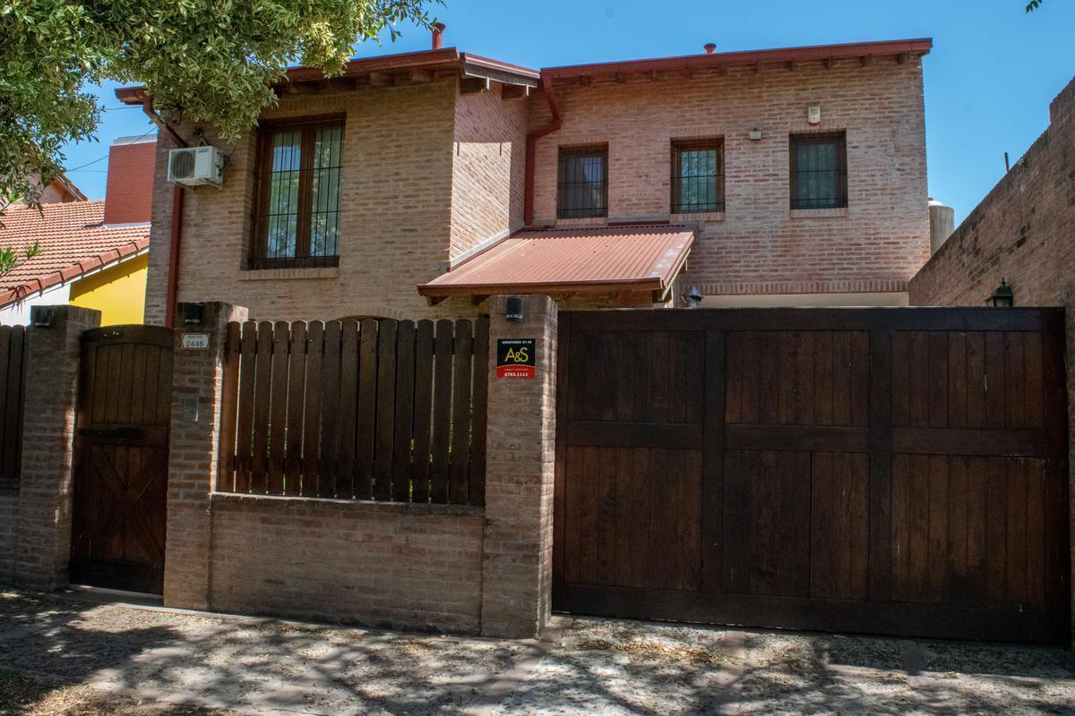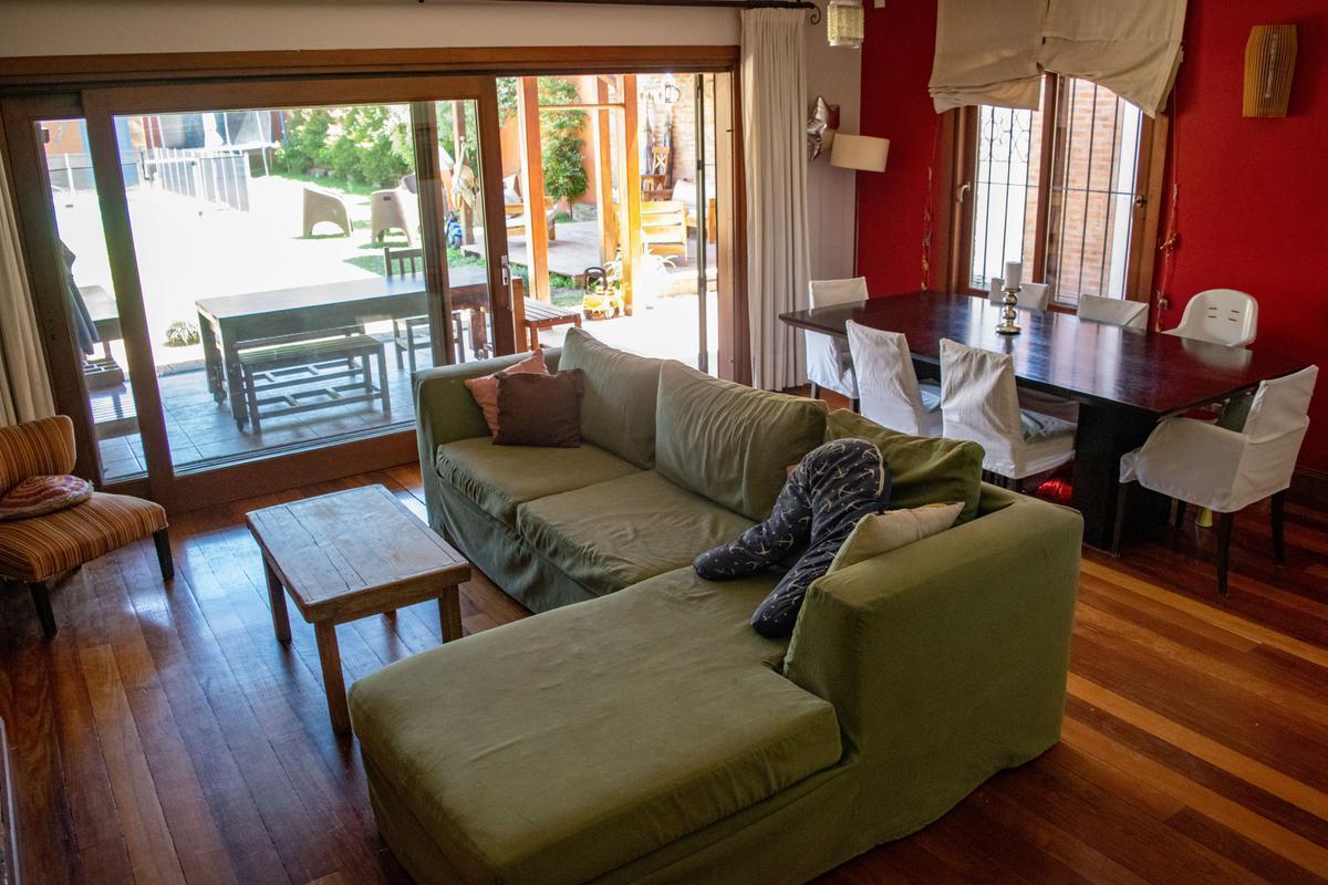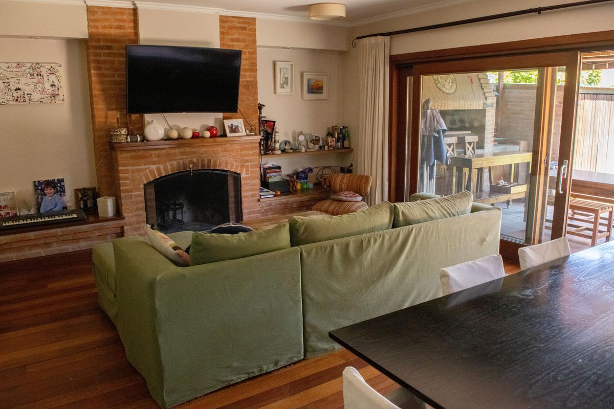 Casa de 6 ambientes para aluguel temporário em Beccar, em 2 plantas. No piso térreo: escritório, living-comedor com lareira a lenha, lavabo, cozinha independente com móveis, área de lavanderia e saída para 3 vagas de garagem cobertas. Há jardim com área de churrasco e galeria/quincho com piscina 10x5 e depósito. No piso superior: 4 dormitórios, sendo o principal em suíte com closet; os outros 3 compartilham 1 banheiro completo, e um deles tem amplo mezanino. Aluguel por 30 dias em janeiro ou fev