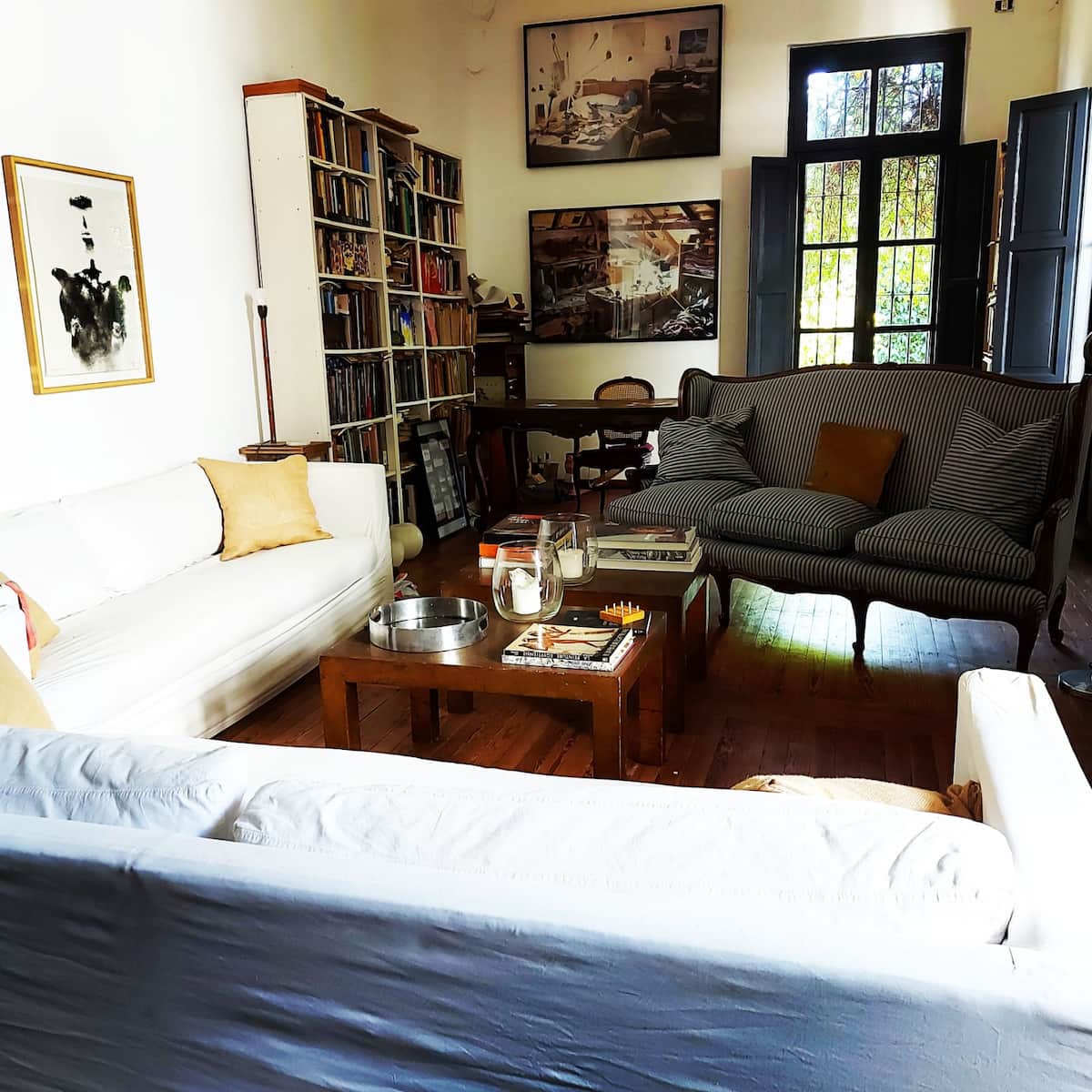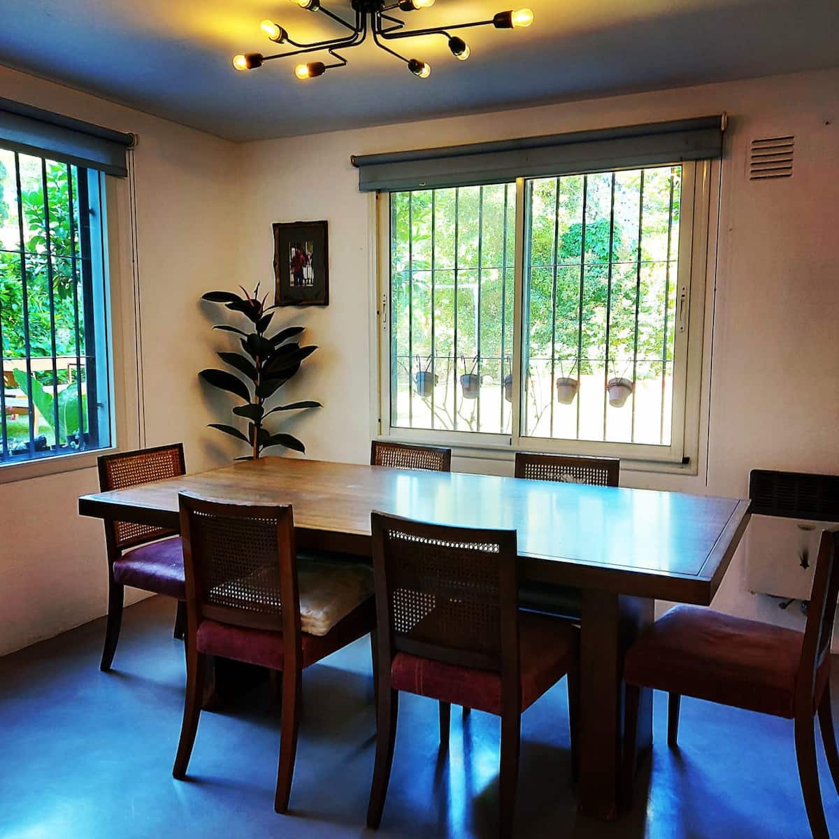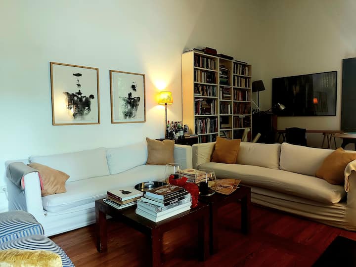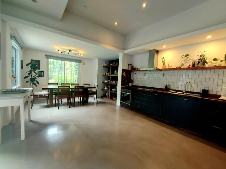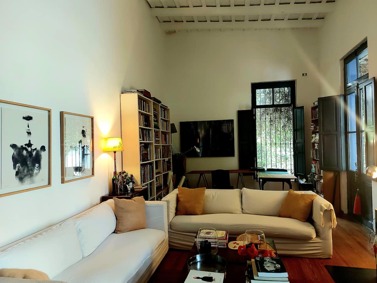 Casa em Beccar com 4 dormitórios. A planta inclui uma sala de estar antiga com pé-direito alto e área integrada de sala de jantar e cozinha. Há piscina e jardim, além de espaços com boa iluminação. O imóvel tem um gato no local.