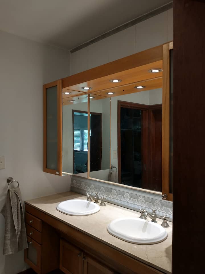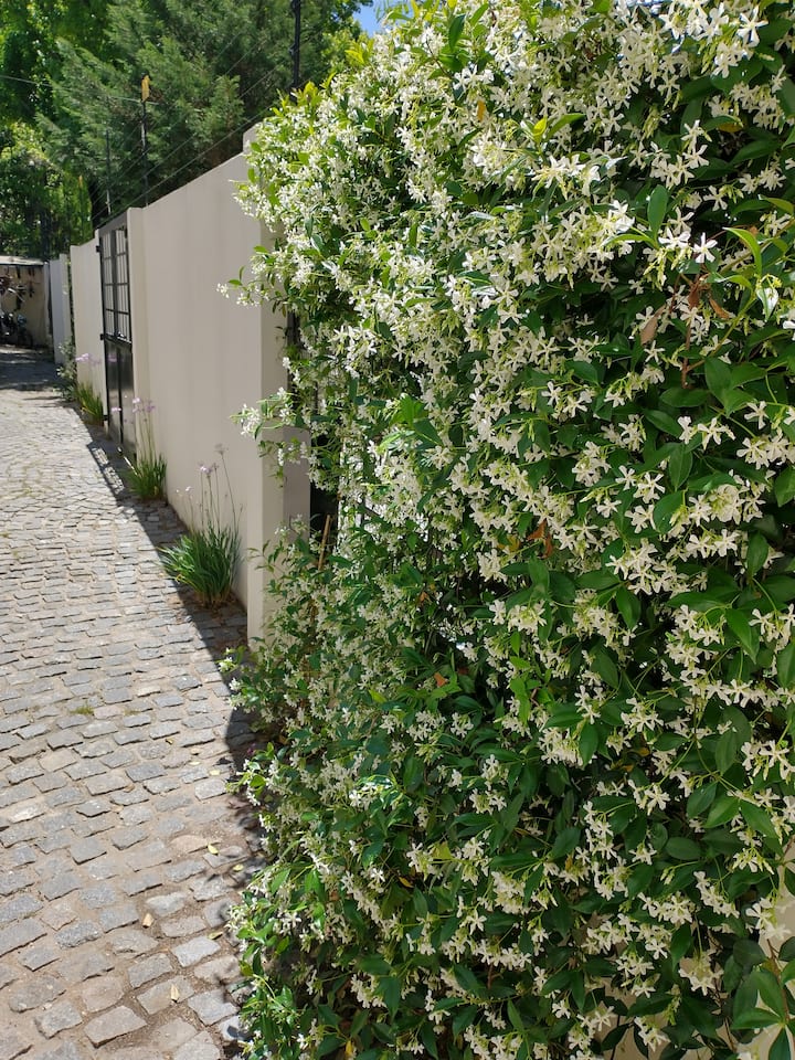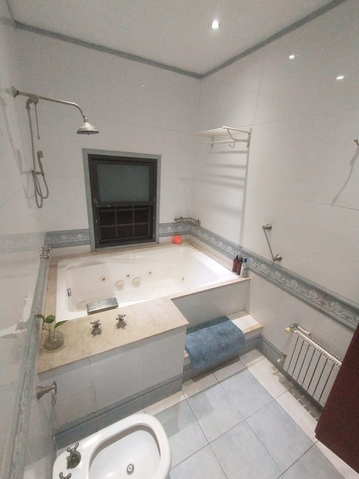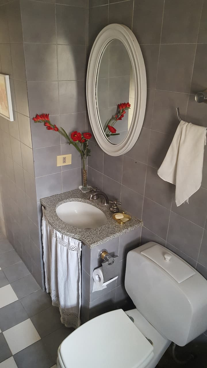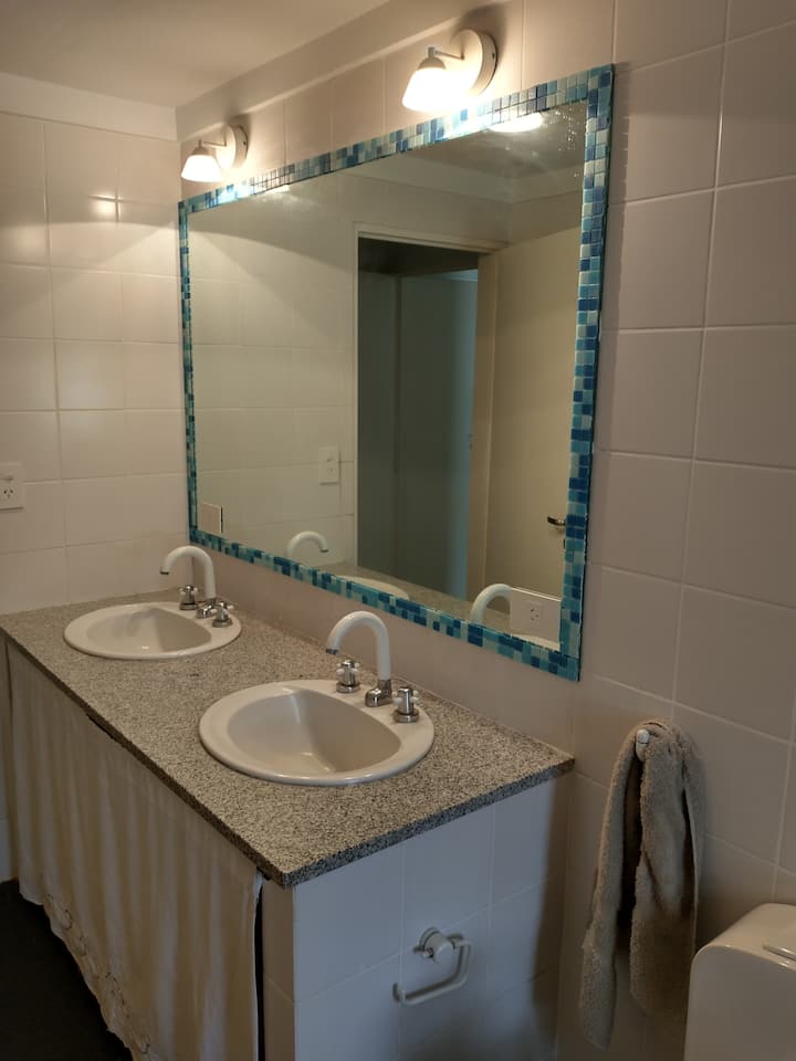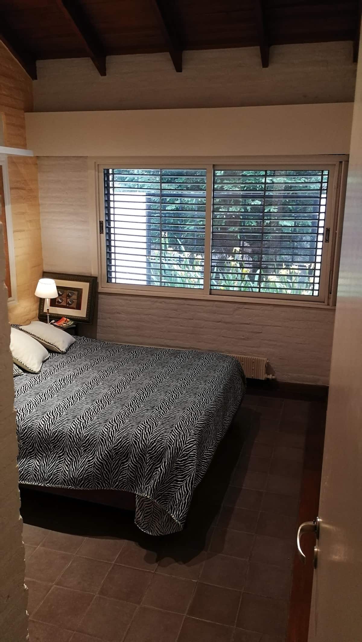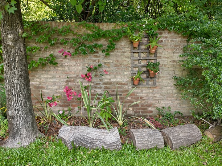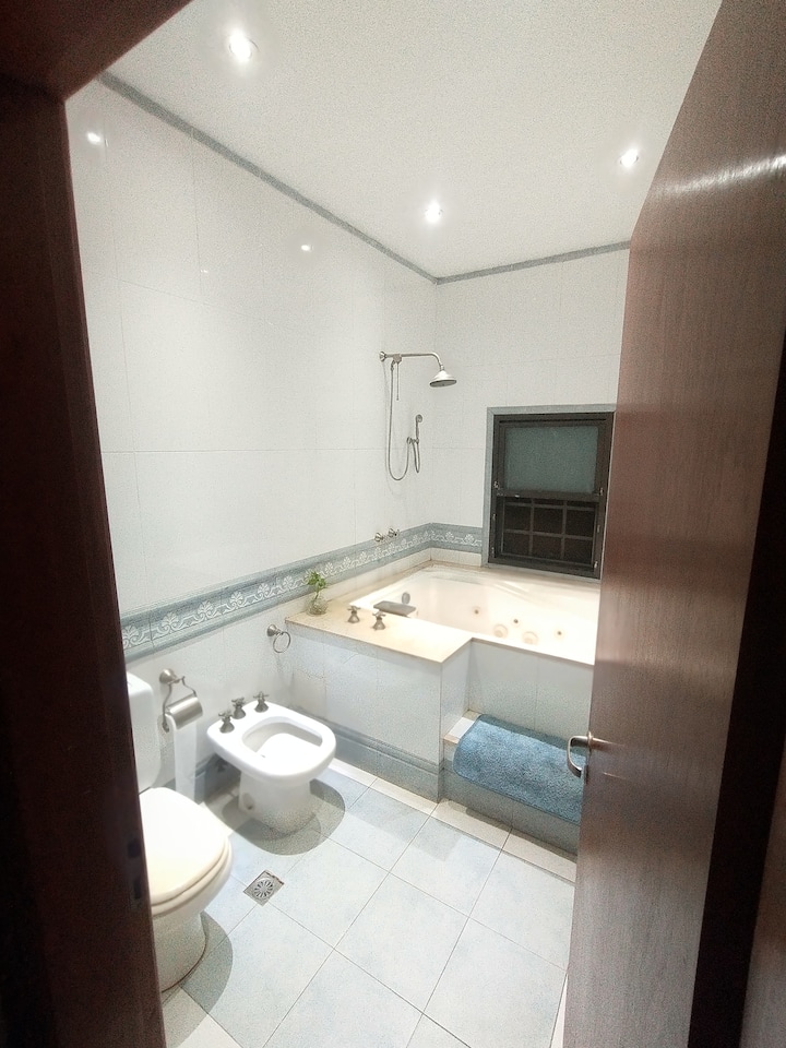 Casa em Beccar com 4 dormitórios e 3 banheiros, com todos os dormitórios no térreo. Dispõe de piscina no jardim cercado, área de churrasco e uma sala de recreação com TV e Chromecast. A cozinha é integrada e tem balcões de mármore, forno elétrico e eletrodomésticos, além de mesa de jantar e 2 bancos. Há 2 espaços de trabalho privativos no 1º andar e mesa de pingue-pongue. O imóvel tem ventiladores de teto nos dormitórios e internet Wi‑Fi com cobertura de 100 Mb.