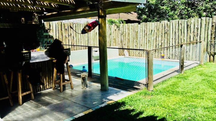Casa em condomínio fechado “Virasoro Village”, na área da Horqueta, em San Isidro. A residência tem 3 ambientes mais unidade de serviço, 4 banheiros e ambientes com marcenaria planejada. Há pátio central, grande galeria e jardim com piscina, além de churrasqueira na galeria com bancada e conexão com a cozinha; a casa dispõe de acesso completo para hóspedes e é alugada integralmente.