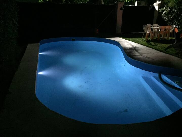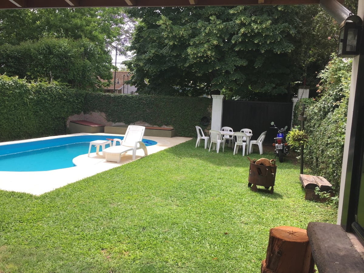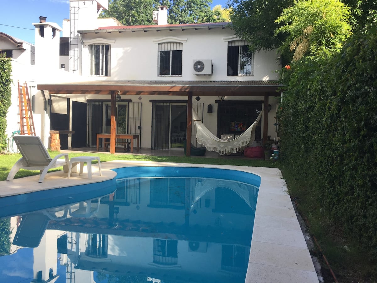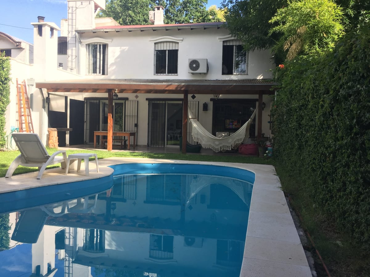 Casa para aluguel em Beccar. Conta com jardim, piscina, área de churrasco e fogueira, além de ar-condicionado e aquecimento. Inclui vaga de estacionamento.
