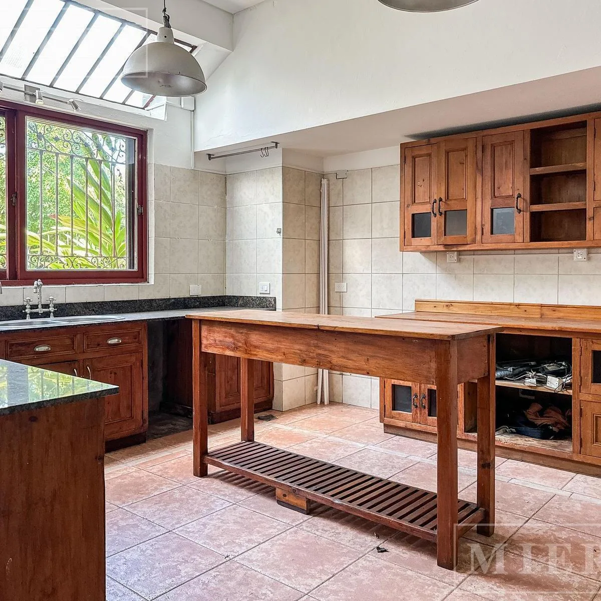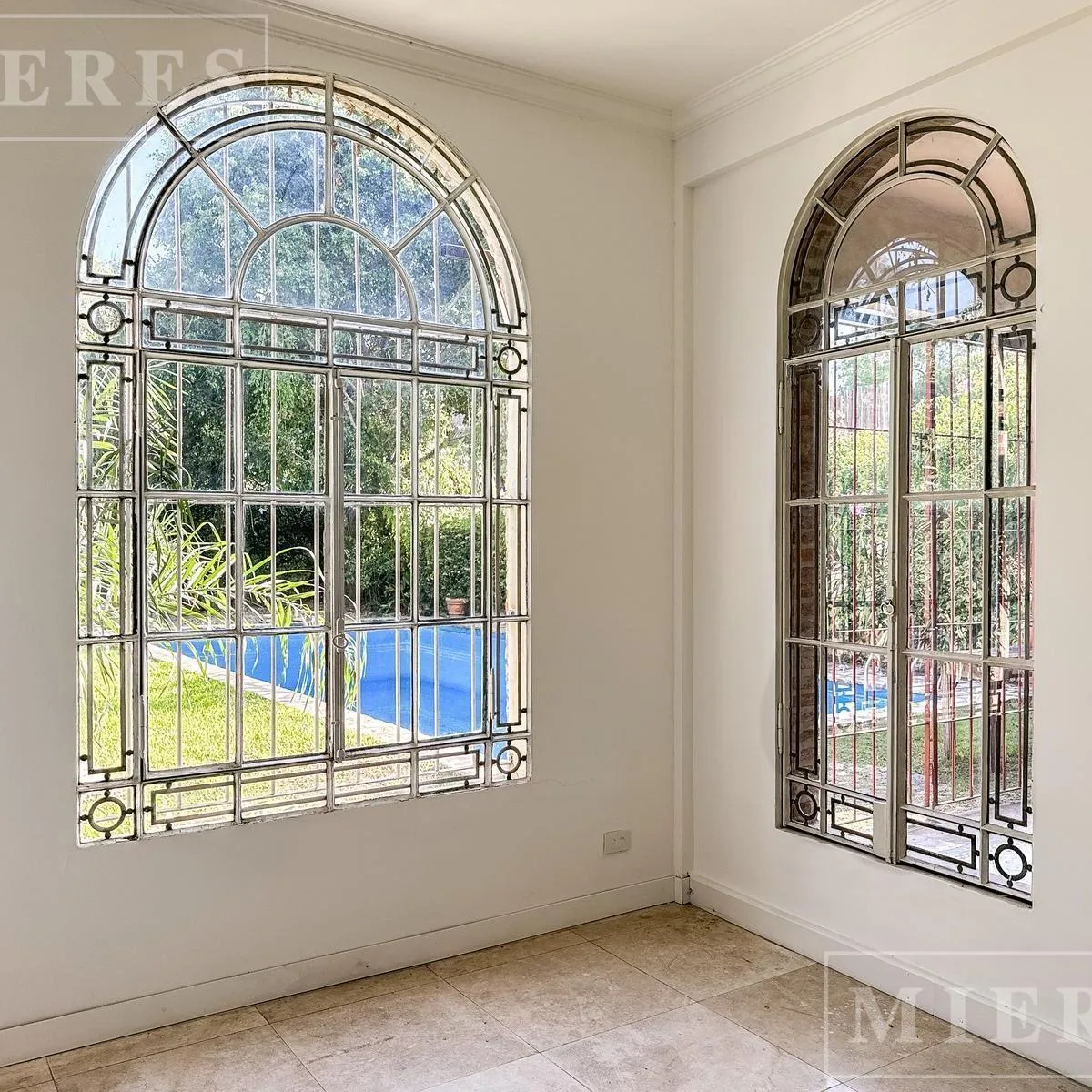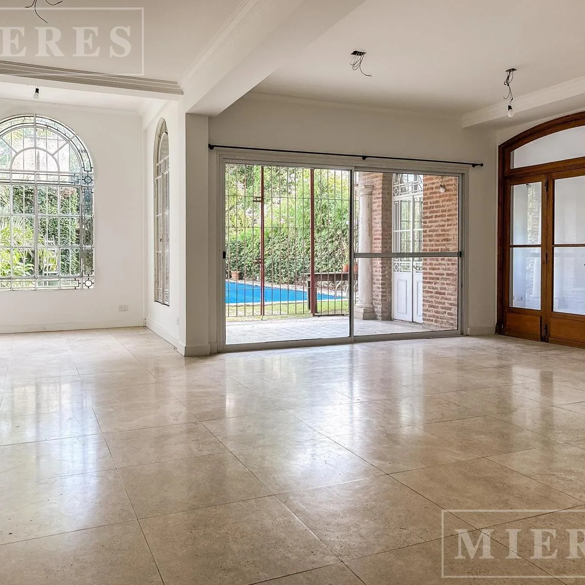 Casa para aluguel em Las Lomas - Horqueta, Beccar, com orientação norte. O imóvel tem 4 dormitórios, incluindo uma suíte principal com closet e varanda voltada para o jardim. Há cozinha totalmente equipada com ilha, sala de máquinas, playroom e dependência de serviço com banheiro. No exterior, o jardim tem piscina e área de churrasco; a entrada é para 1 carro com grade manual, com lavadero independente, banheiro de piscina e depósito ao fundo. Conta com aquecimento central, dois tanques de água
