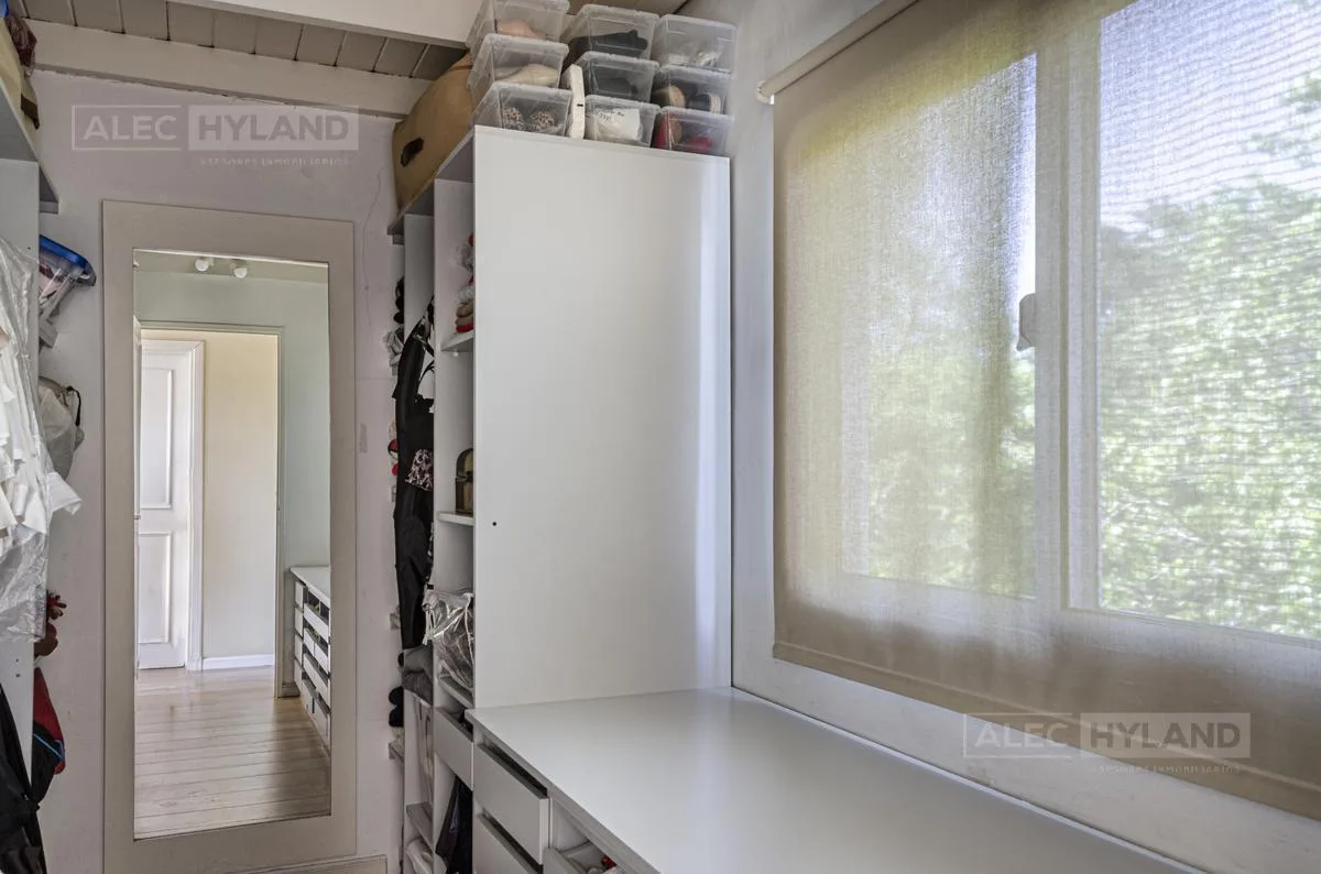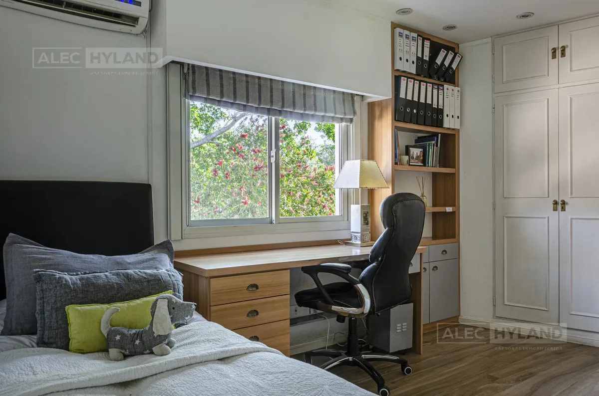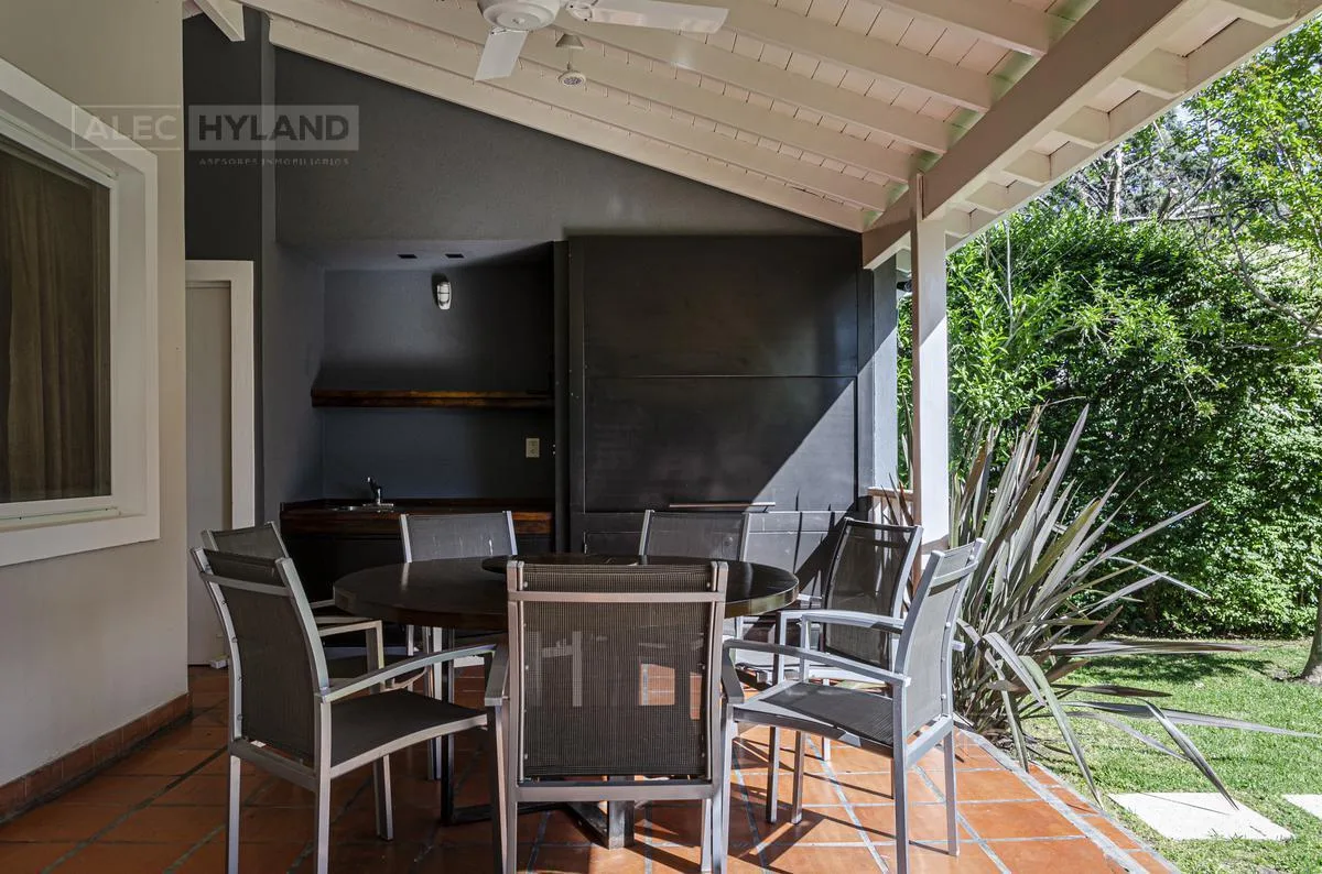 Casa em duas plantas em condomínio fechado La Posta, em Beccar. A planta baixa conta com varanda, sala e sala de jantar com lareira, piso cerâmico, cozinha reformada com fogão/forno Ariston, armários e exaustor, além de sala de estar/jantar de 6,50 x 4 com saída para o jardim. No piso superior ficam a suíte principal com escritório embutido, closet e hidromassagem, além de mais 3 dormitórios e 1 banheiro completo. Há área externa com ampla galeria com churrasqueira, piscina azulejada de 8x4, ban