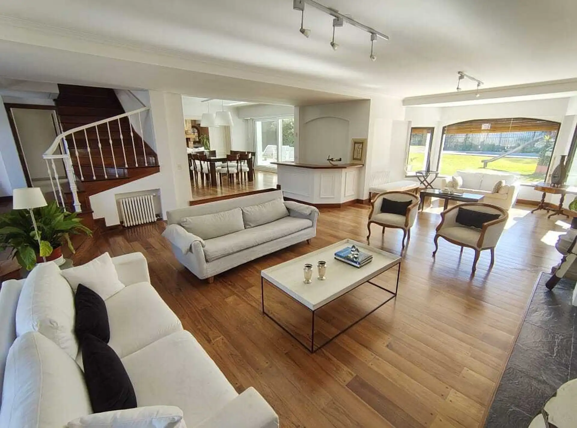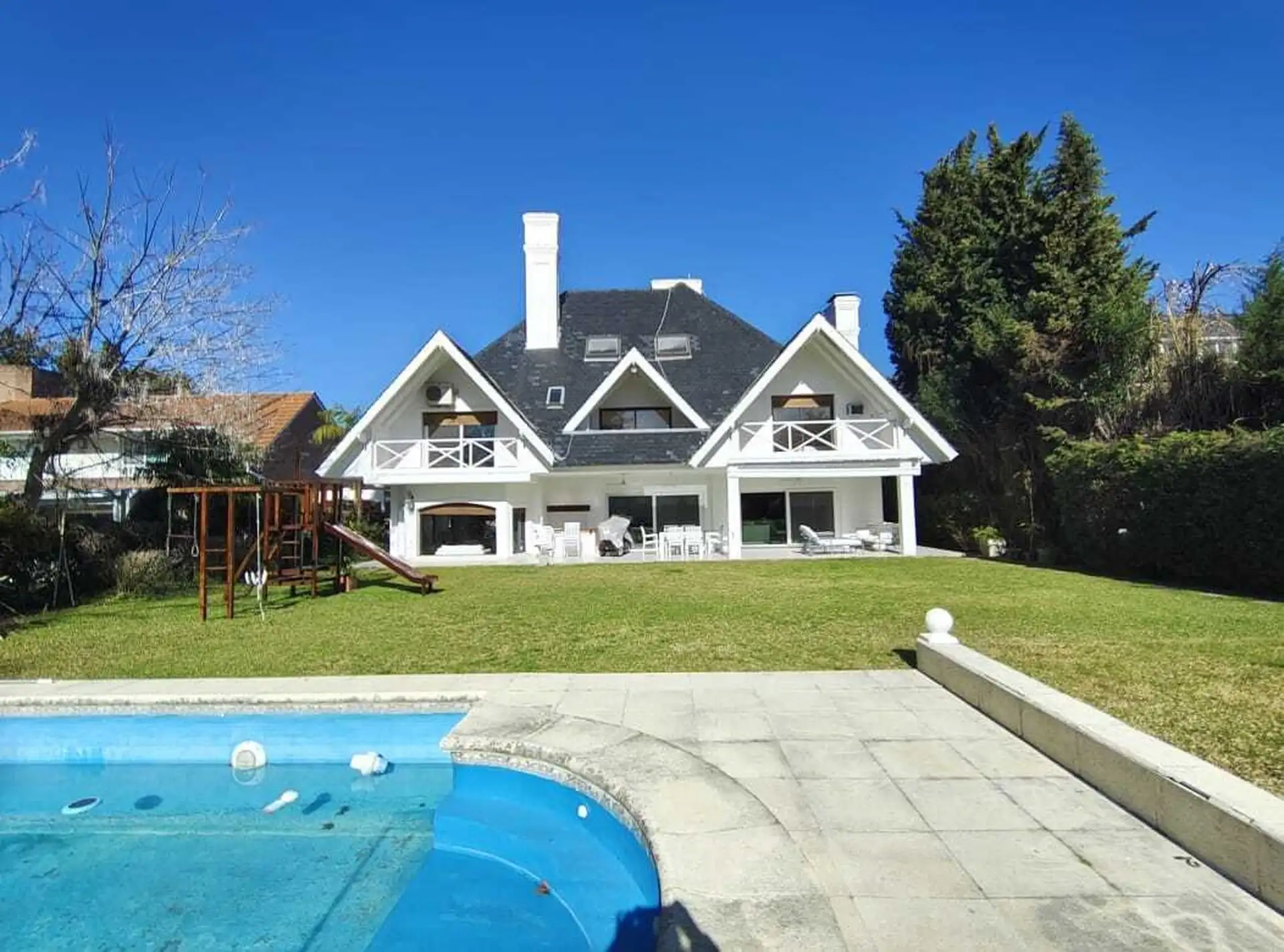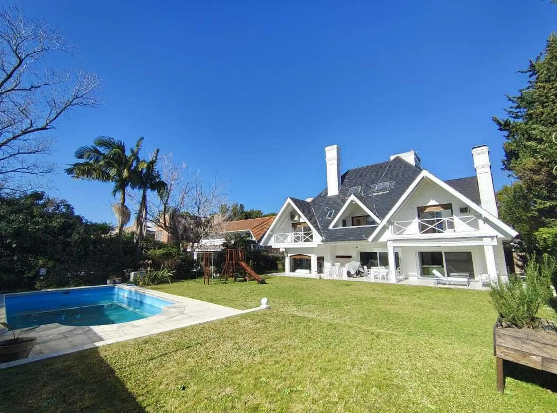 Casa com saída para o náutico, em San Isidro Chico. No térreo: hall, living com lareira e bar, sala de jantar, lavabo, playroom com lareira, pisos de madeira, cozinha bem equipada com copa, despensa e área de lavanderia, além de escada de serviço. No piso superior: suíte principal com lareira, duplo closet, banheiro com hidromassagem e varanda para o jardim, mais 3 dormitórios em suíte com varanda e closet. No 2º andar: playroom amplo com sauna e banheiro, além de dependência com banheiro e entr