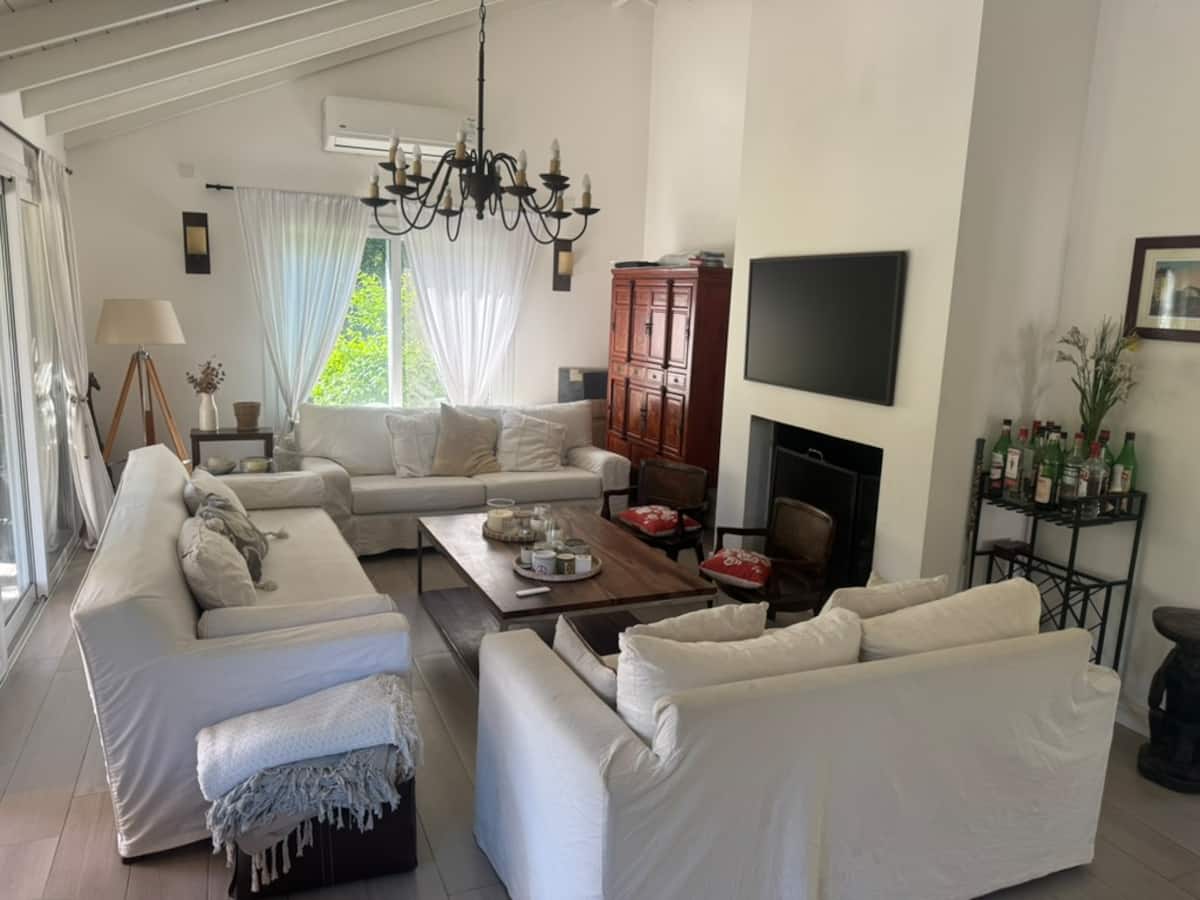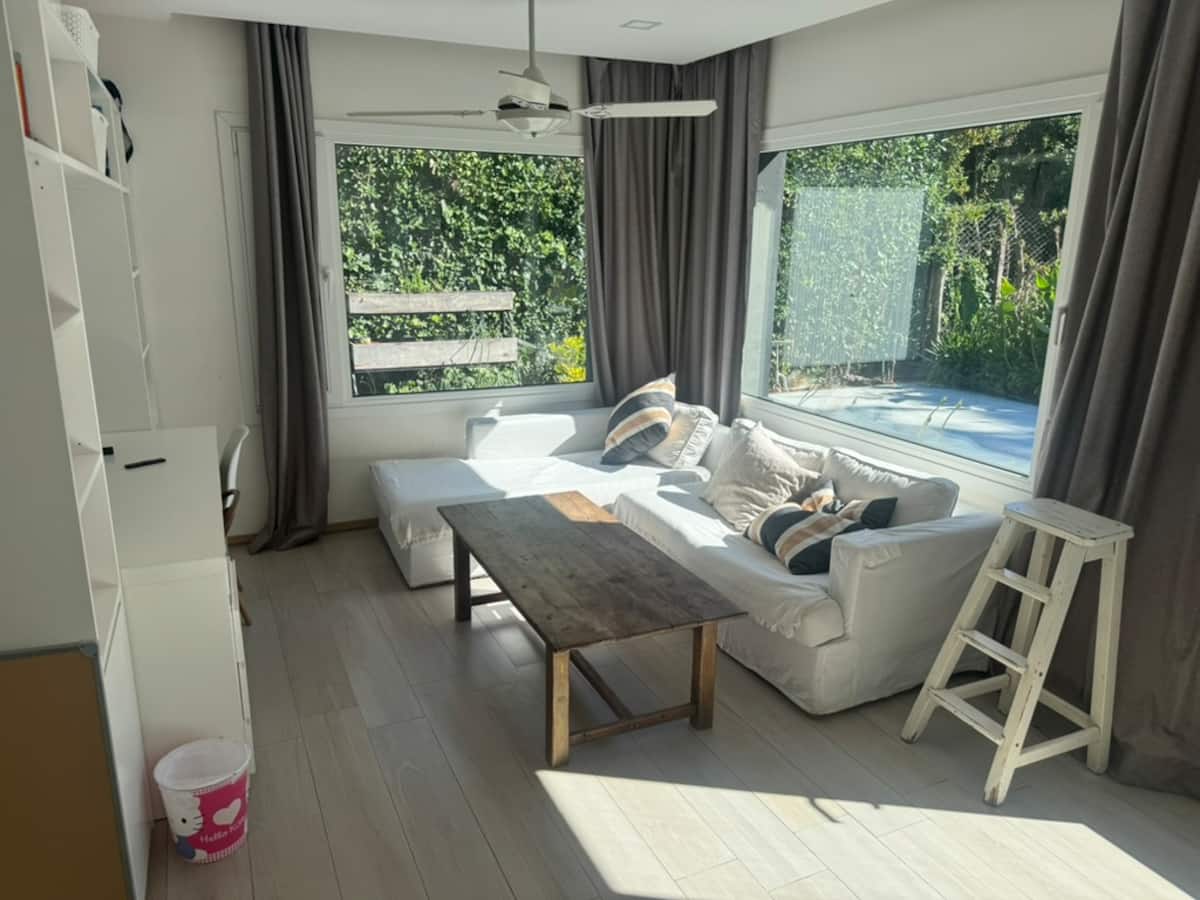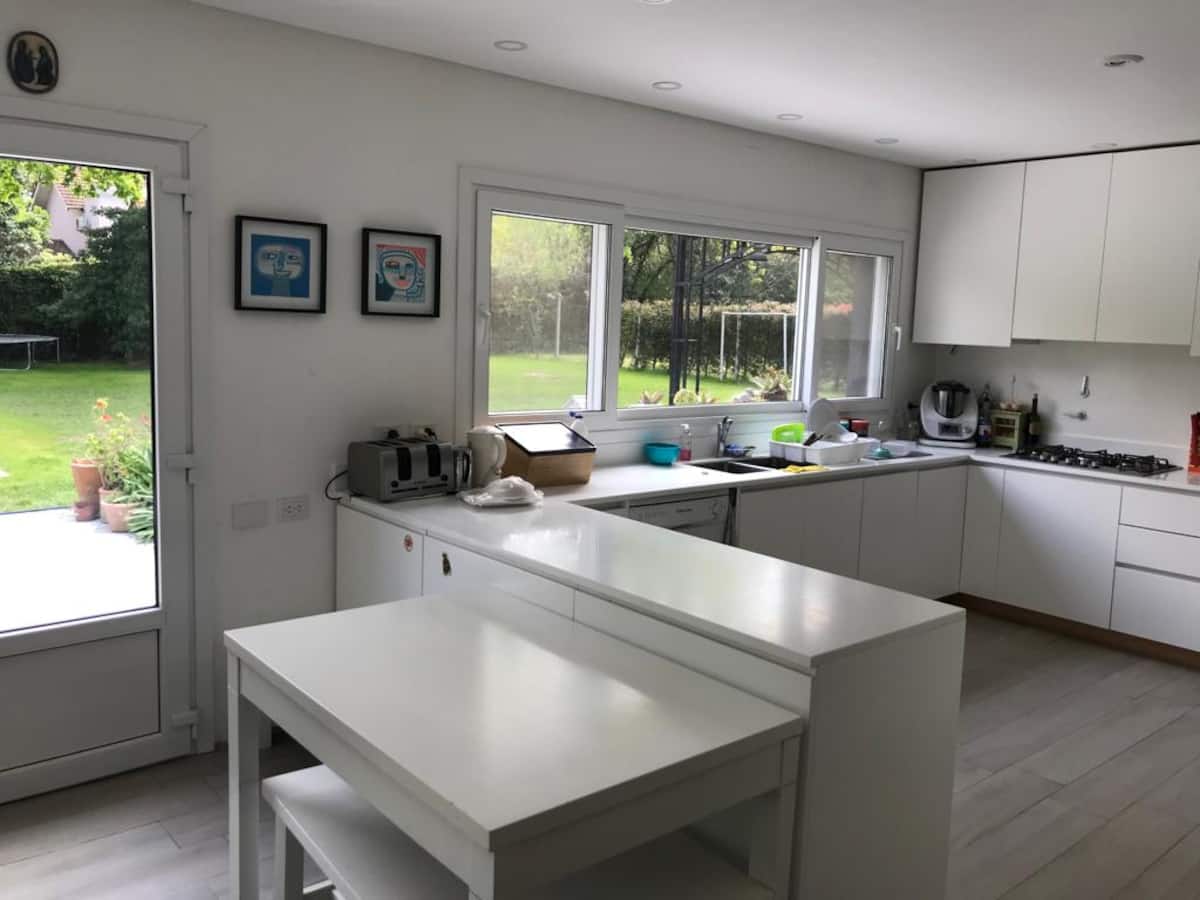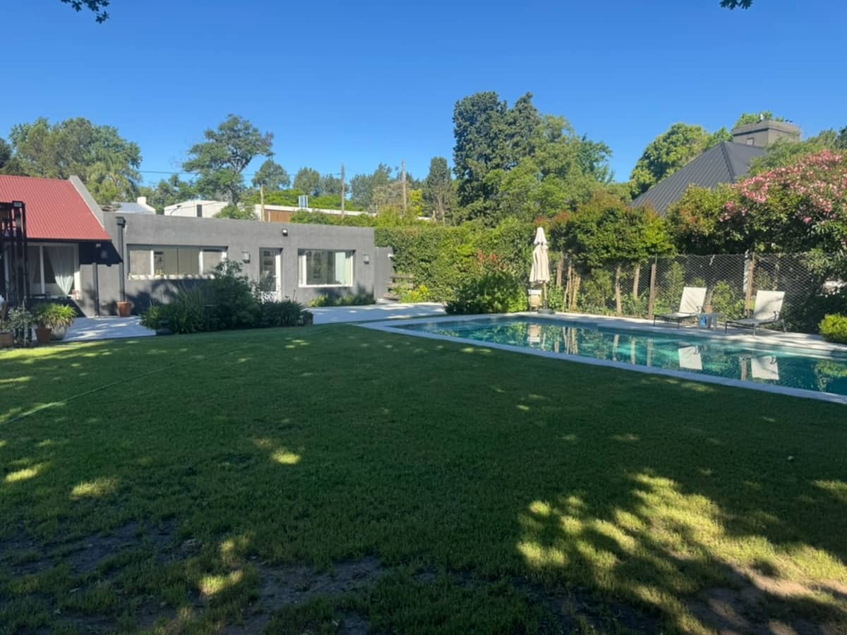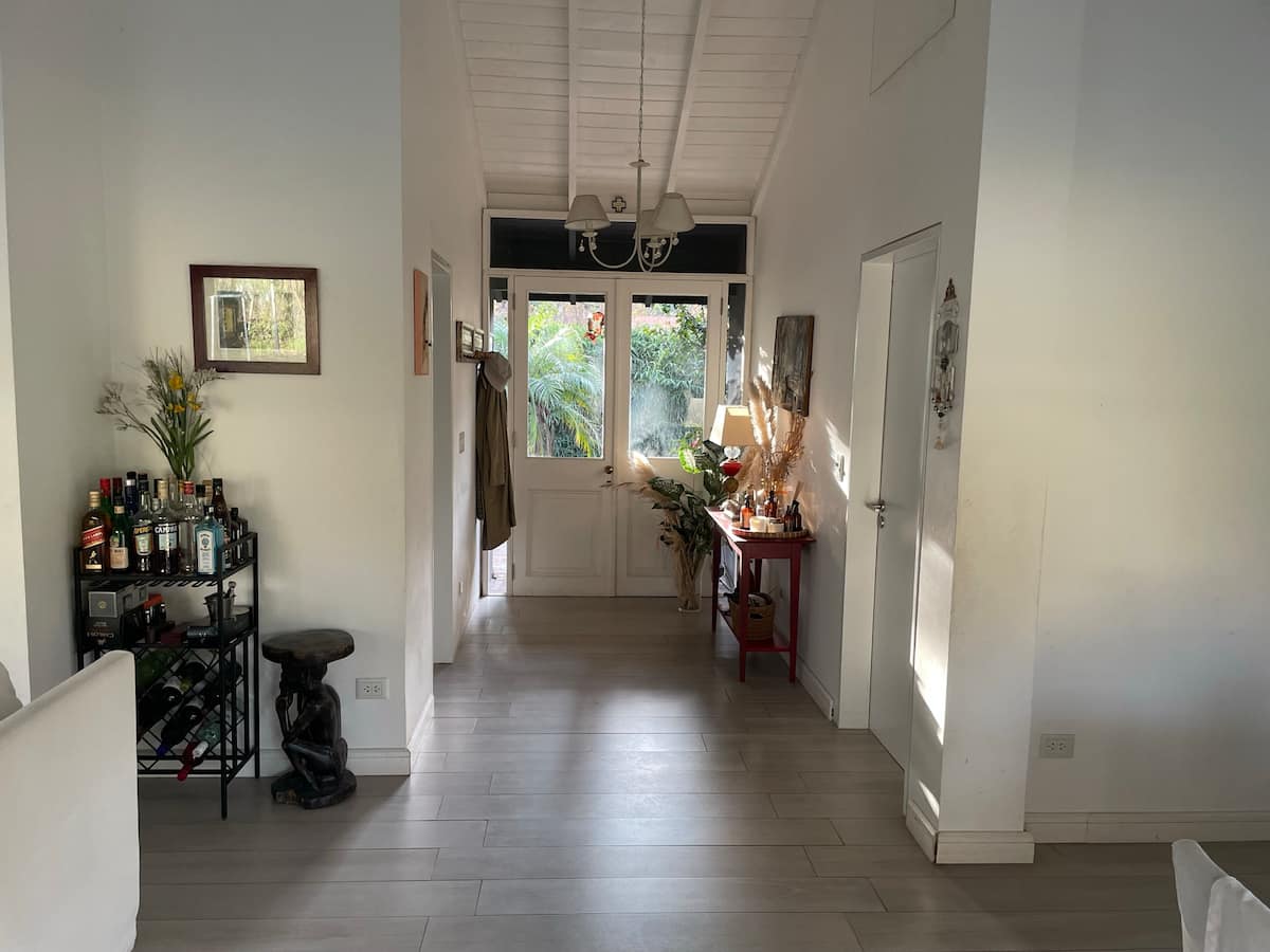 Casa térrea em La Horqueta, San Isidro, em rua residencial sem saída e com pouca circulação. Possui terreno de 1000 m², jardim amplo e piscina. São 4 dormitórios, sendo 1 suíte e os demais com 2 banheiros compartilhados, além de 1 dormitório com banheiro. Inclui sala de estar, sala de jantar, cozinha e sala de lazer, com galeria coberta ampla com área de estar, mesa e churrasqueira; todos os ambientes são aquecidos.