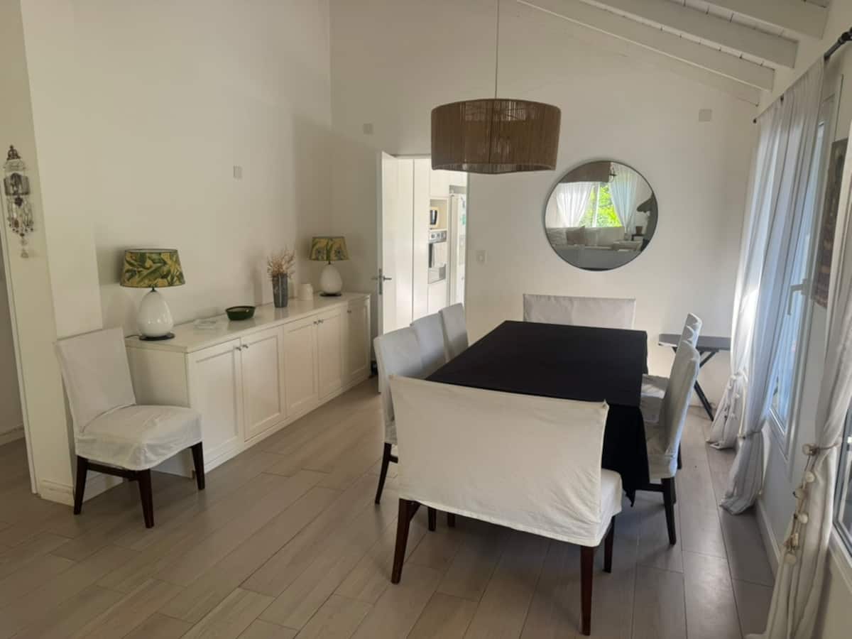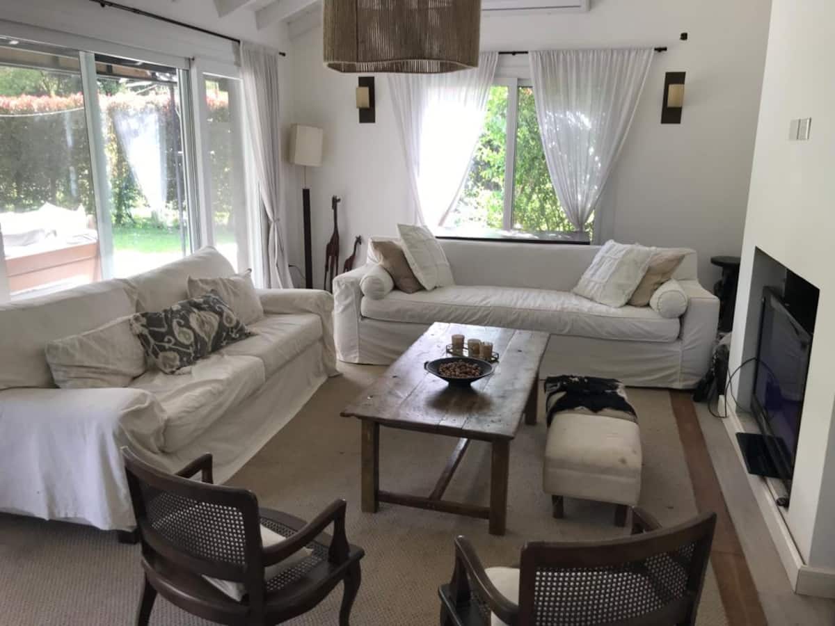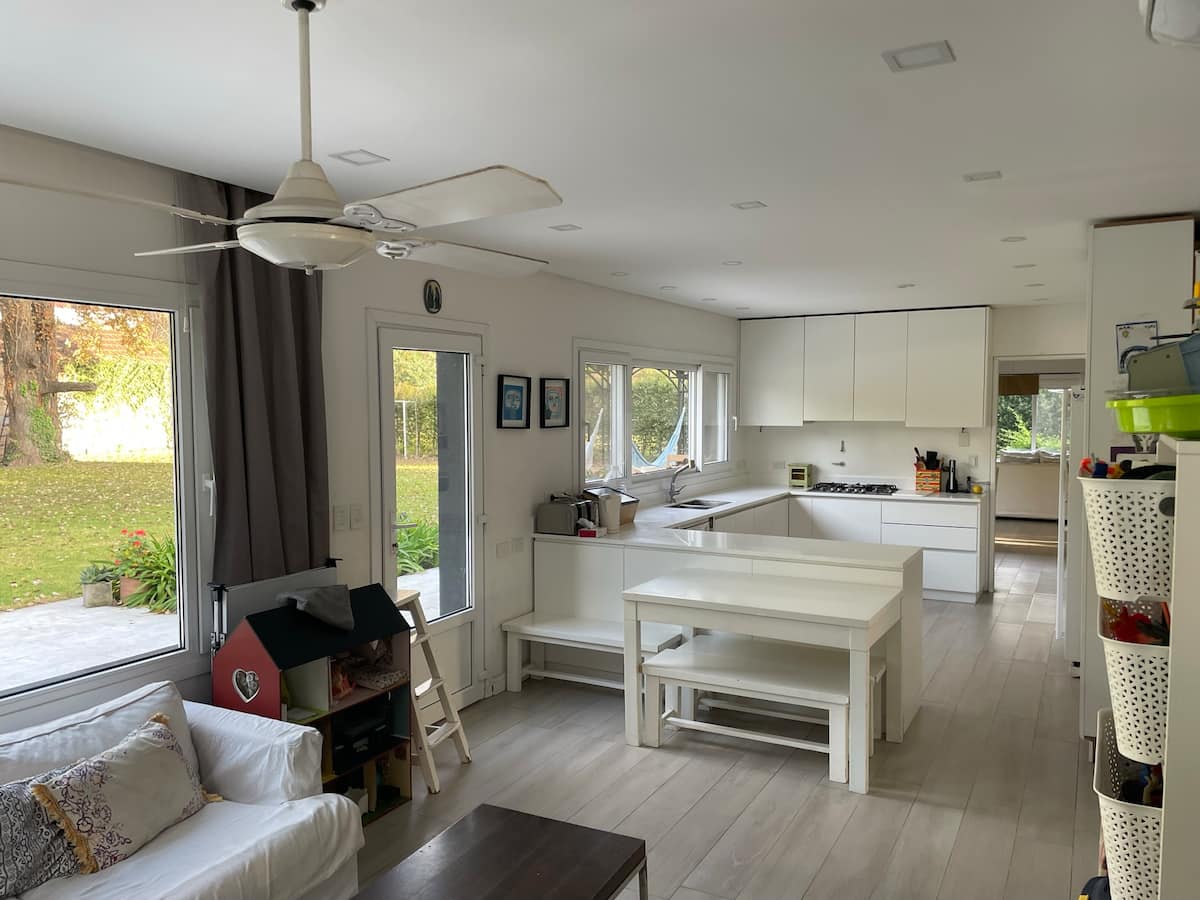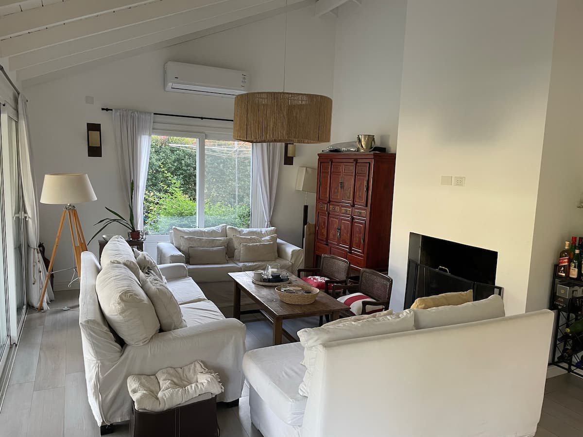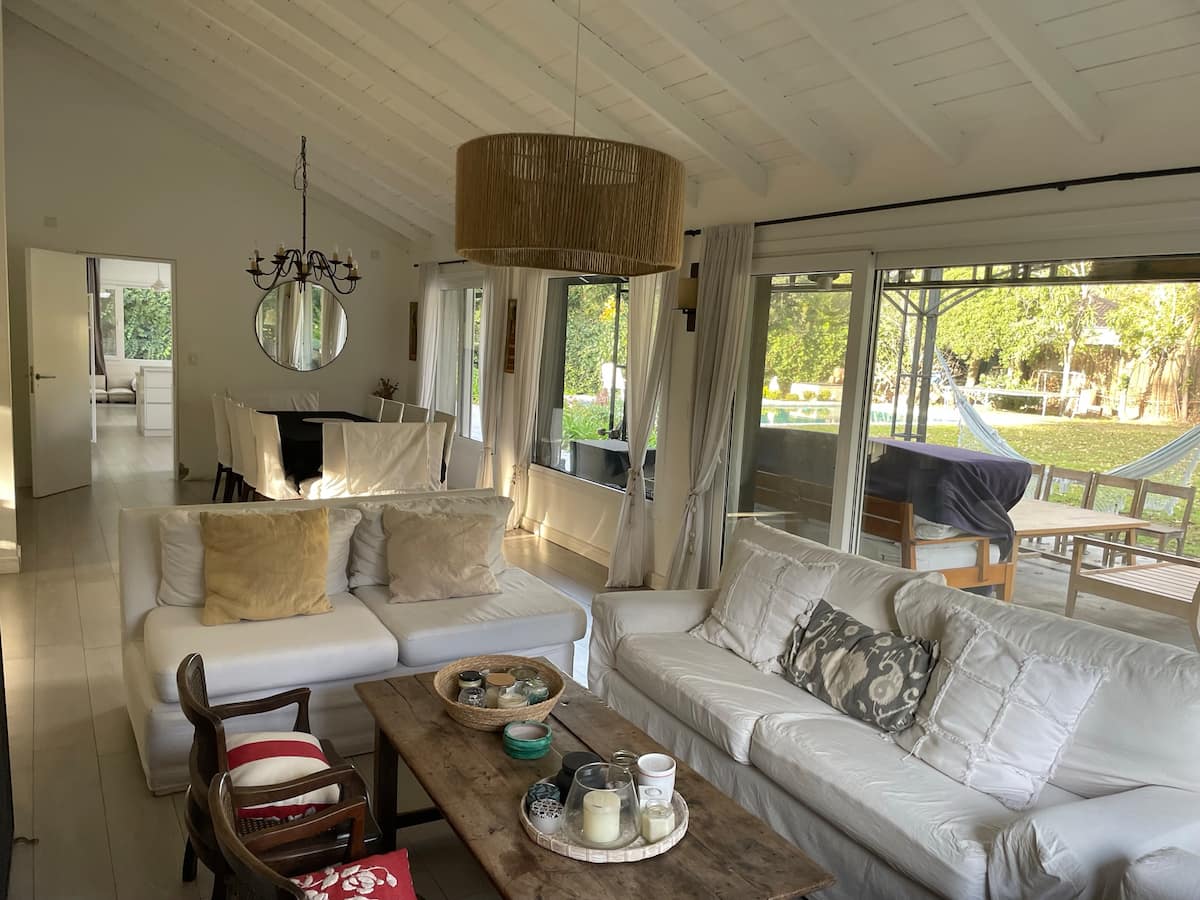 Casa térrea em La Horqueta, San Isidro, em rua residencial sem saída e com pouca circulação. Possui terreno de 1000 m², jardim amplo e piscina. São 4 dormitórios, sendo 1 suíte e os demais com 2 banheiros compartilhados, além de 1 dormitório com banheiro. Inclui sala de estar, sala de jantar, cozinha e sala de lazer, com galeria coberta ampla com área de estar, mesa e churrasqueira; todos os ambientes são aquecidos.