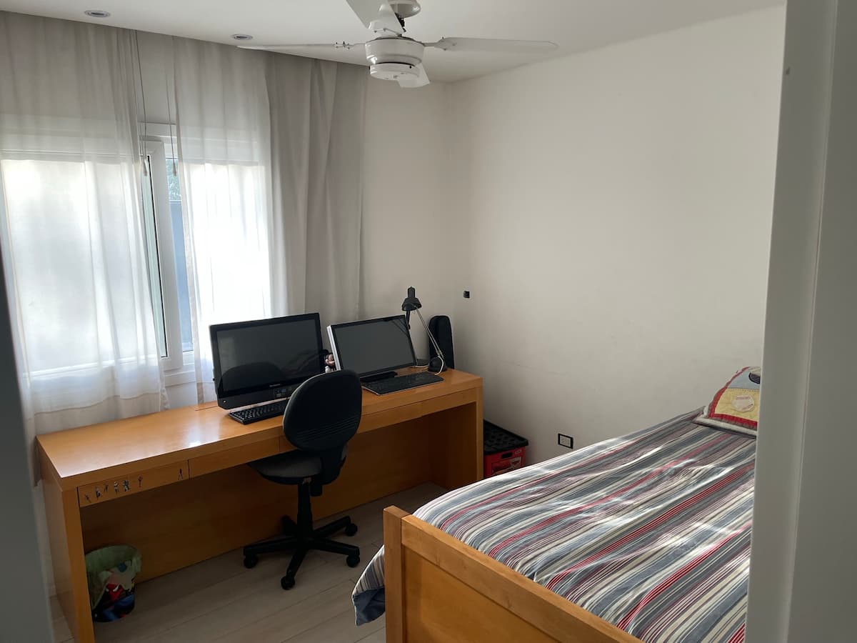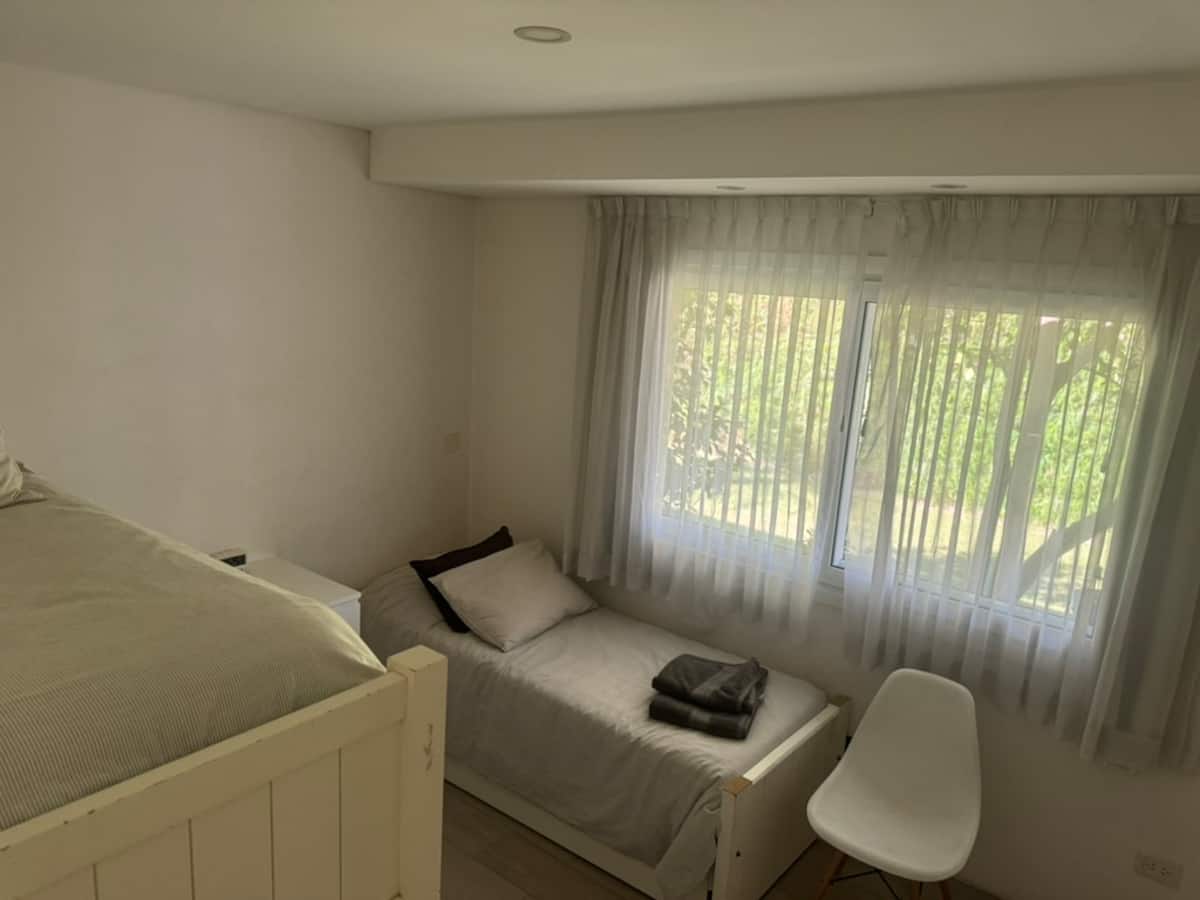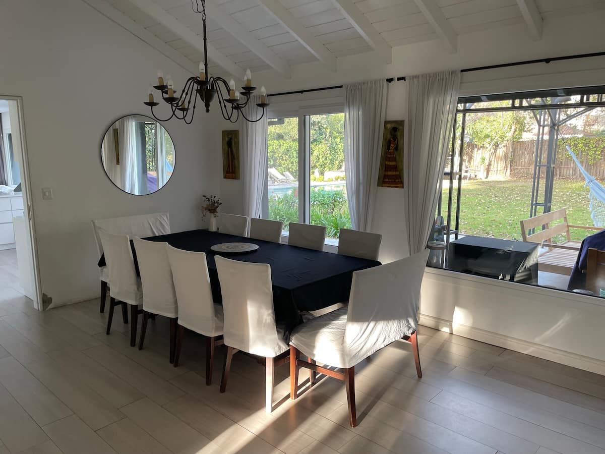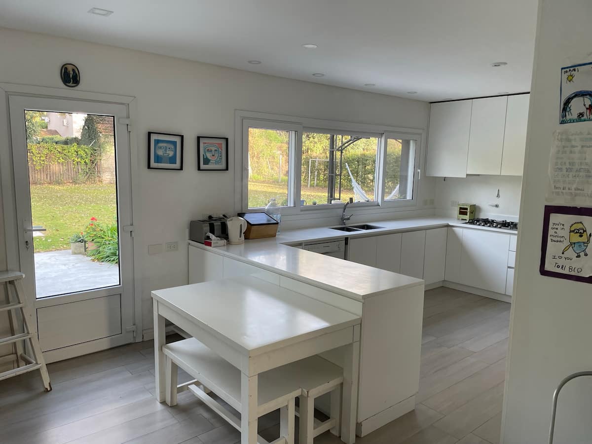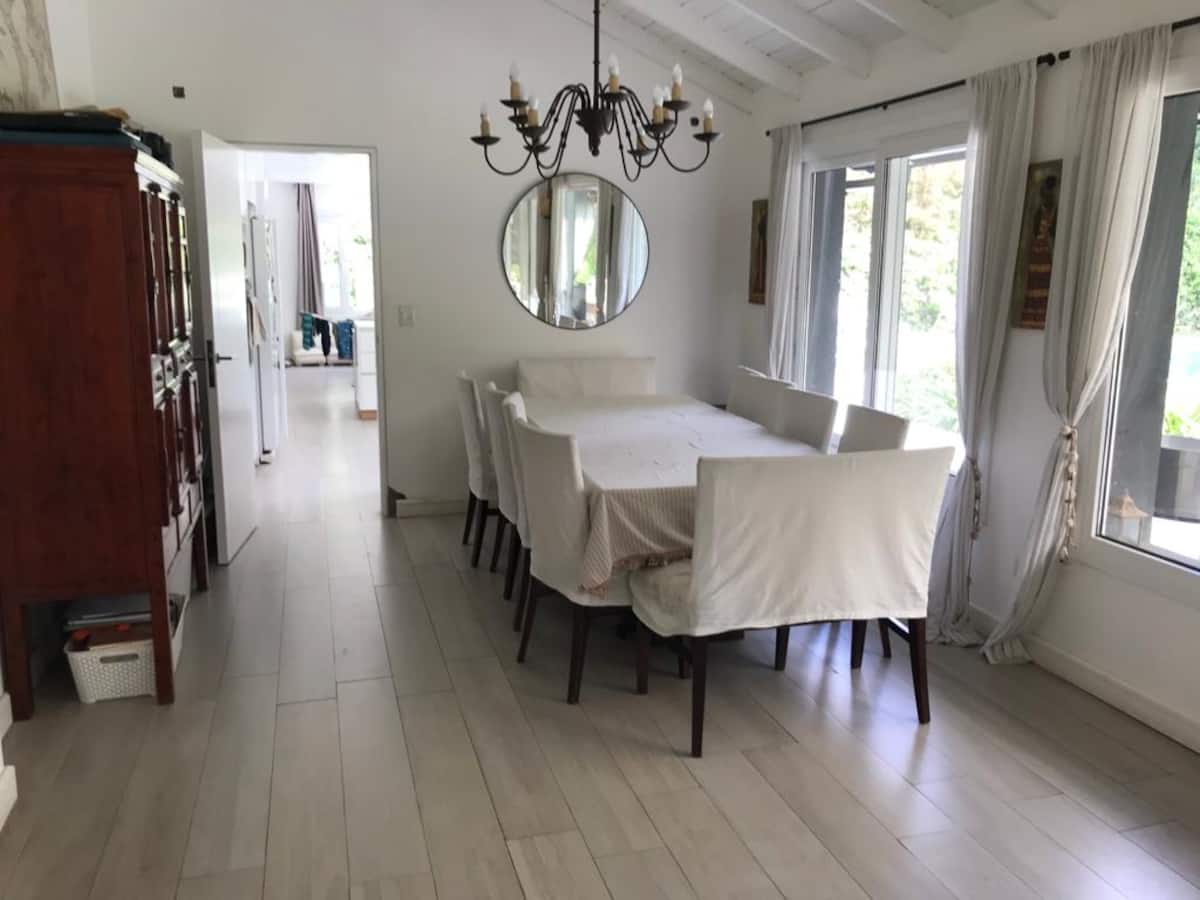 Casa térrea em La Horqueta, San Isidro, em rua residencial sem saída e com pouca circulação. Possui terreno de 1000 m², jardim amplo e piscina. São 4 dormitórios, sendo 1 suíte e os demais com 2 banheiros compartilhados, além de 1 dormitório com banheiro. Inclui sala de estar, sala de jantar, cozinha e sala de lazer, com galeria coberta ampla com área de estar, mesa e churrasqueira; todos os ambientes são aquecidos.