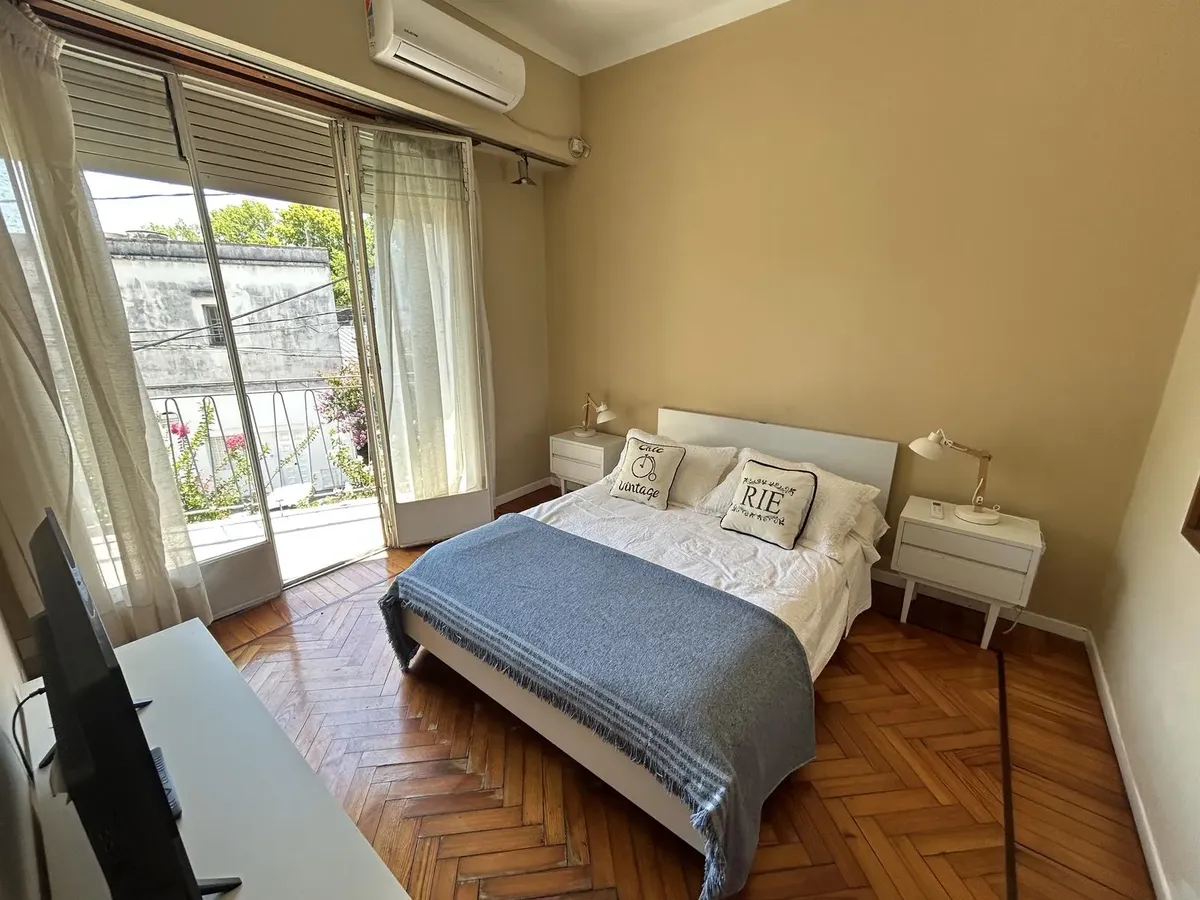 Unidade em andar superior (1º andar por escada) em Beccar, com 4 dormitórios e 200 m² cobertos. A planta inclui sala de estar e jantar com grandes janelas voltadas para a Av. Centenario, cozinha com área de refeições diárias e um toilette com chuveiro. Há banheiro completo para os 4 dormitórios, além de galeria coberta e terraço de 100 m² com piscina e área de churrasco. Locação temporária, com estadia mínima de 1 mês.