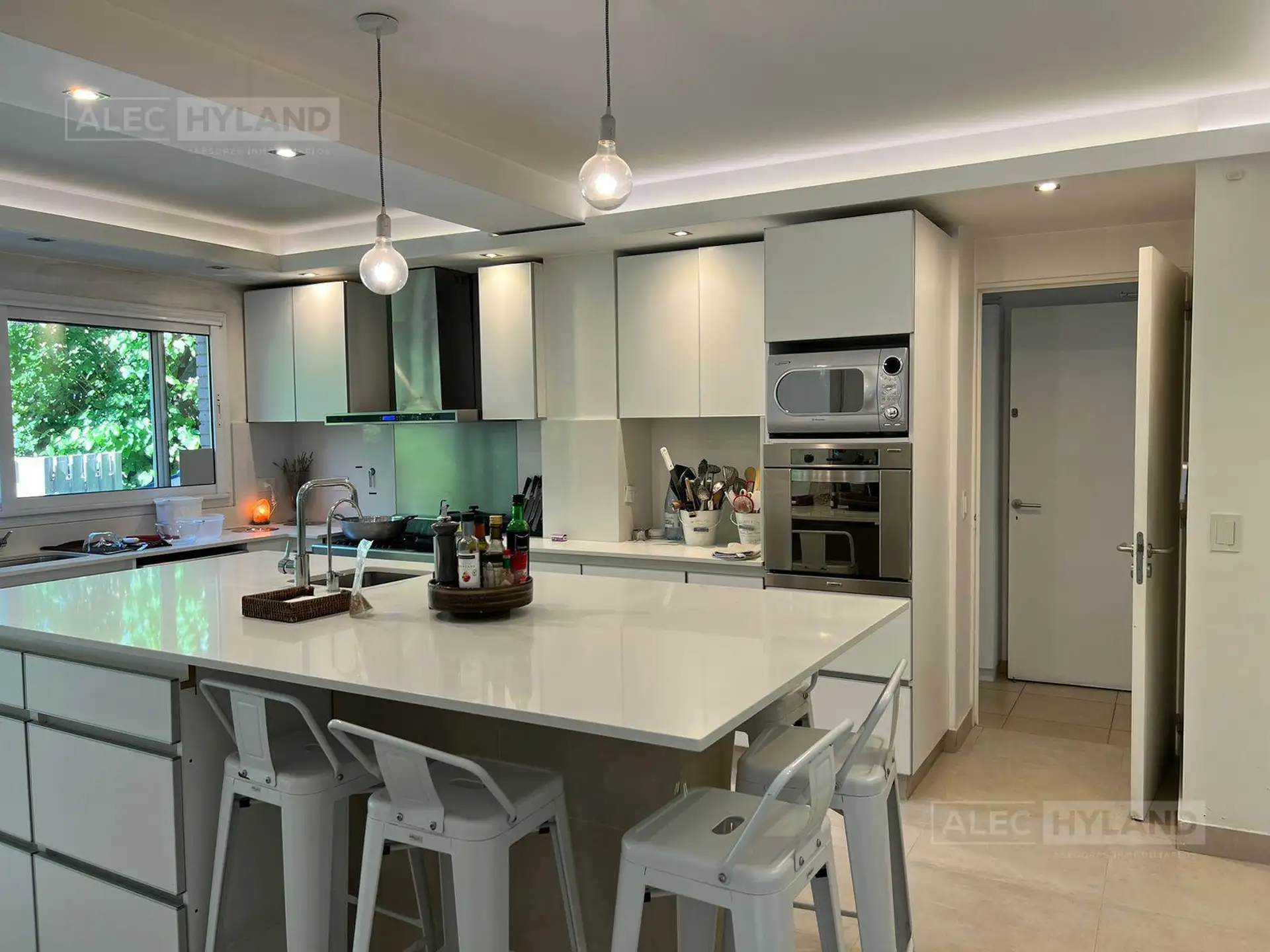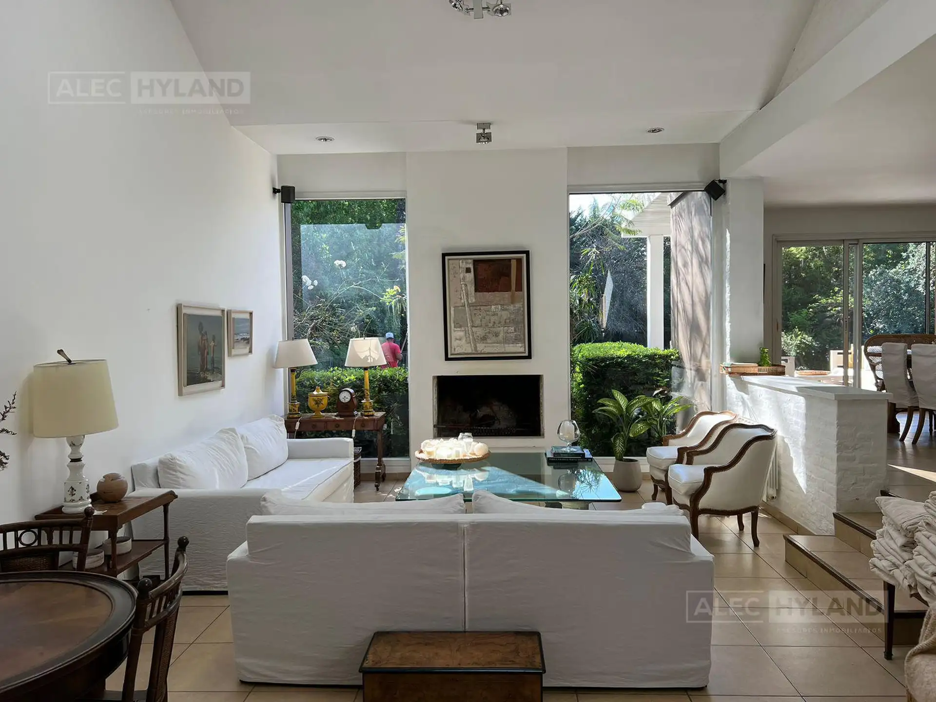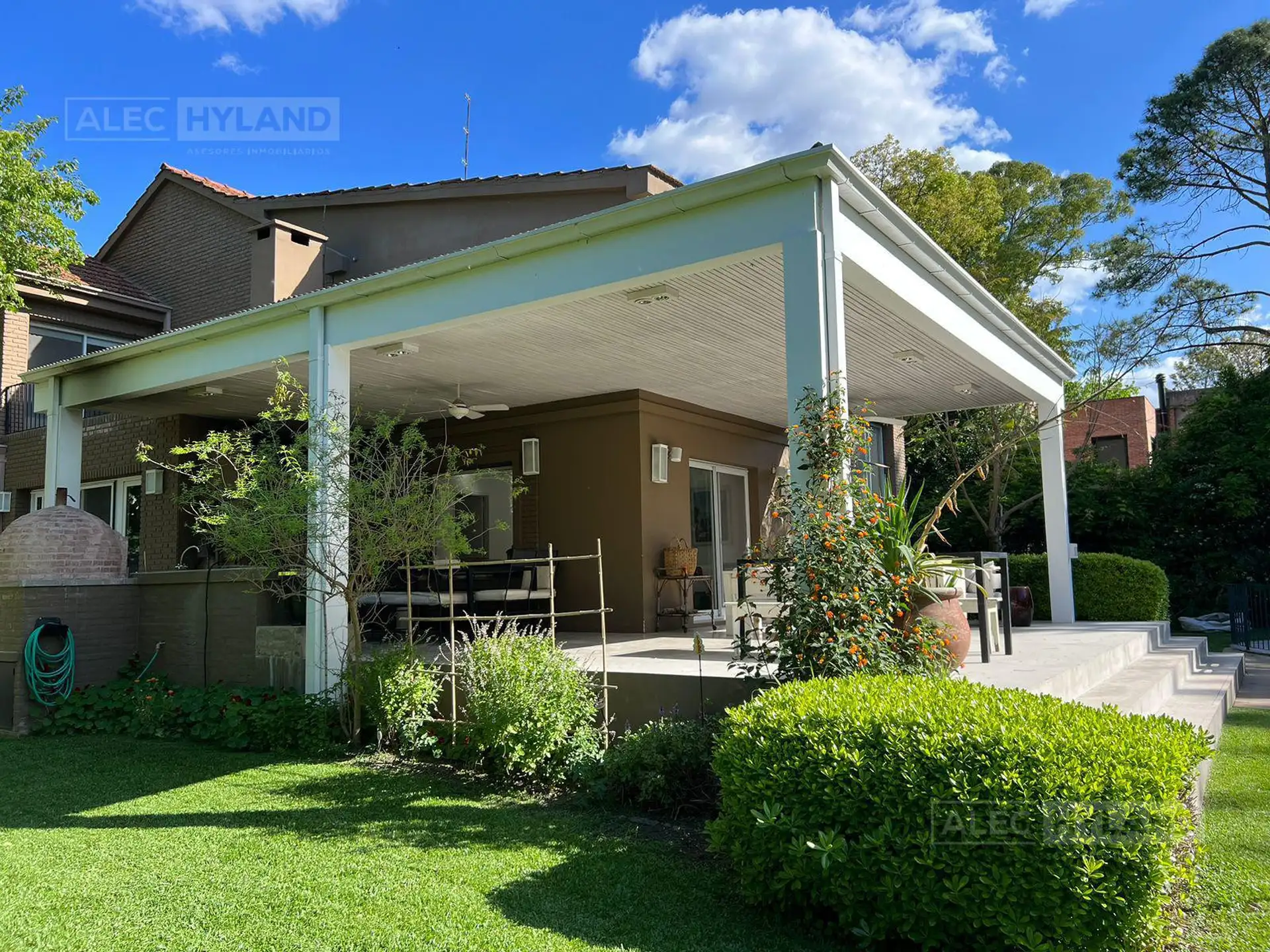 Casa para aluguel temporário de verão em Beccar. Possui hall, living e sala de jantar em desnível com saída para o jardim, 1 suíte no térreo e 3 suítes no andar superior, com suíte principal e closet. No andar superior há um family room de 6 x 8 com saída para o jardim. Inclui ambientes amplos com armários, galeria com área de churrasco, forno de barro, forno kamado e área de assador em área integrada, além de riego por aspersão e filtro de piscina automatizados, paisagismo e um miolo de quadra,